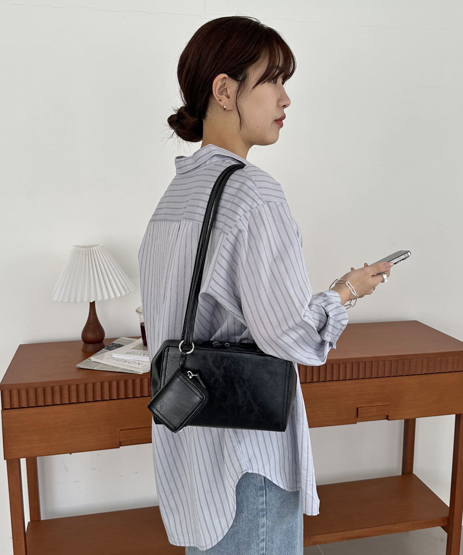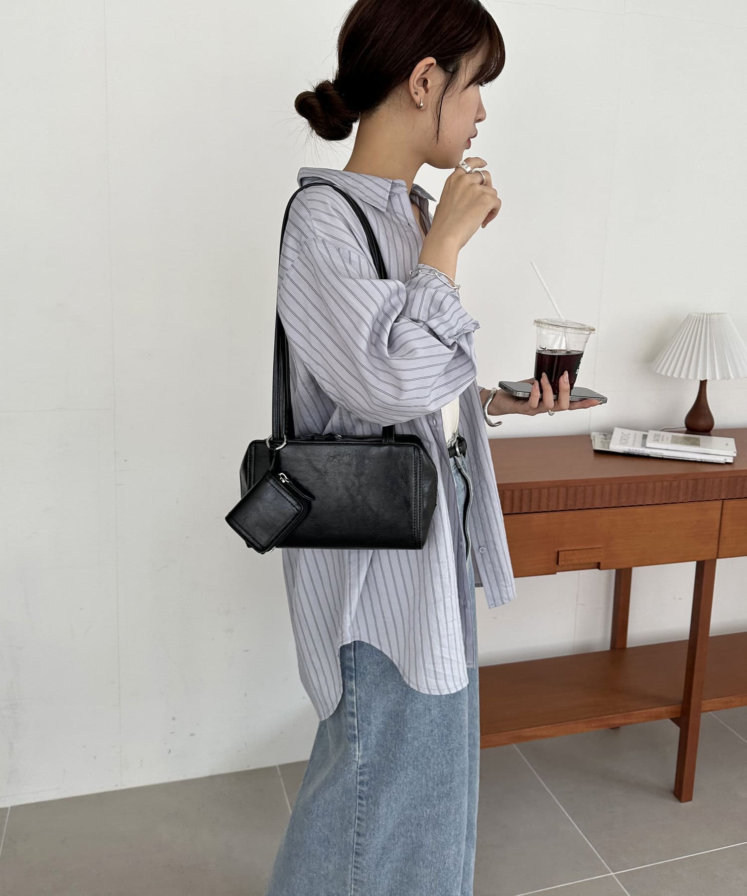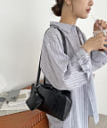 トレンド感のある横長シルエットで、600mlペットボトルや長財布がちょうど入る使い勝手のいいサイズ感のショルダーバッグ。シンプルなデザインなので、普段使いしやすく、服の系統も問わずお使いいただけます。同素材のミニポーチがセットになっており、アクセサリー感覚で使えるだけでなく、エアポッズなどのワイヤレスイヤホンや、小銭などの小物を収納できます◎カラーはアイボリー、ブラック、ブラウンのベーシックカラーと、今季トレンドのイエローを加えた4色展開です♪