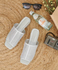 大人な透け感でシーズンムード高まるチュールサンダル。