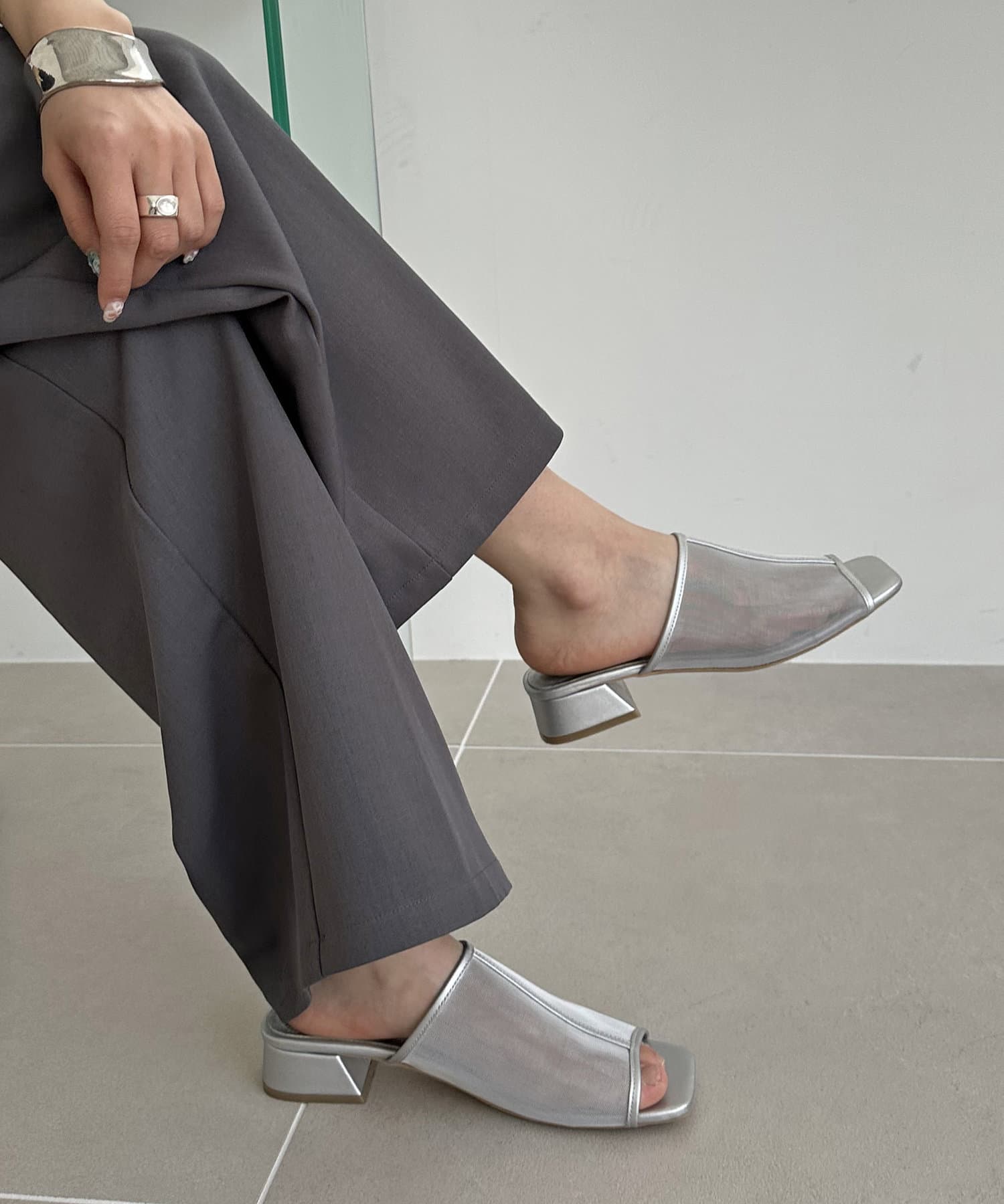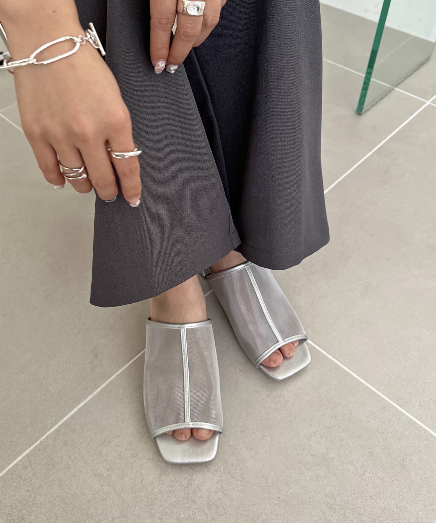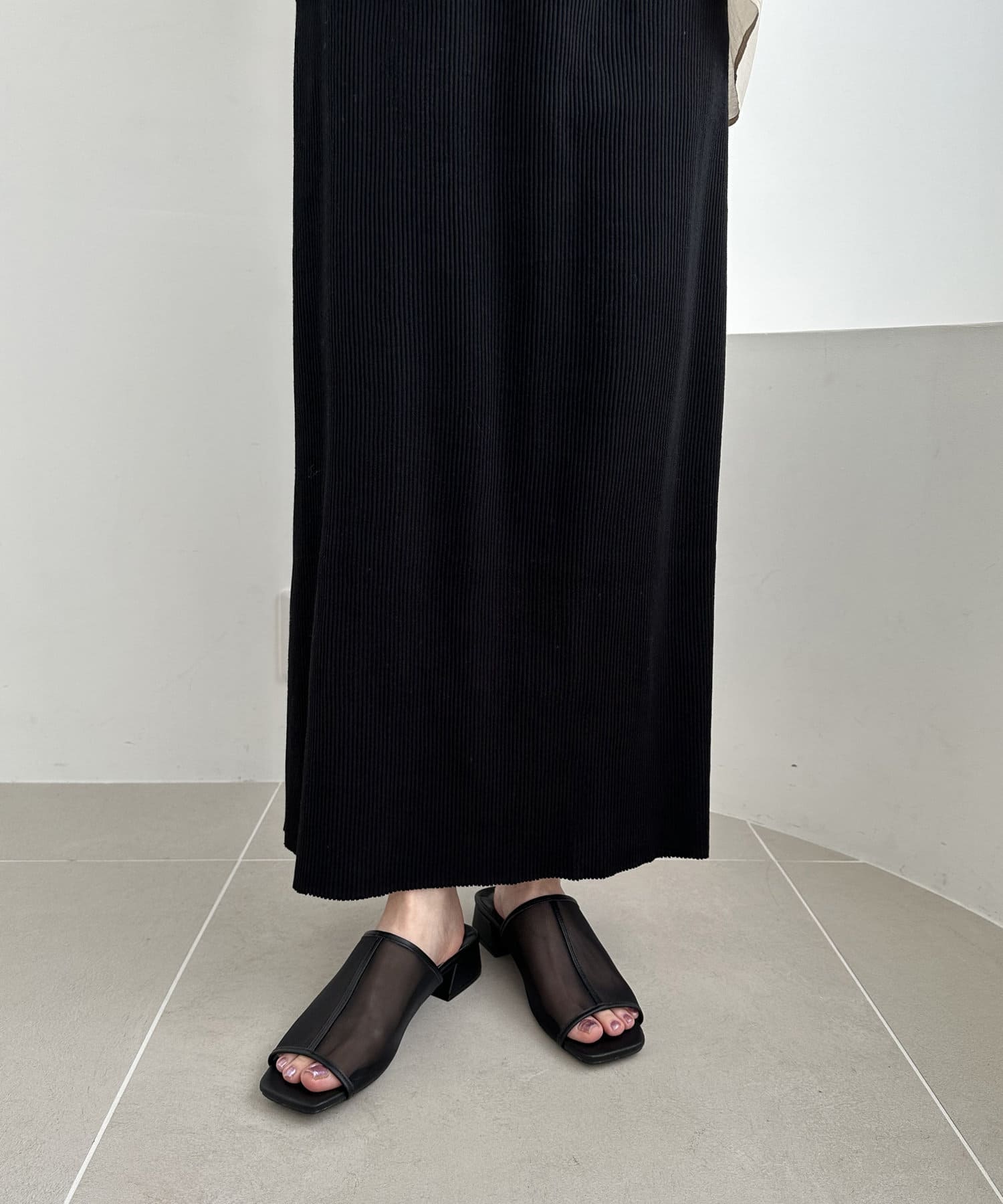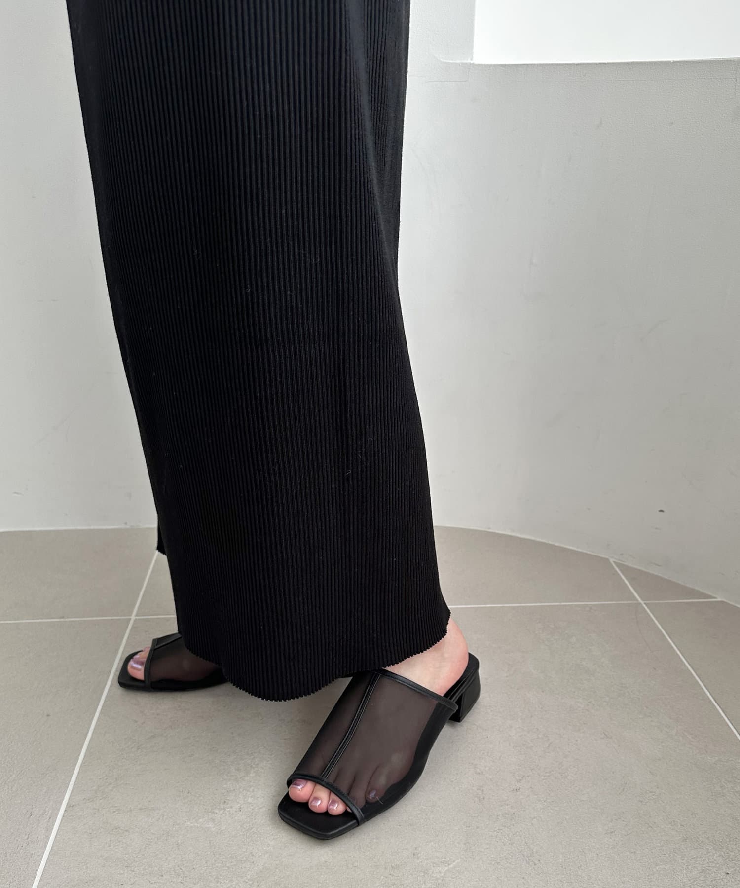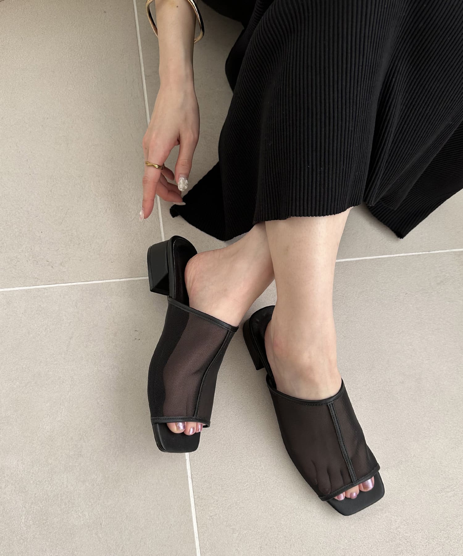 夏コーデの定番 “シアーアイテム”を足元から‼透け過ぎないチュール素材で、程よい抜け感と素肌感を演出してくれます♪ヒールは3㎝と高すぎない高さの台形ヒールで安定感があり、長時間履いても疲れにくいです。また、程よくスタイルアップも叶います◎サッと気軽に足入れでき、デイリー使いにピッタリなアイテムです。チュール素材ですが、きれいめスタイルだけでなく、デニムなどのカジュアルコーデとも相性抜群です◎