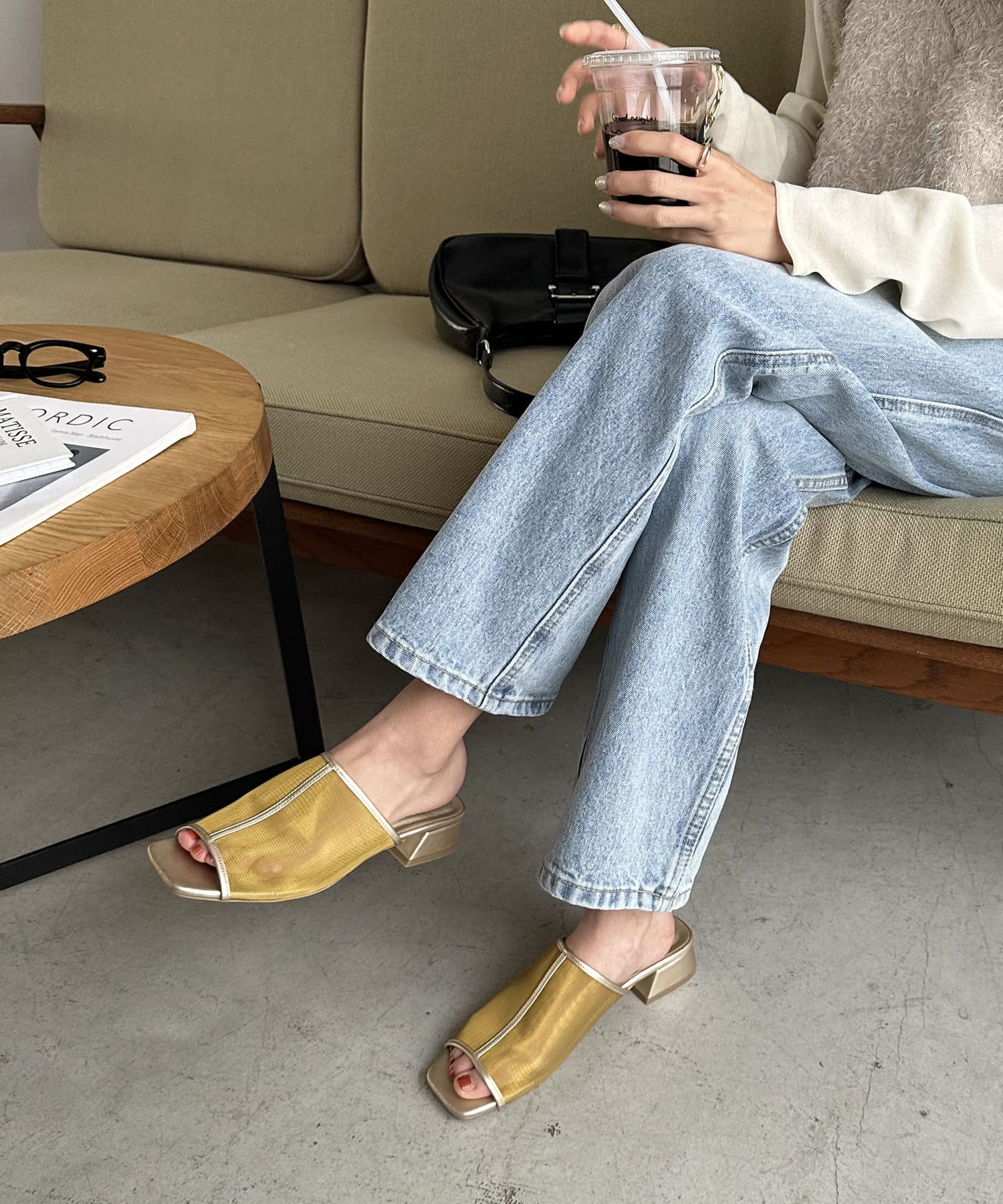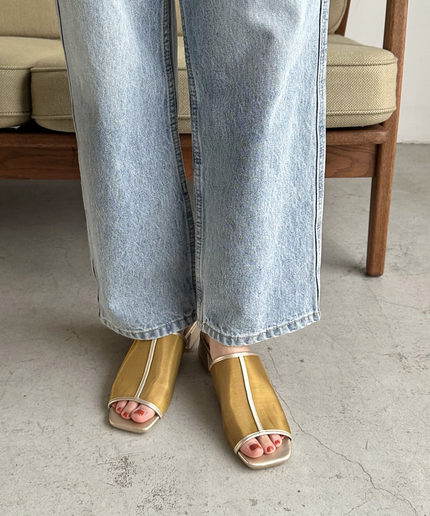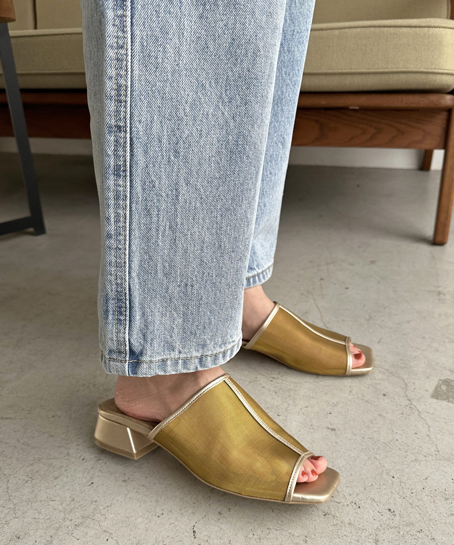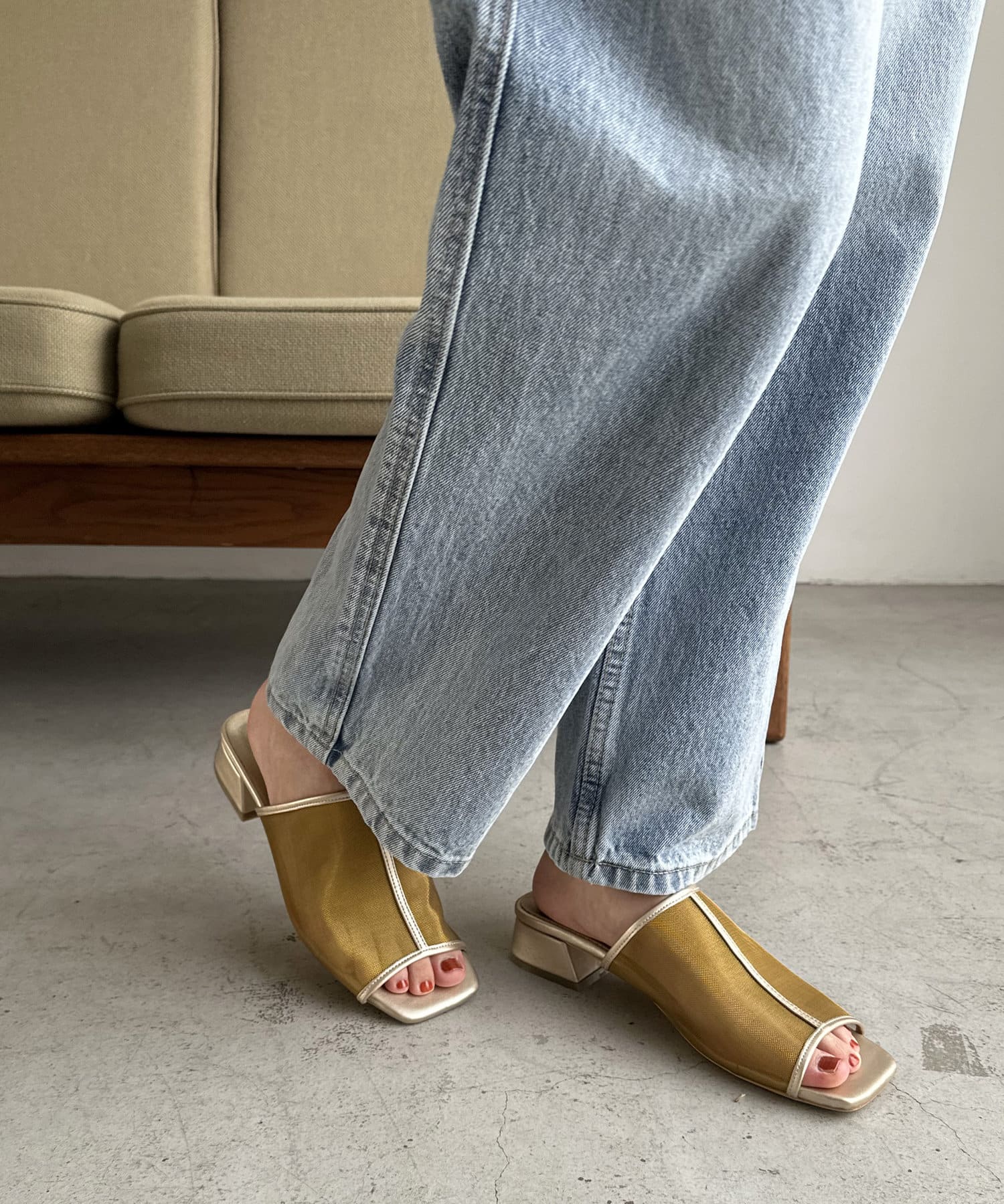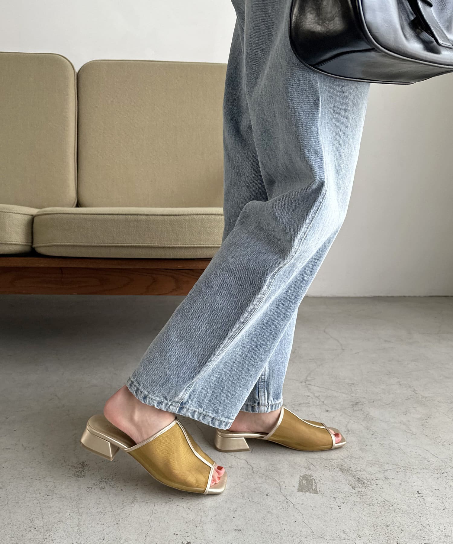 夏コーデの定番 “シアーアイテム”を足元から‼透け過ぎないチュール素材で、程よい抜け感と素肌感を演出してくれます♪ヒールは3㎝と高すぎない高さの台形ヒールで安定感があり、長時間履いても疲れにくいです。また、程よくスタイルアップも叶います◎サッと気軽に足入れでき、デイリー使いにピッタリなアイテムです。チュール素材ですが、きれいめスタイルだけでなく、デニムなどのカジュアルコーデとも相性抜群です◎