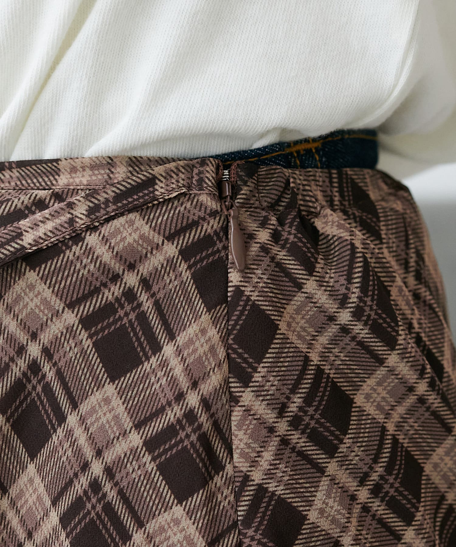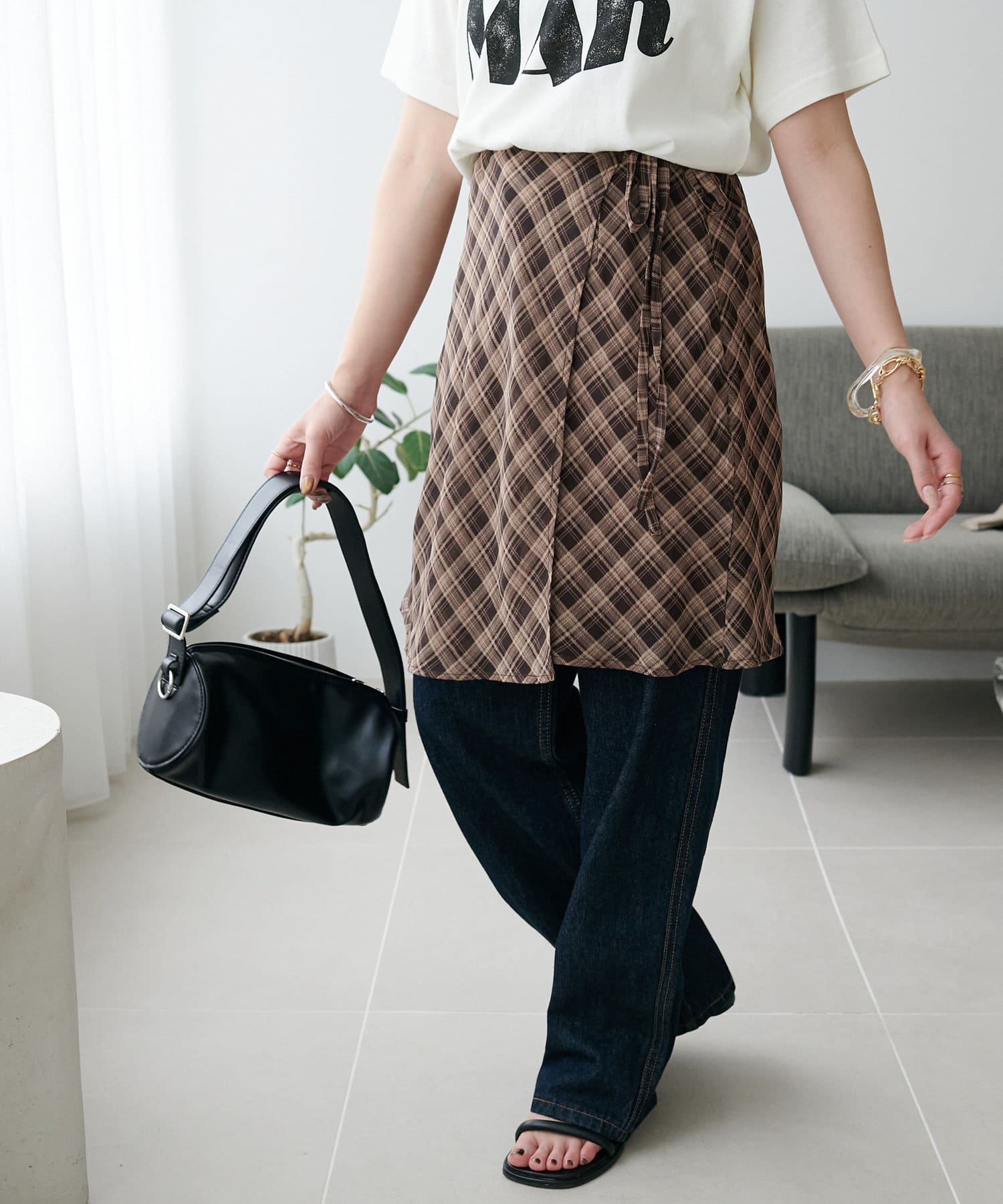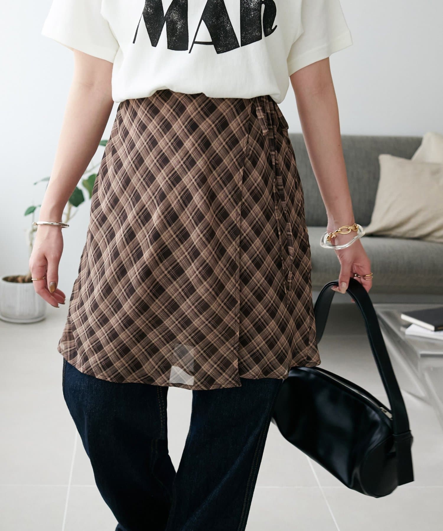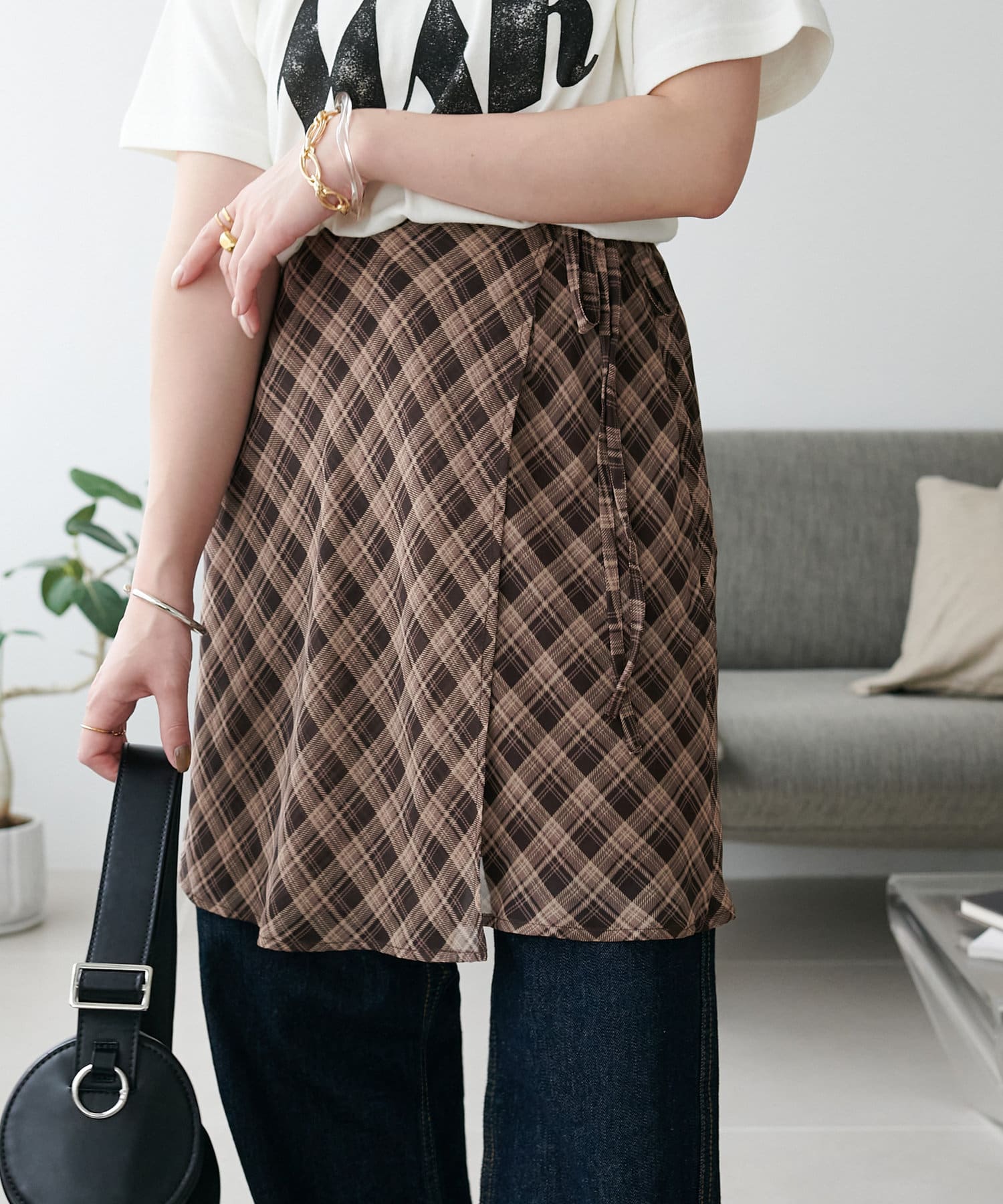 旬のレイヤードスタイルが叶う、チェックラップスカート