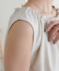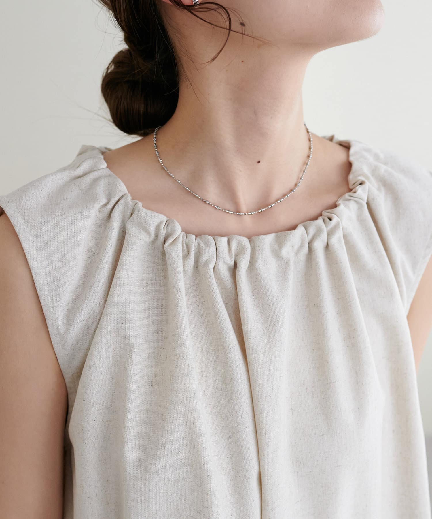 ギャザーの寄せ具合が調整できるので、アクセサリーがなくても首元が華やかになります♪