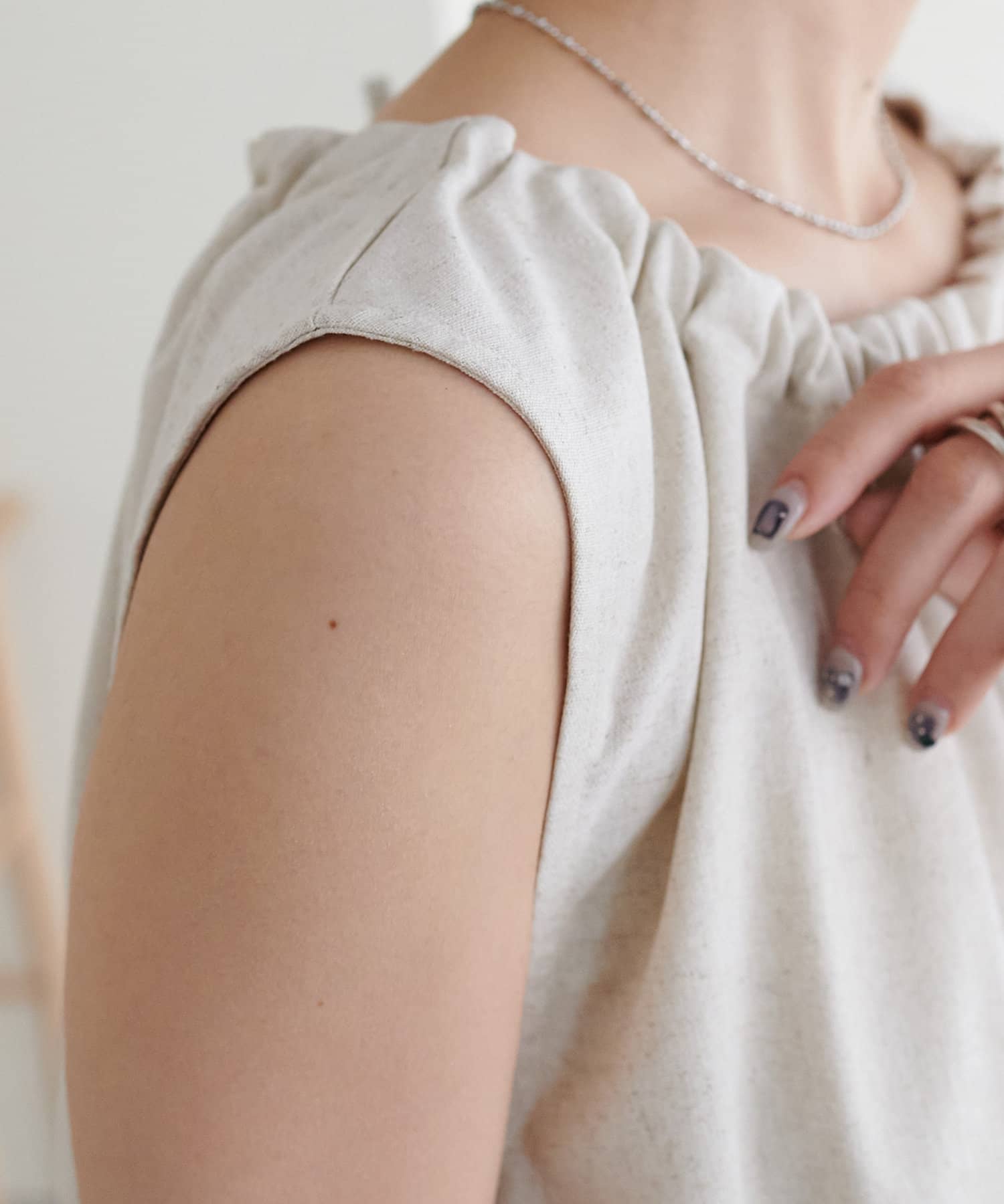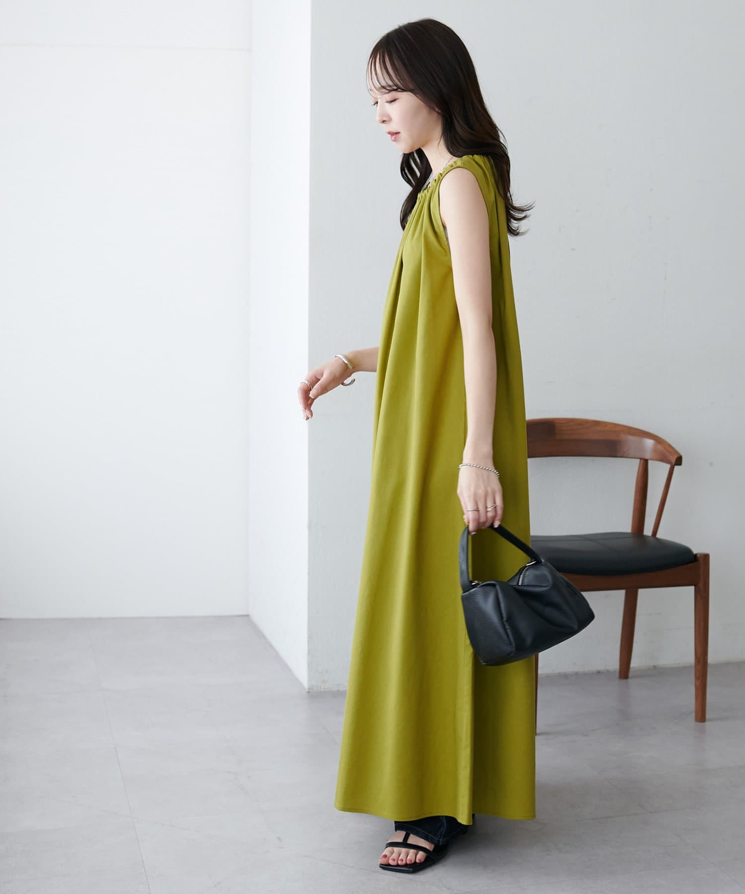 【新色追加!/WEB限定】衿ギャザーノースリワンピース