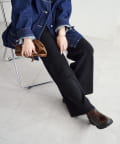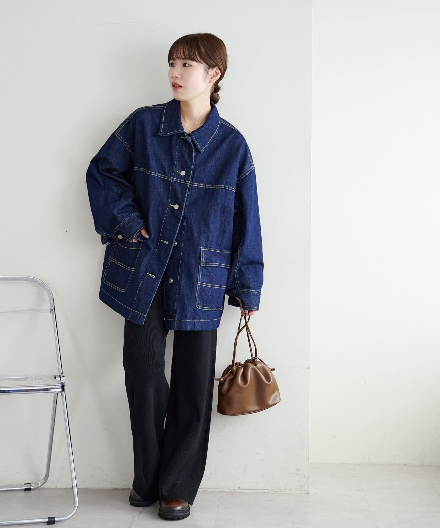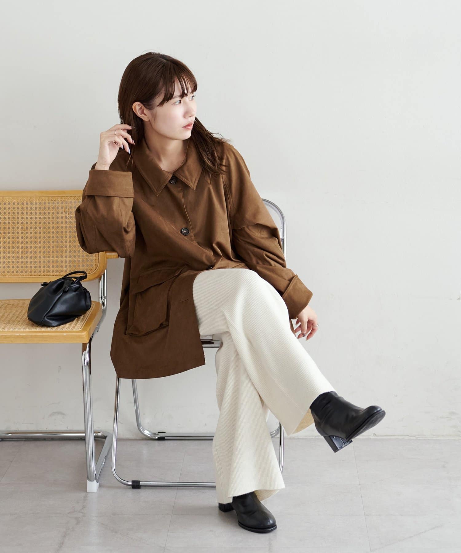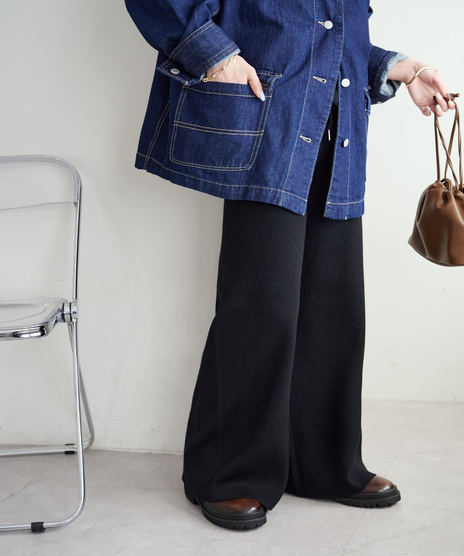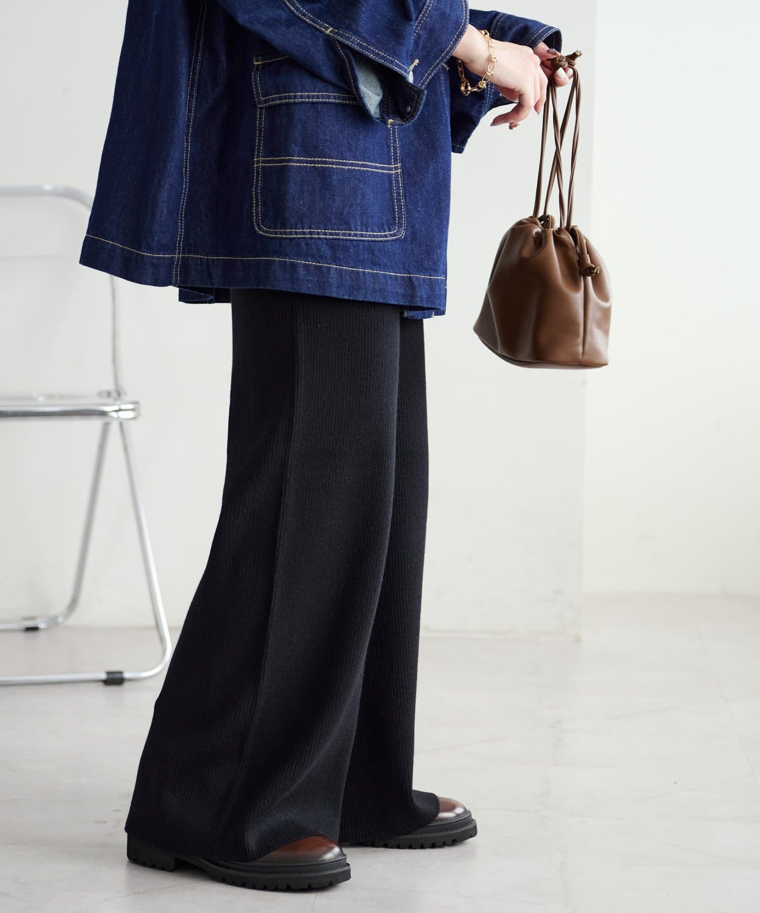 シンプルなので、合わせるアイテムはシンプルからトレンドまで問わず幅が広いです〇