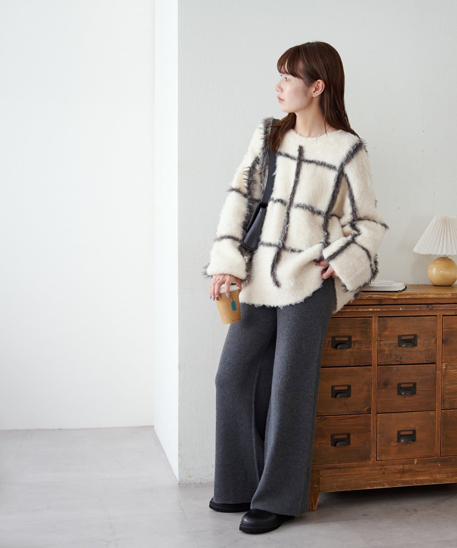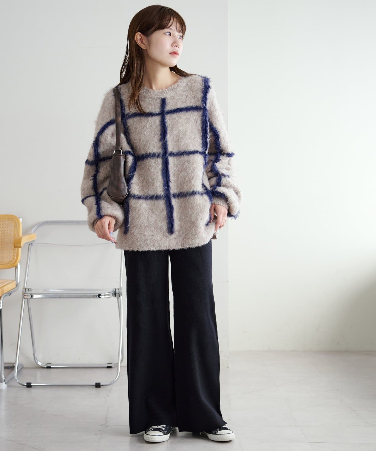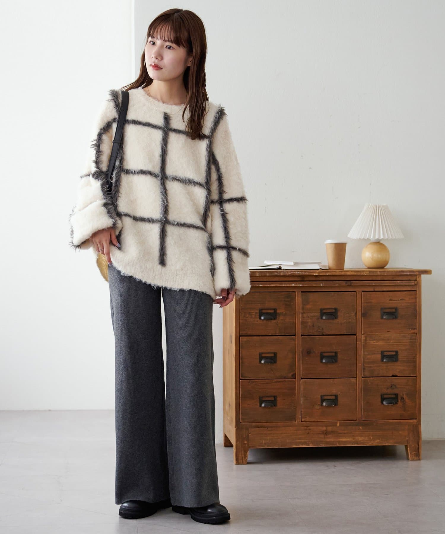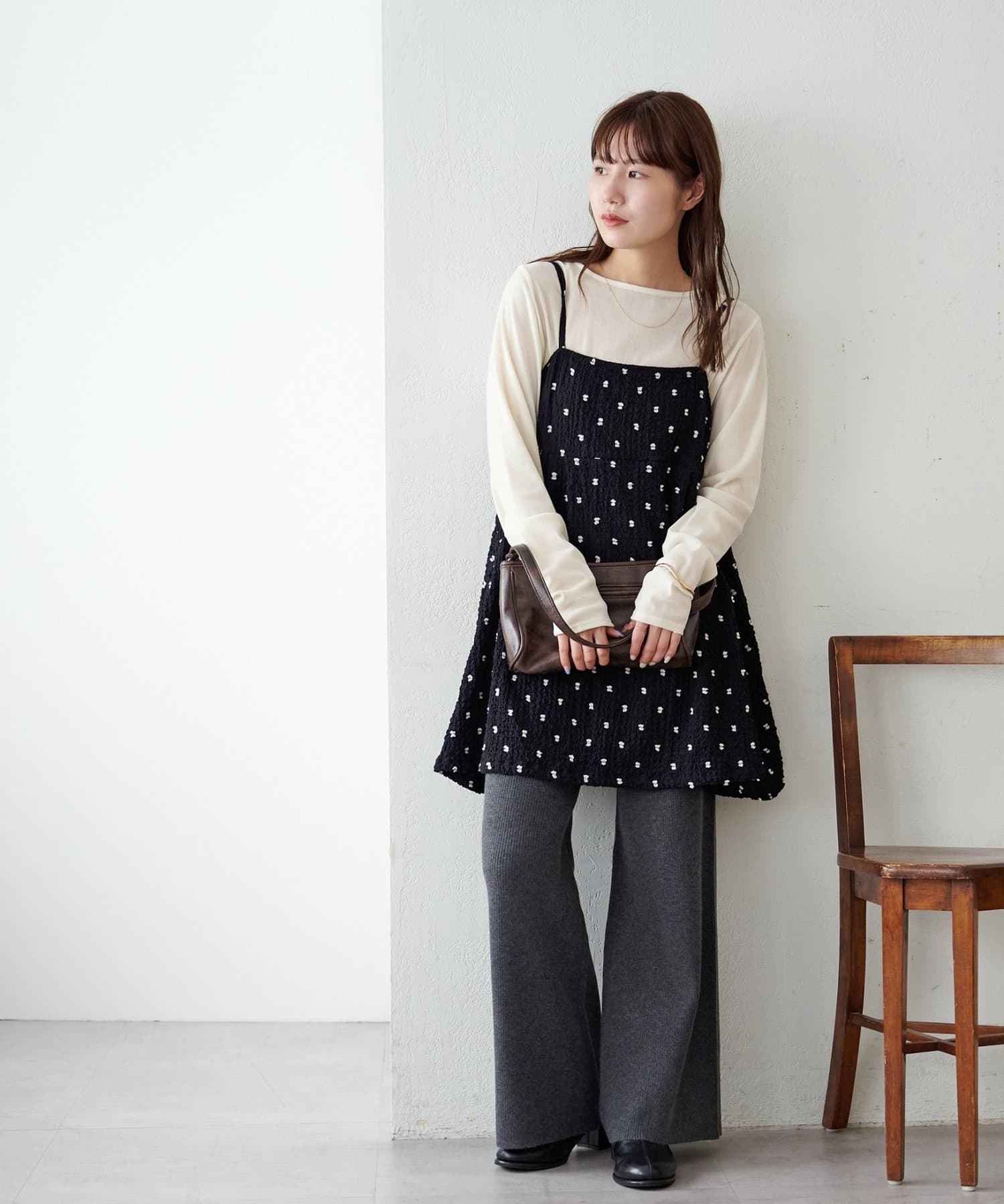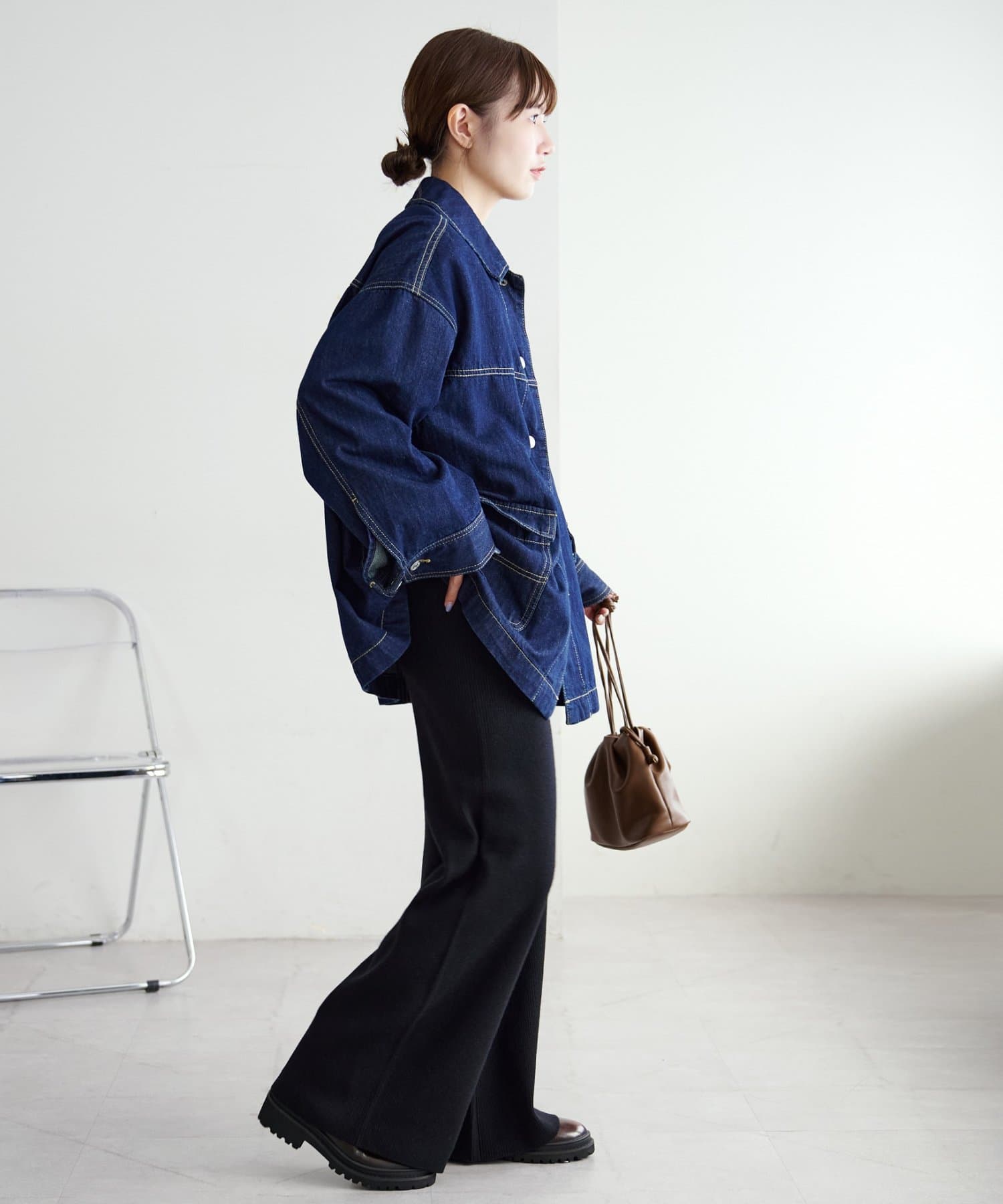シンプルなので、合わせるアイテムはシンプルからトレンドまで問わず幅が広いです〇