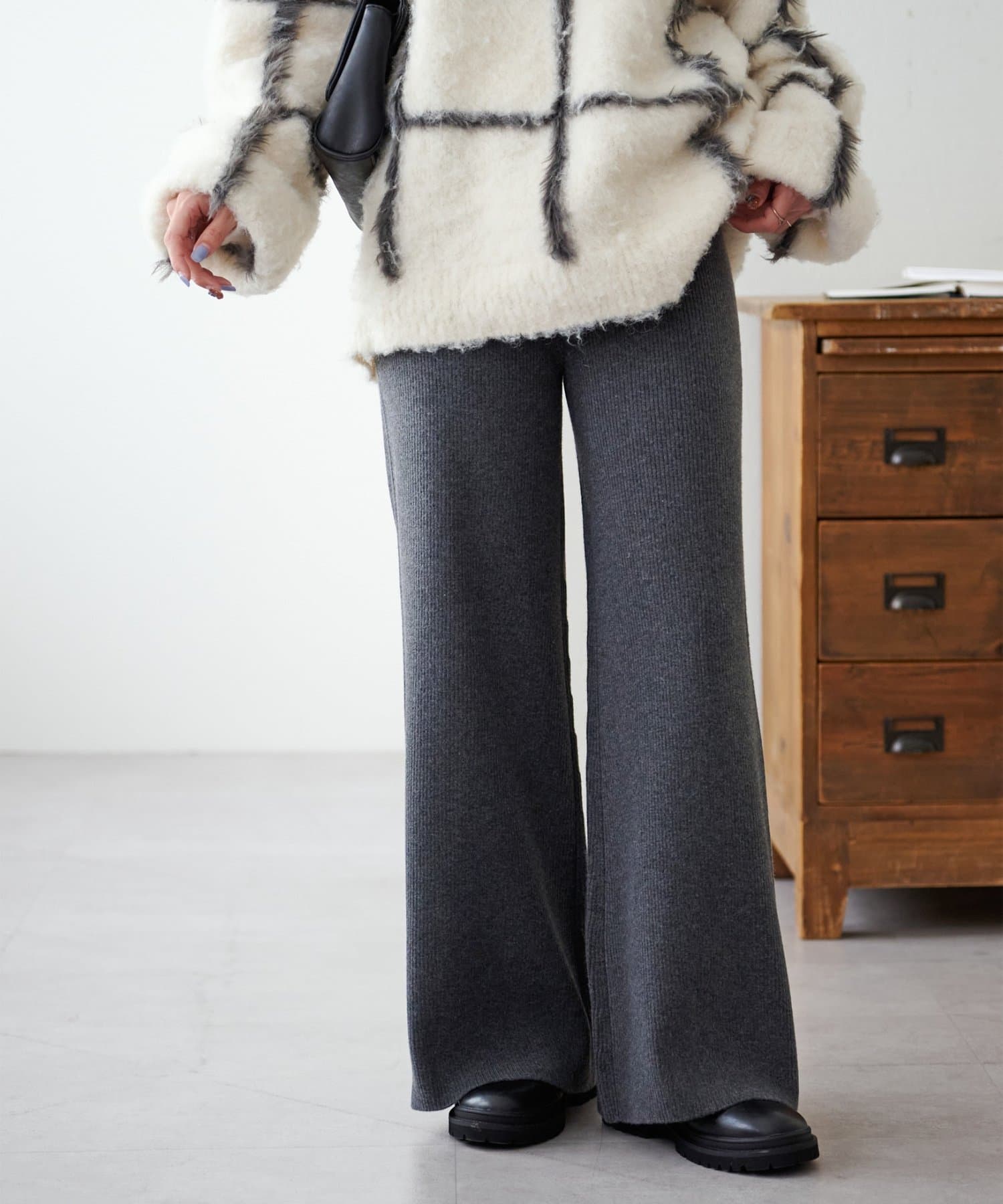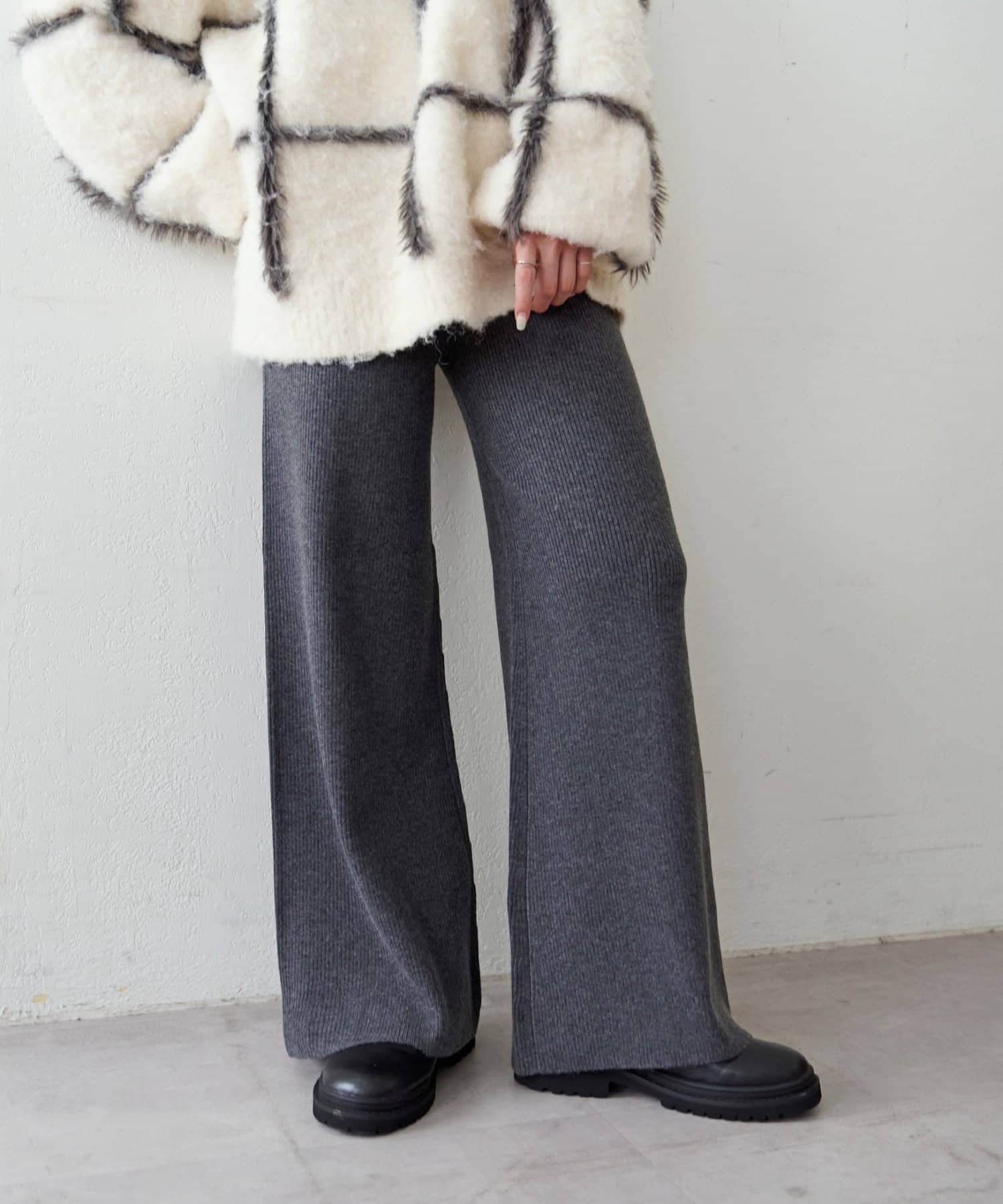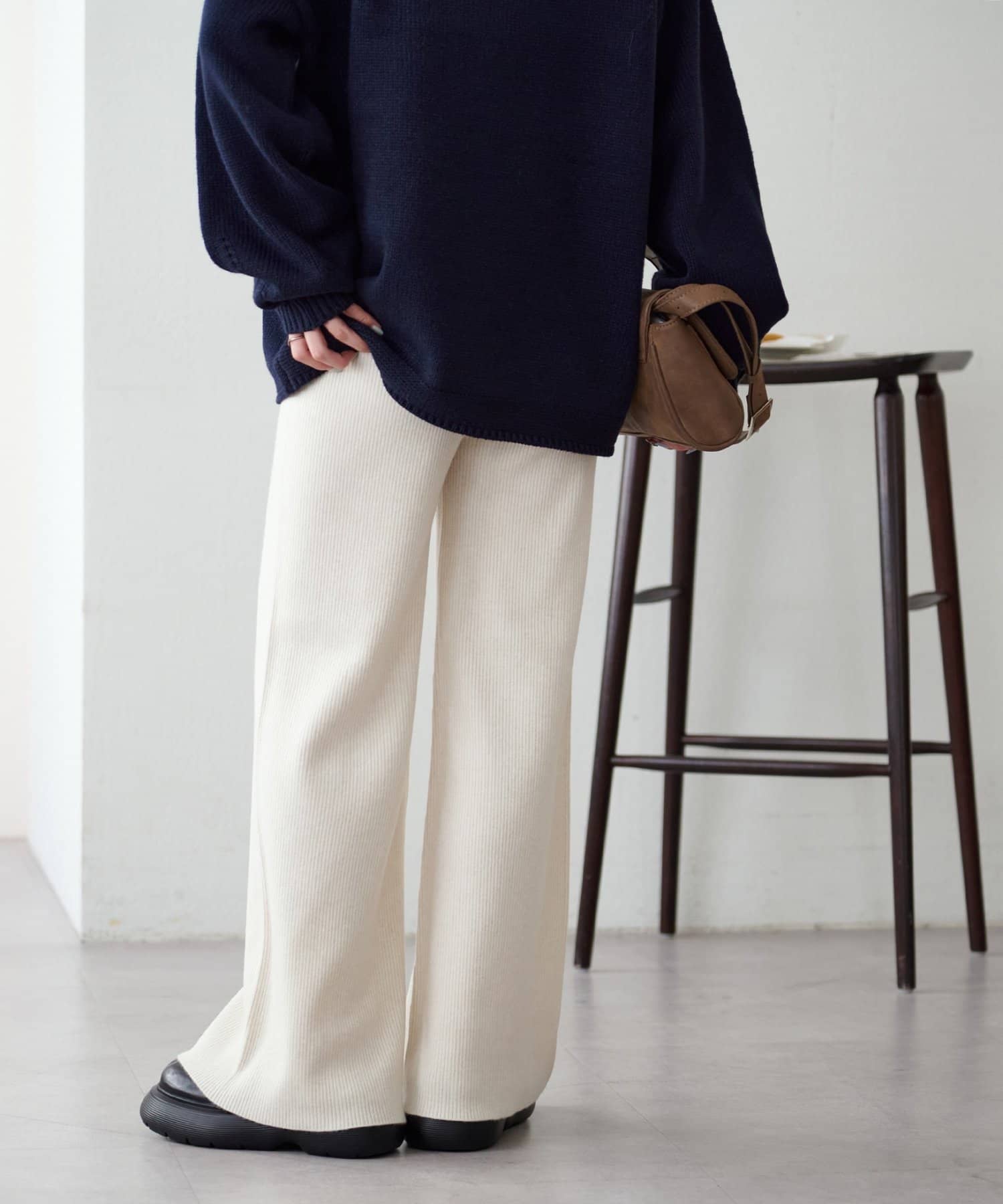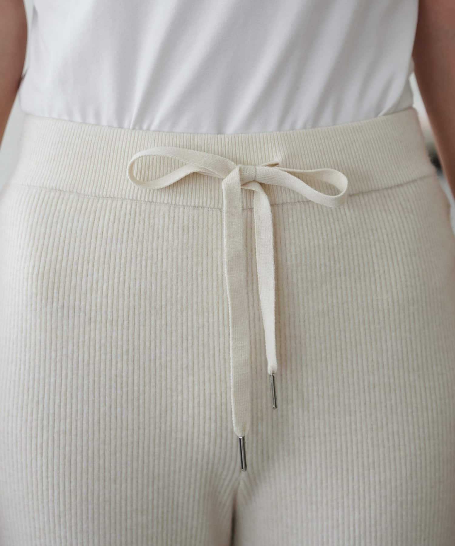 モチモチとした柔らかな生地感にリブニット素材が履き心地の良さを叶えるニットパンツ。