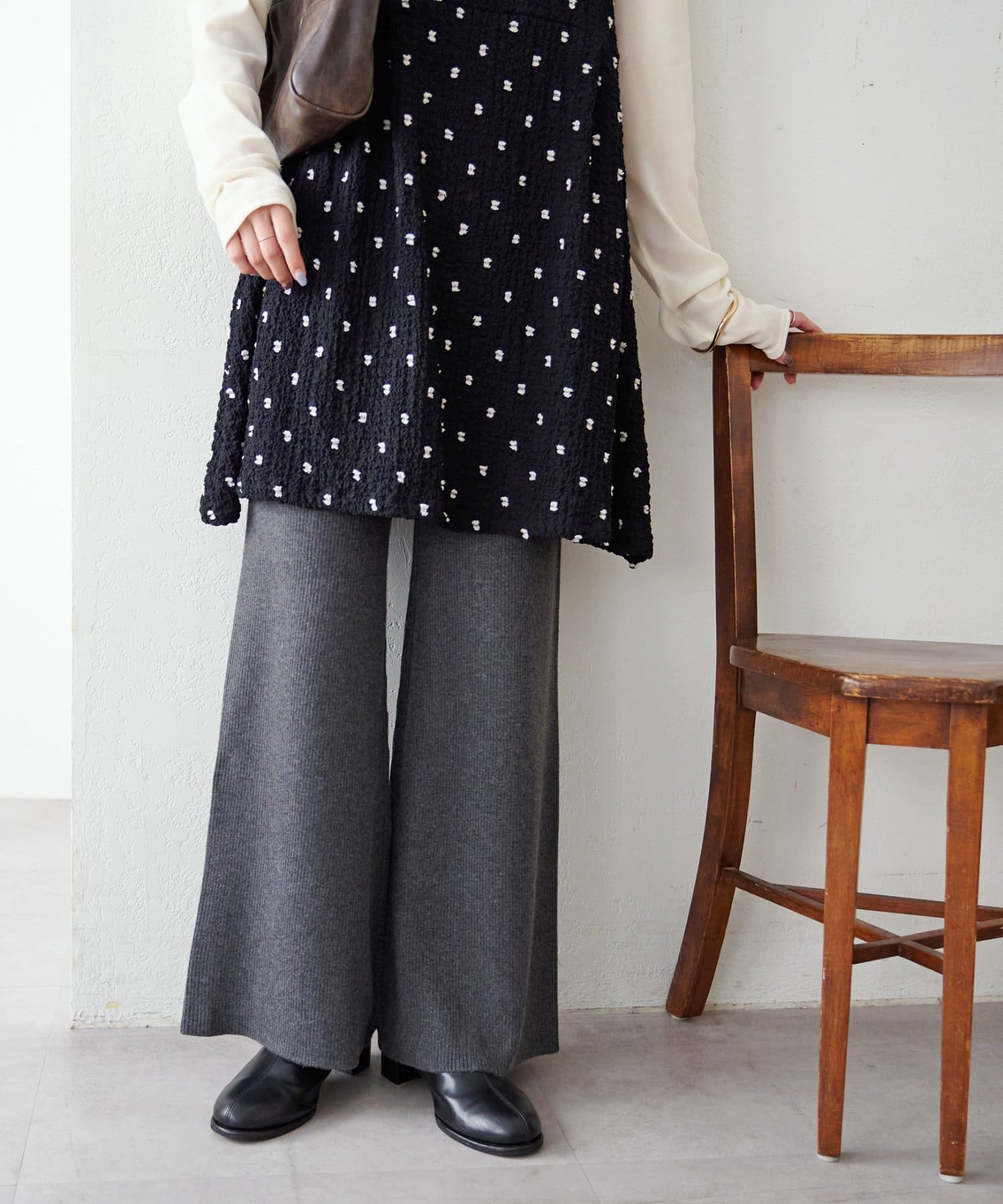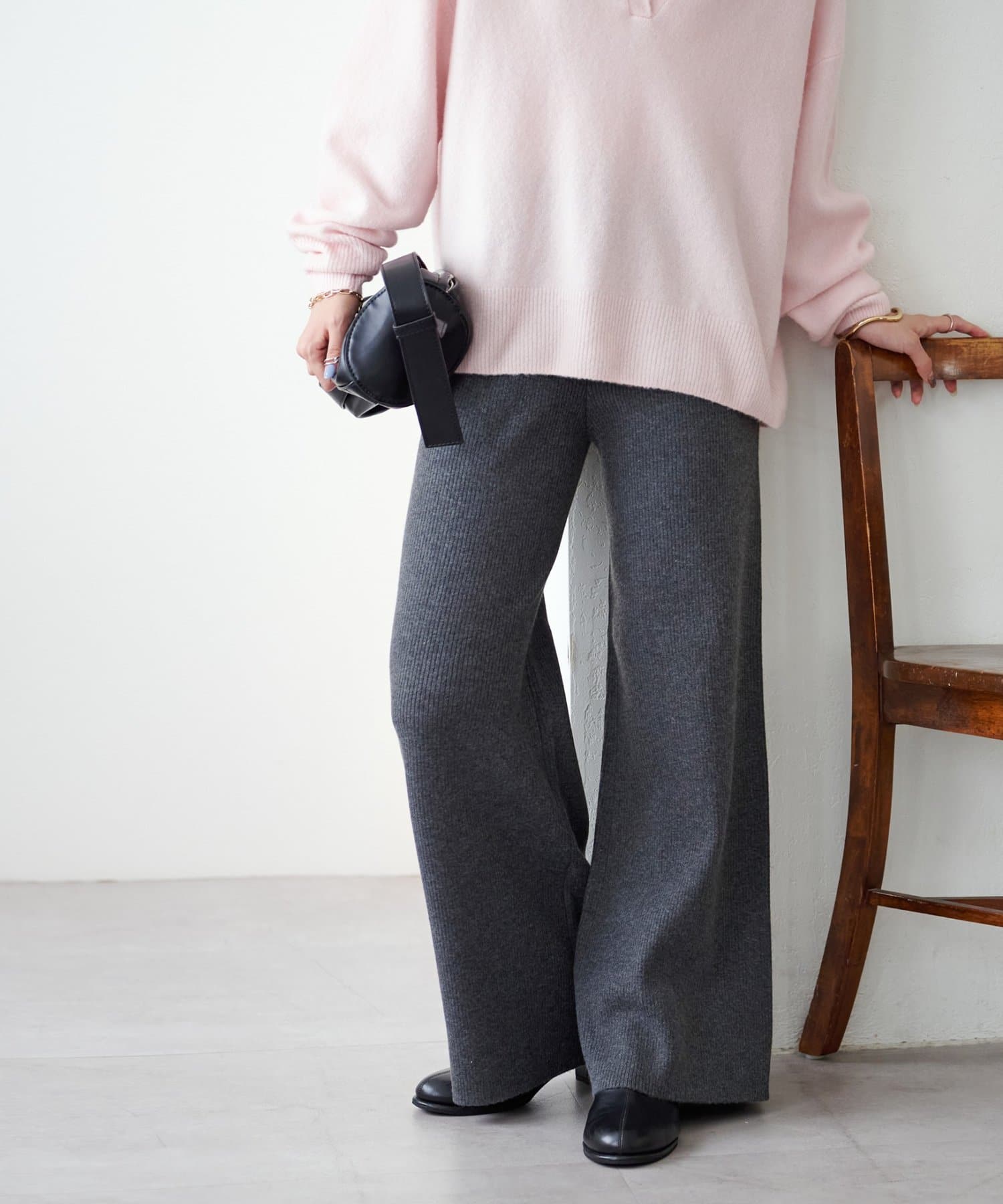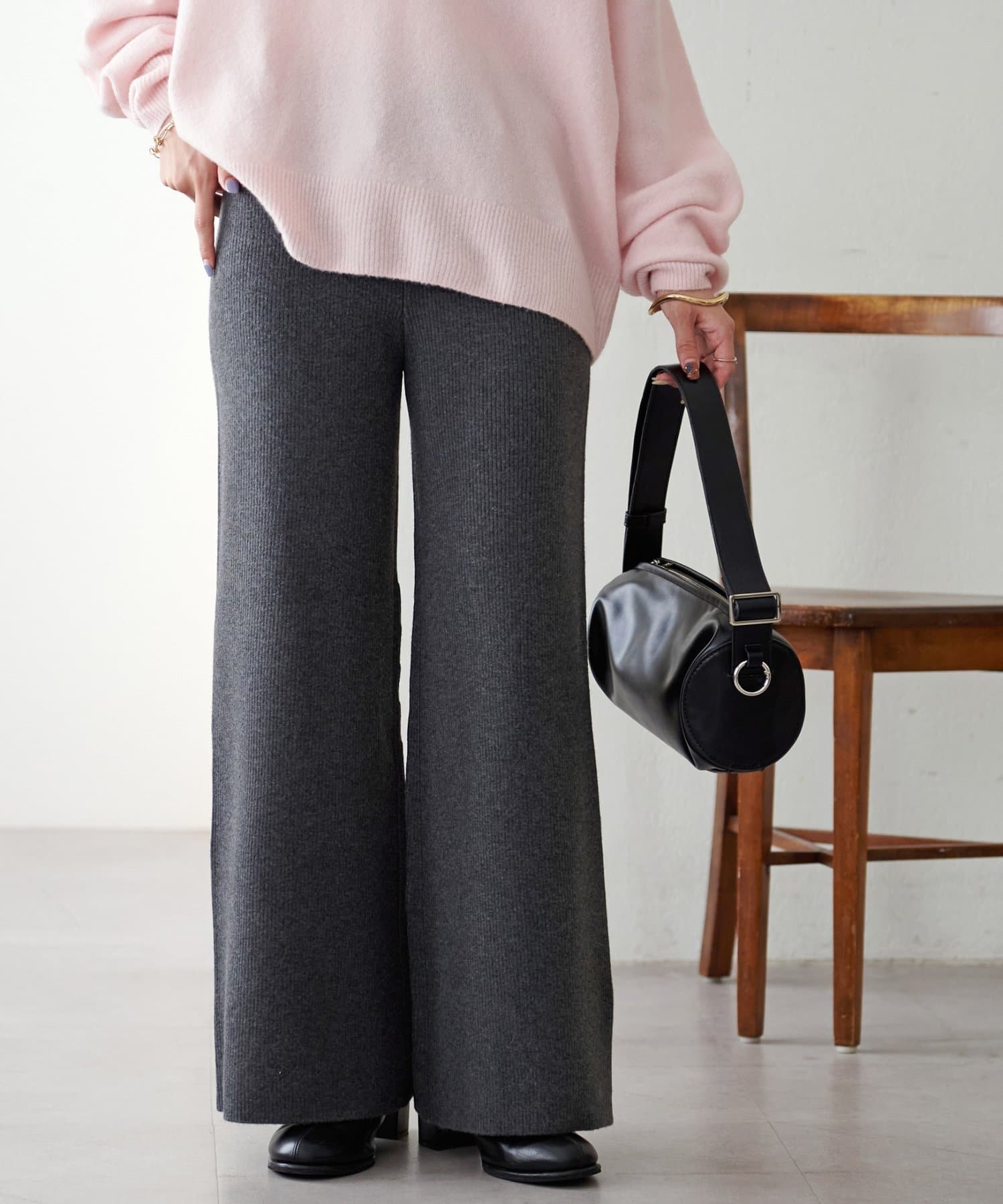 モチモチとした柔らかな生地感にリブニット素材が履き心地の良さを叶えるニットパンツ。