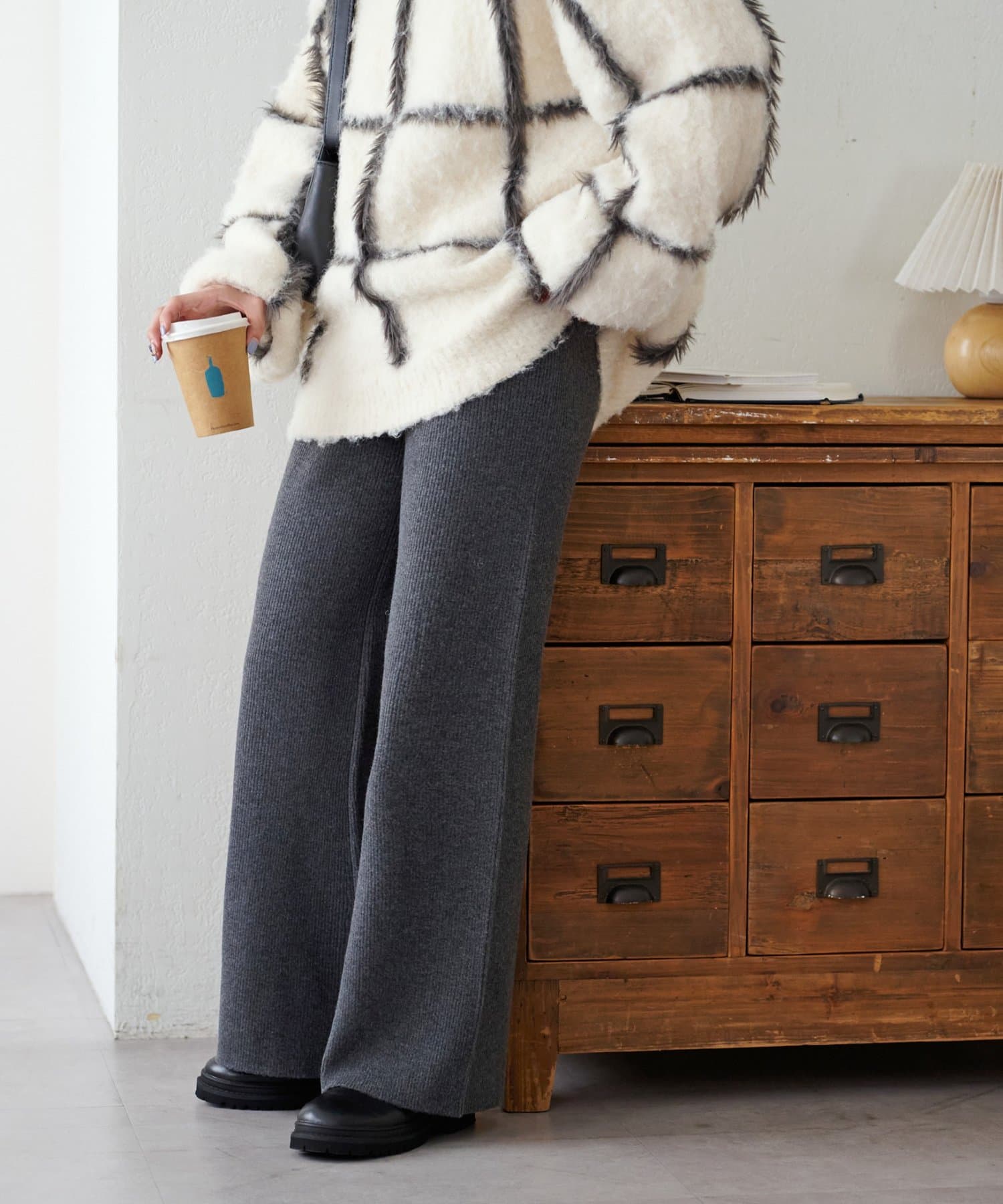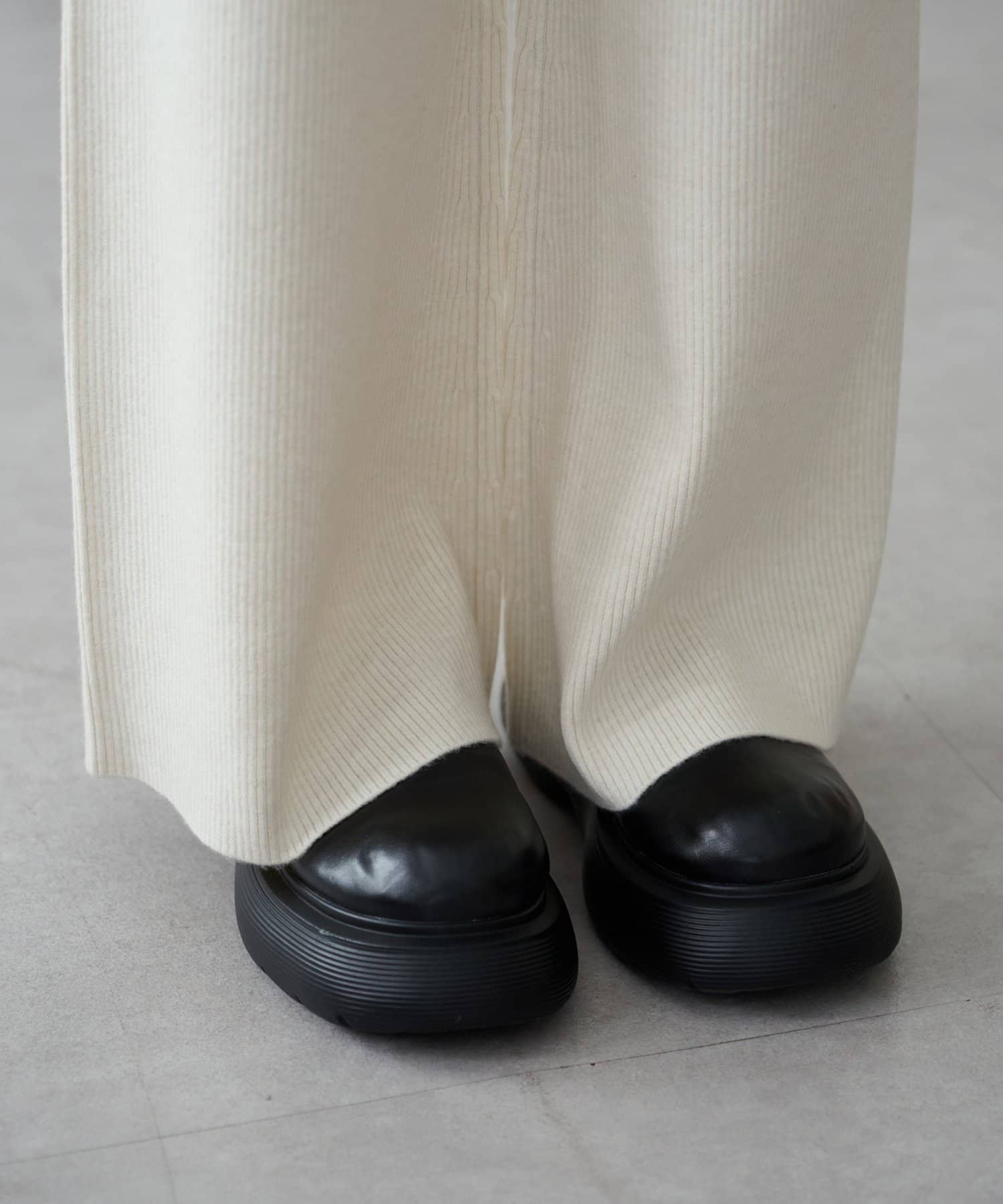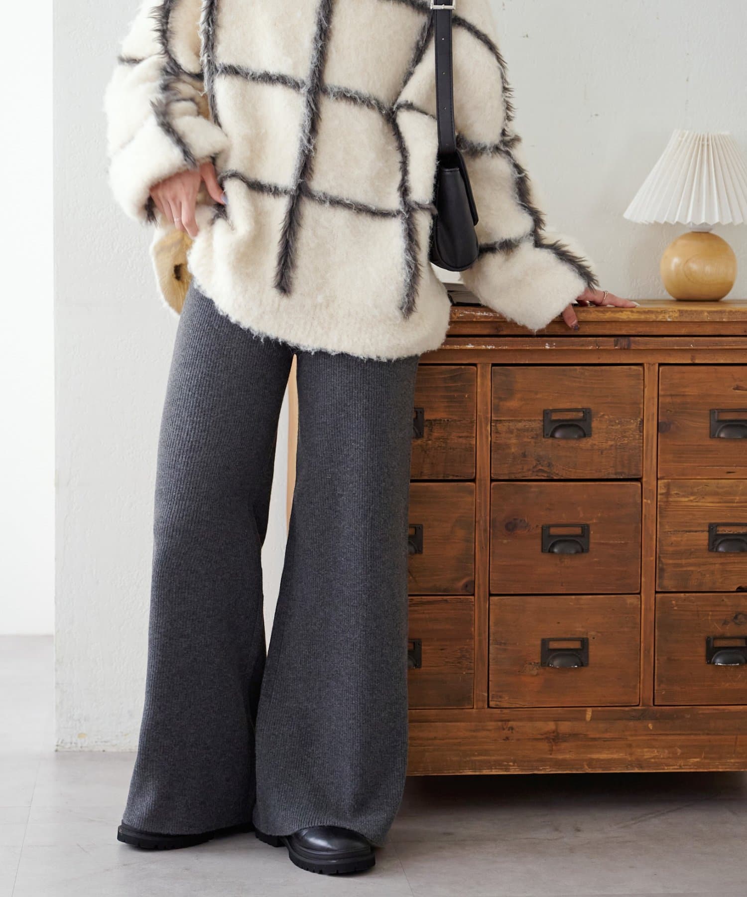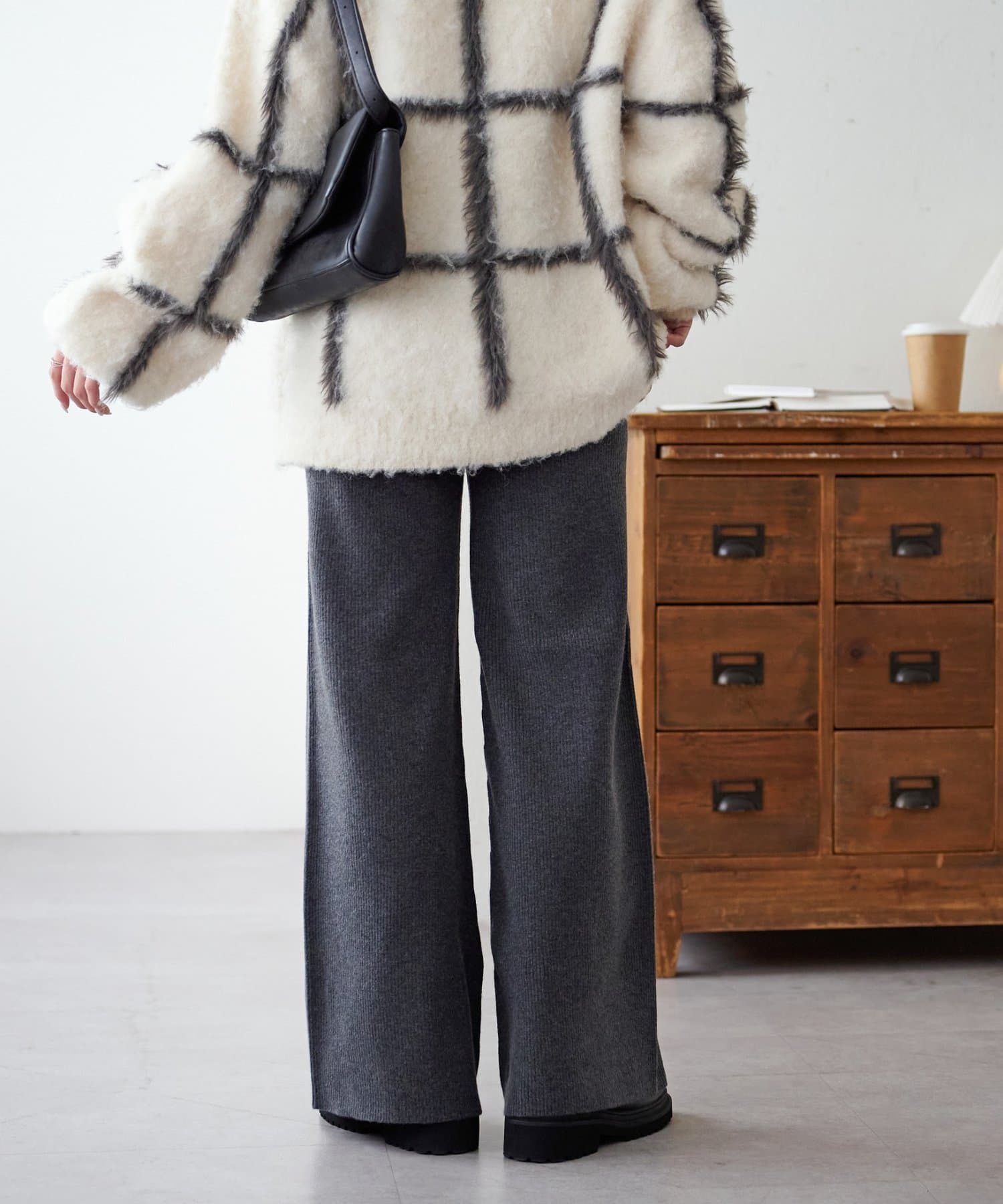 モチモチとした柔らかな生地感にリブニット素材が履き心地の良さを叶えるニットパンツ。