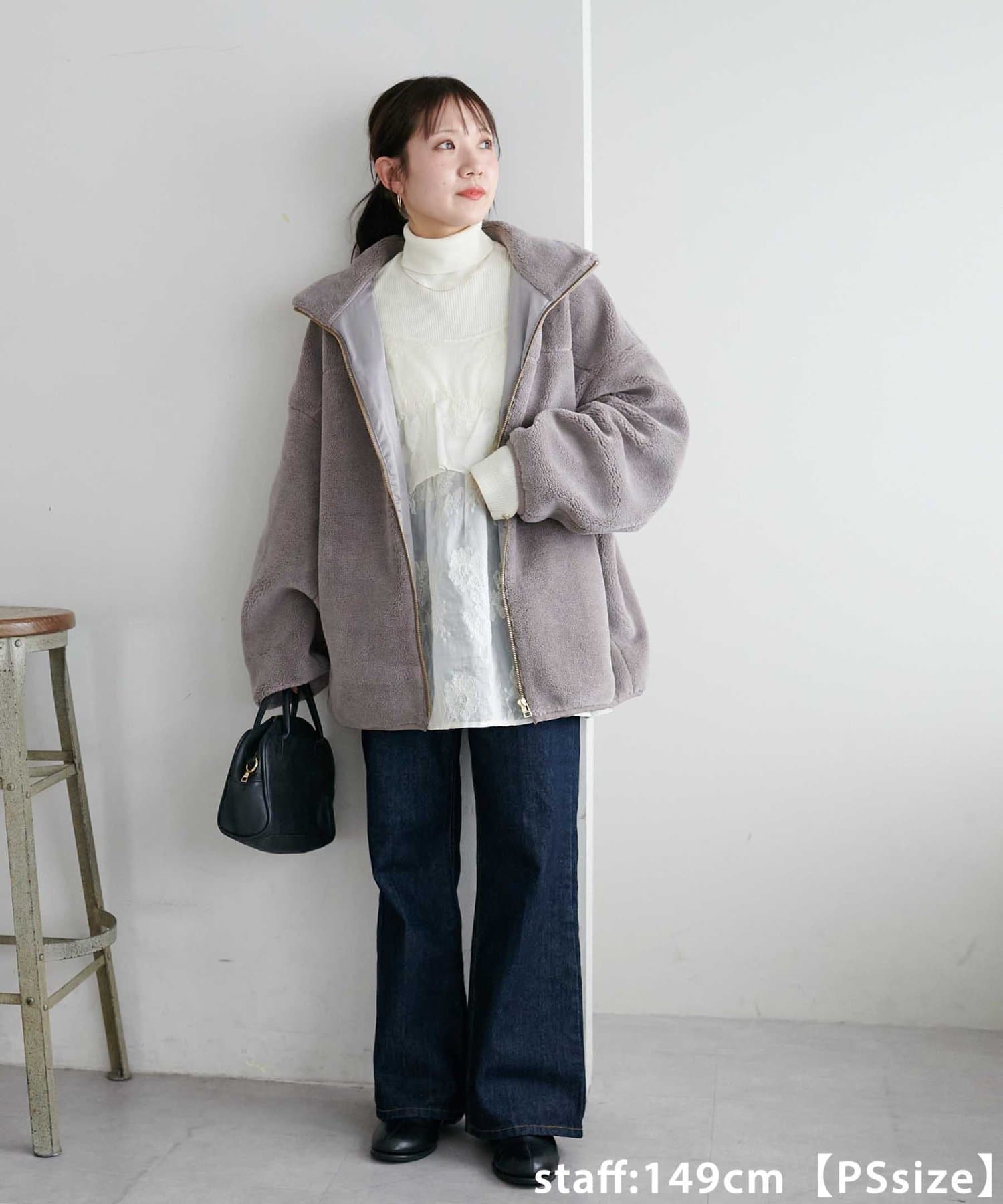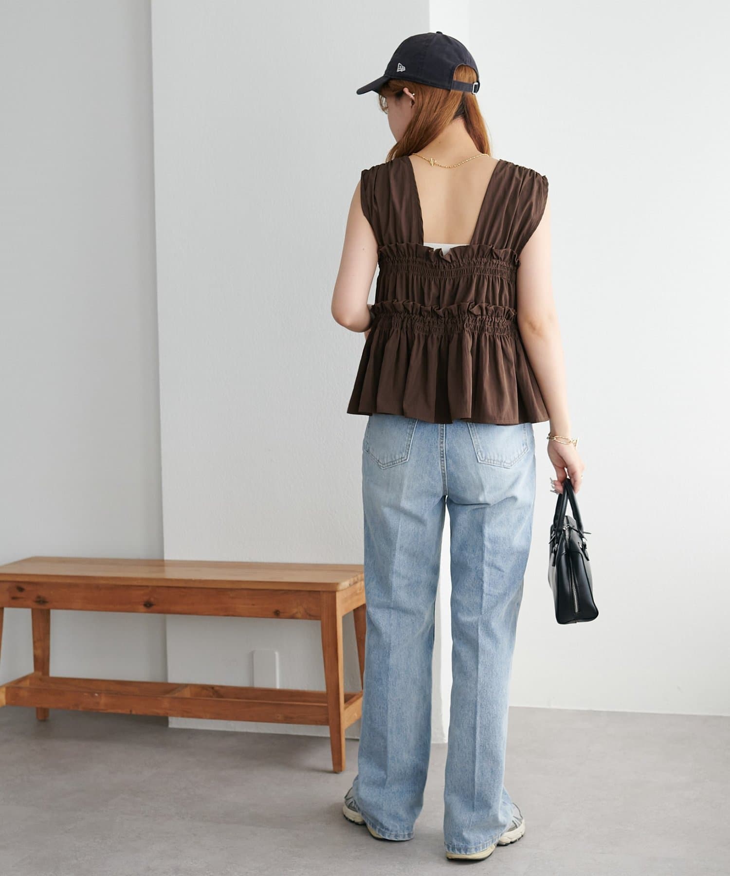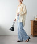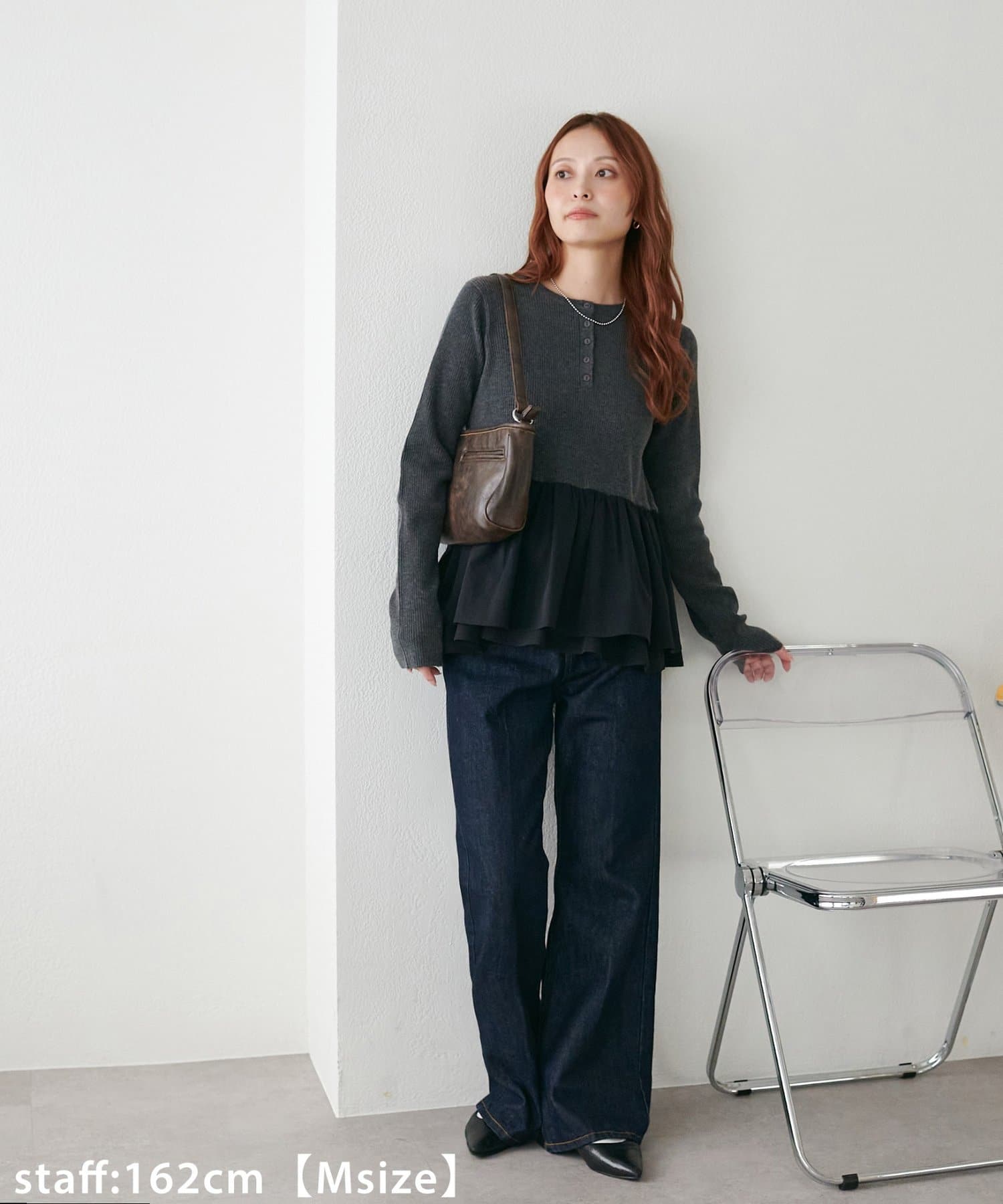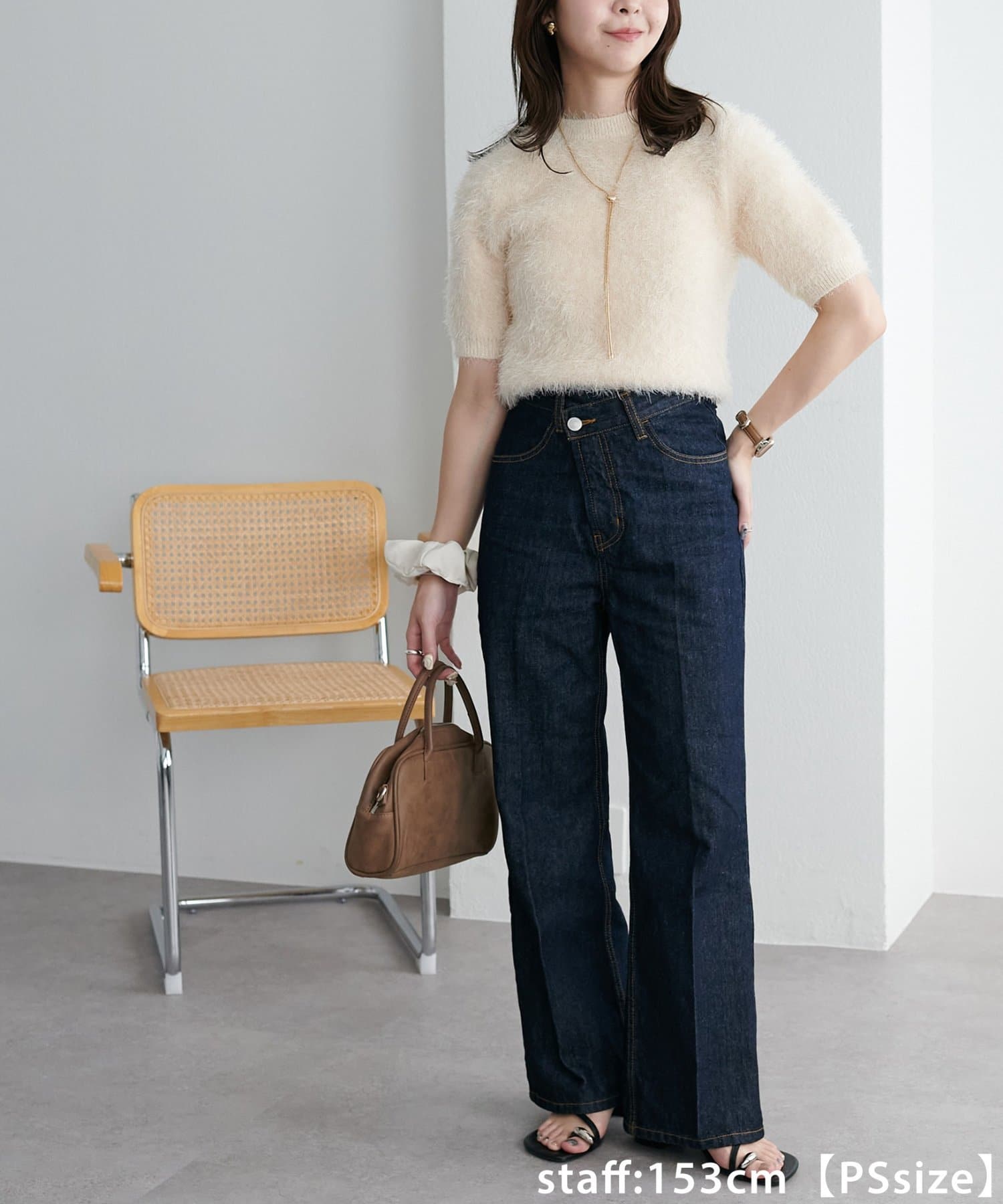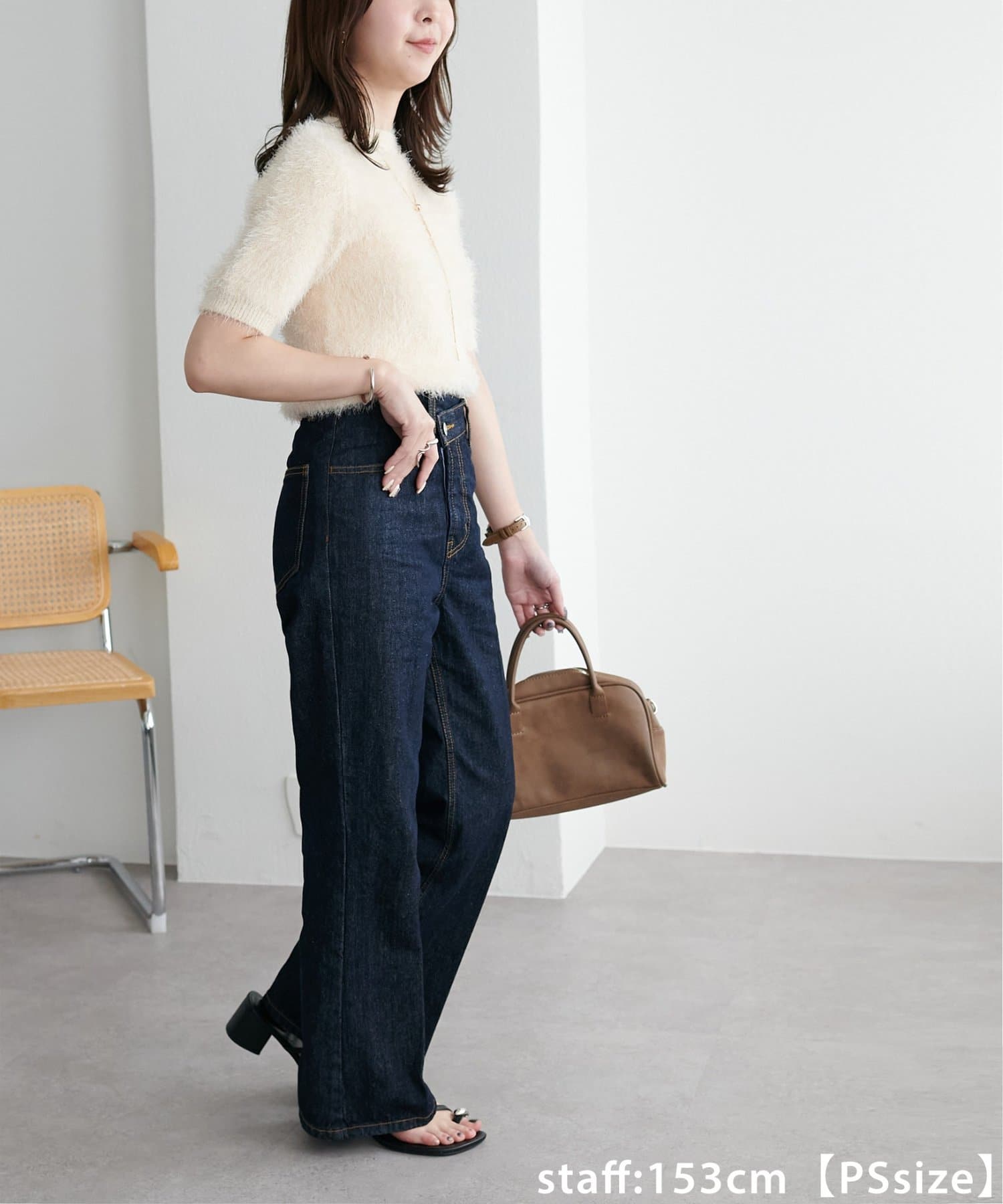 153cmスタッフ(PSサイズ着用):少し長めの丈感なので、厚底サンダルやヒール合わせがおすすめ。シルエットはスラッとしていて、低身長でもバランスよく着こなせます!