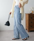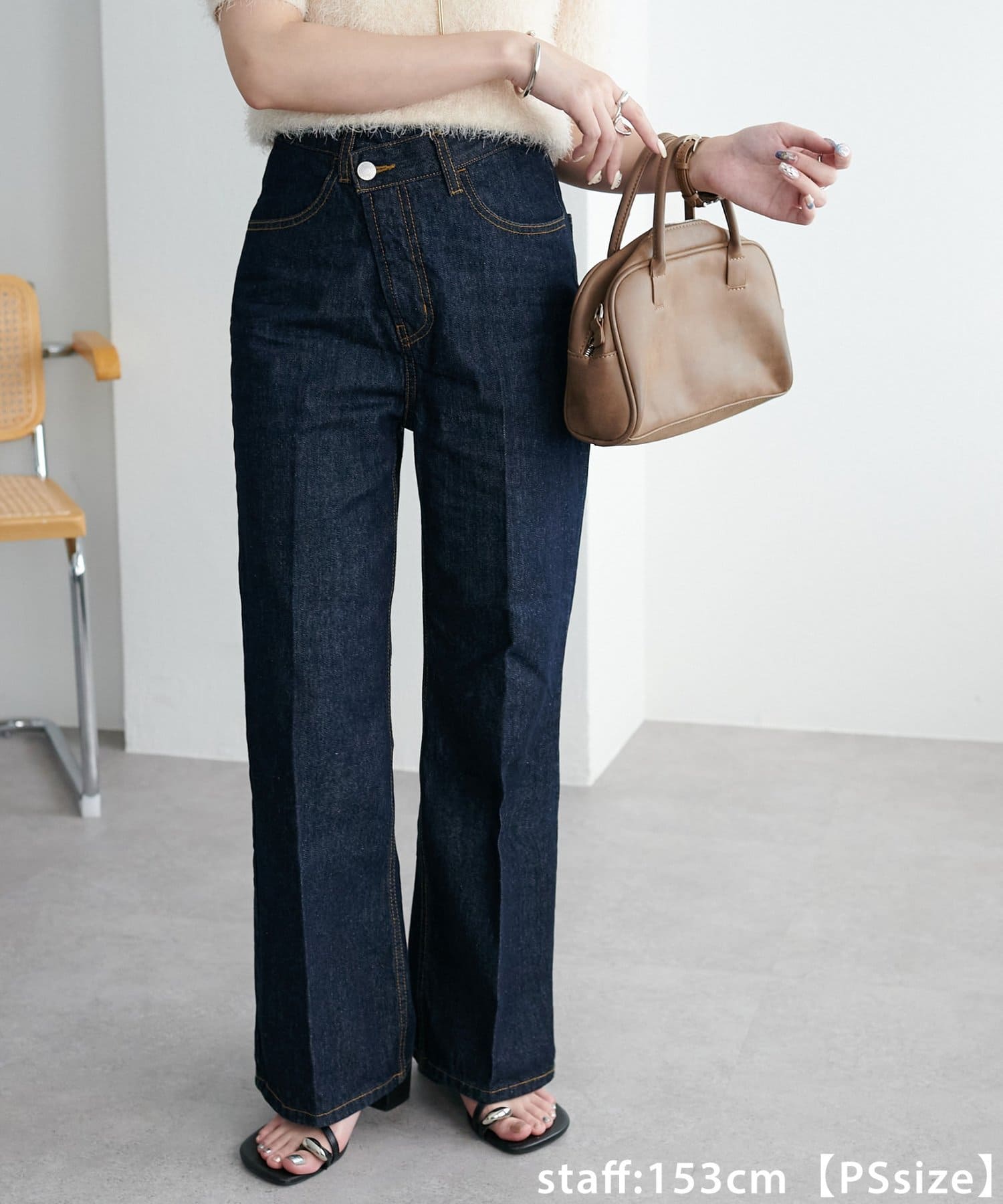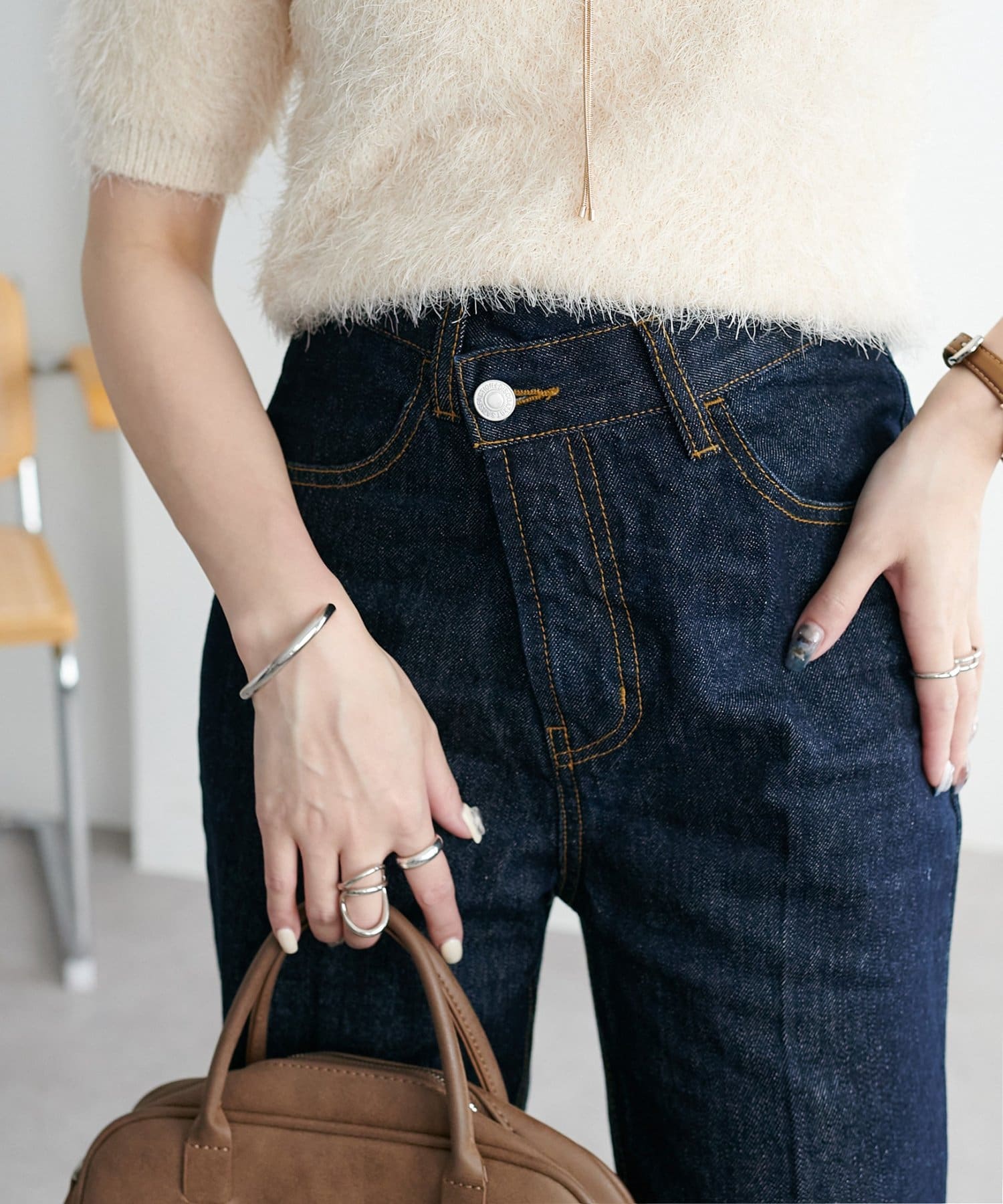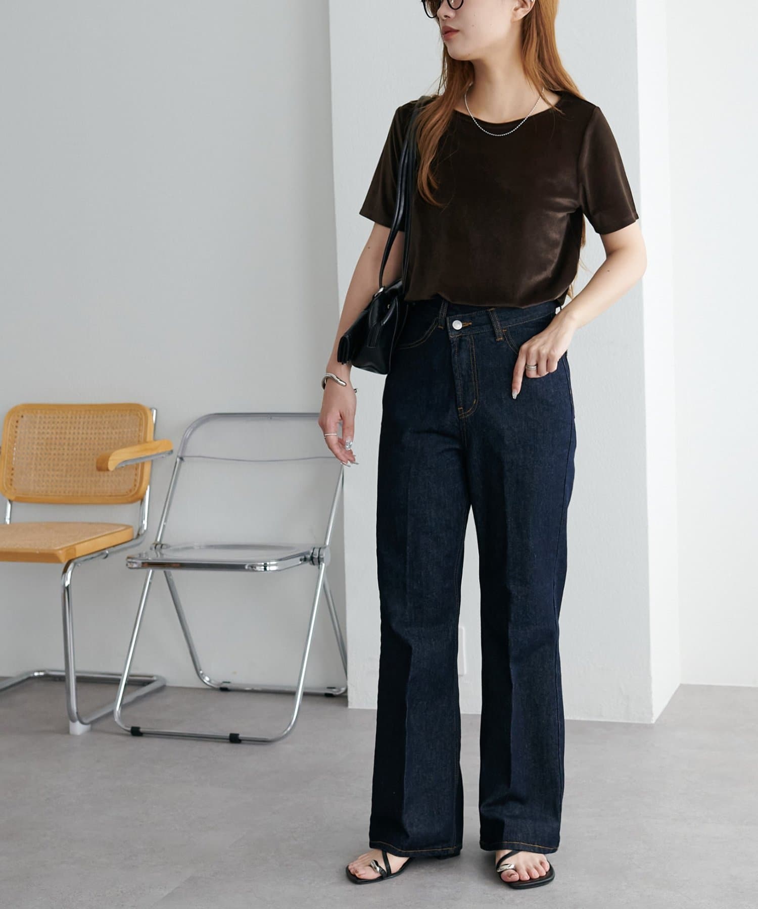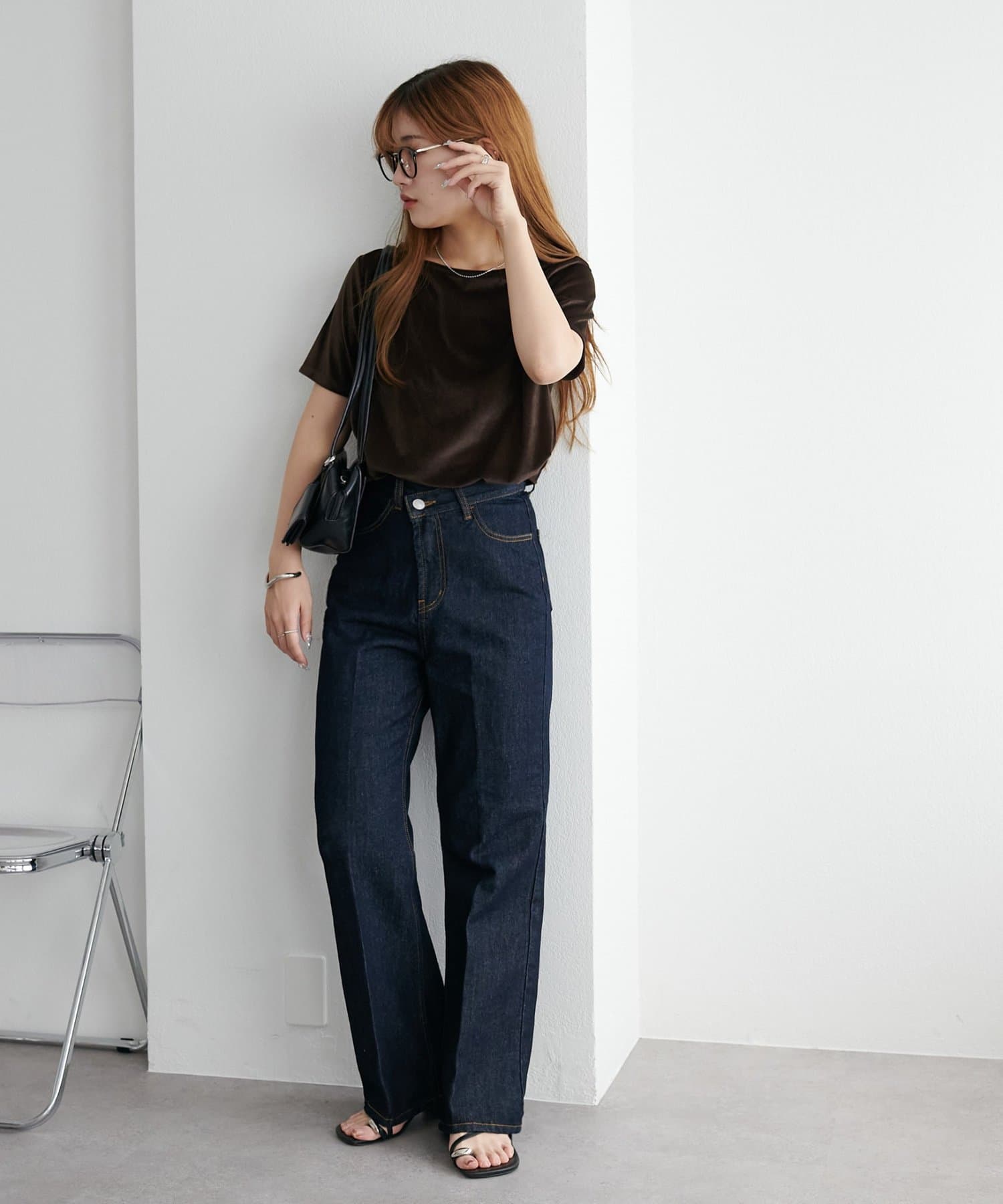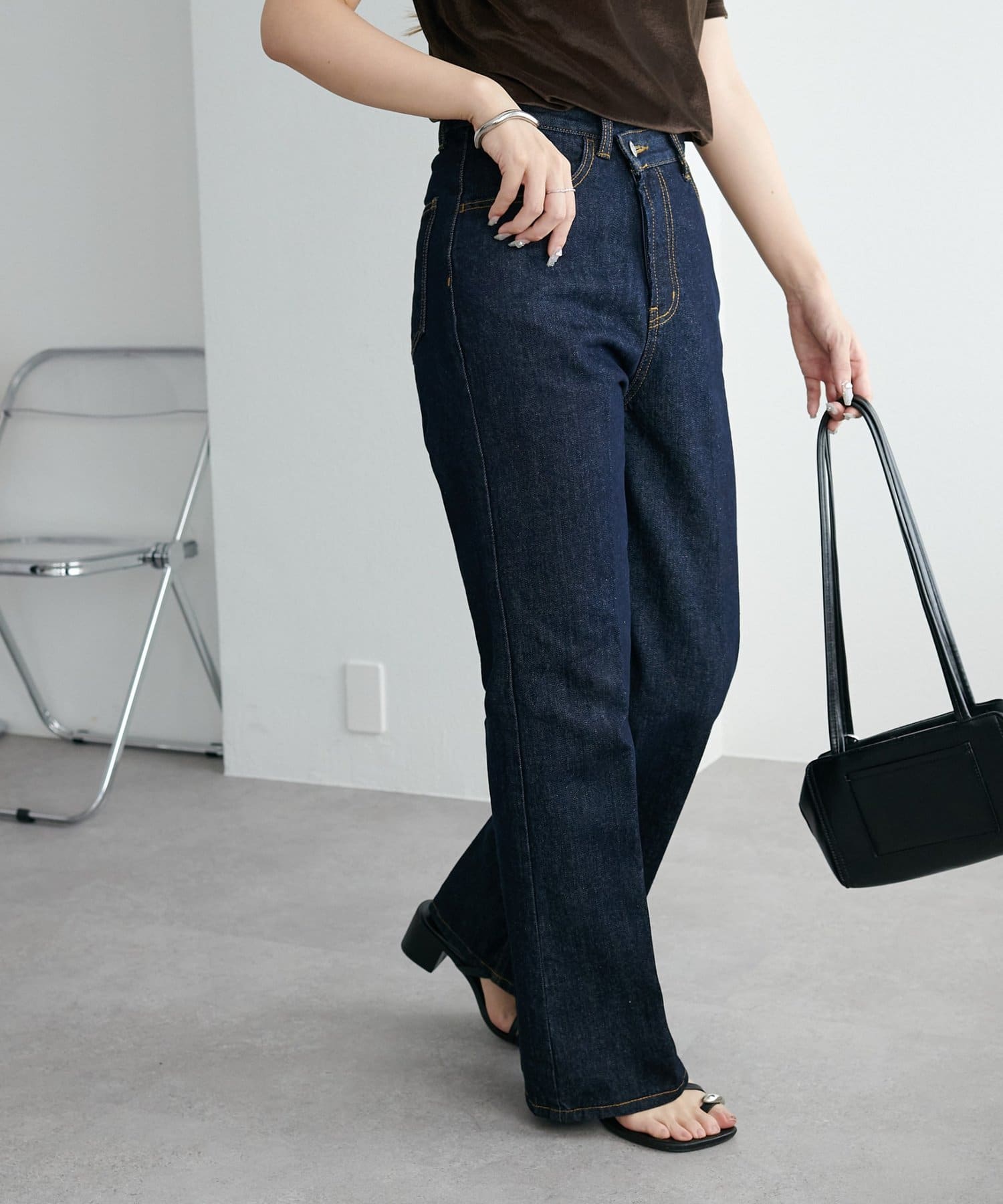 太すぎず細すぎない絶妙なラインで、カジュアルになりがちなデニムも女性らしい印象に。