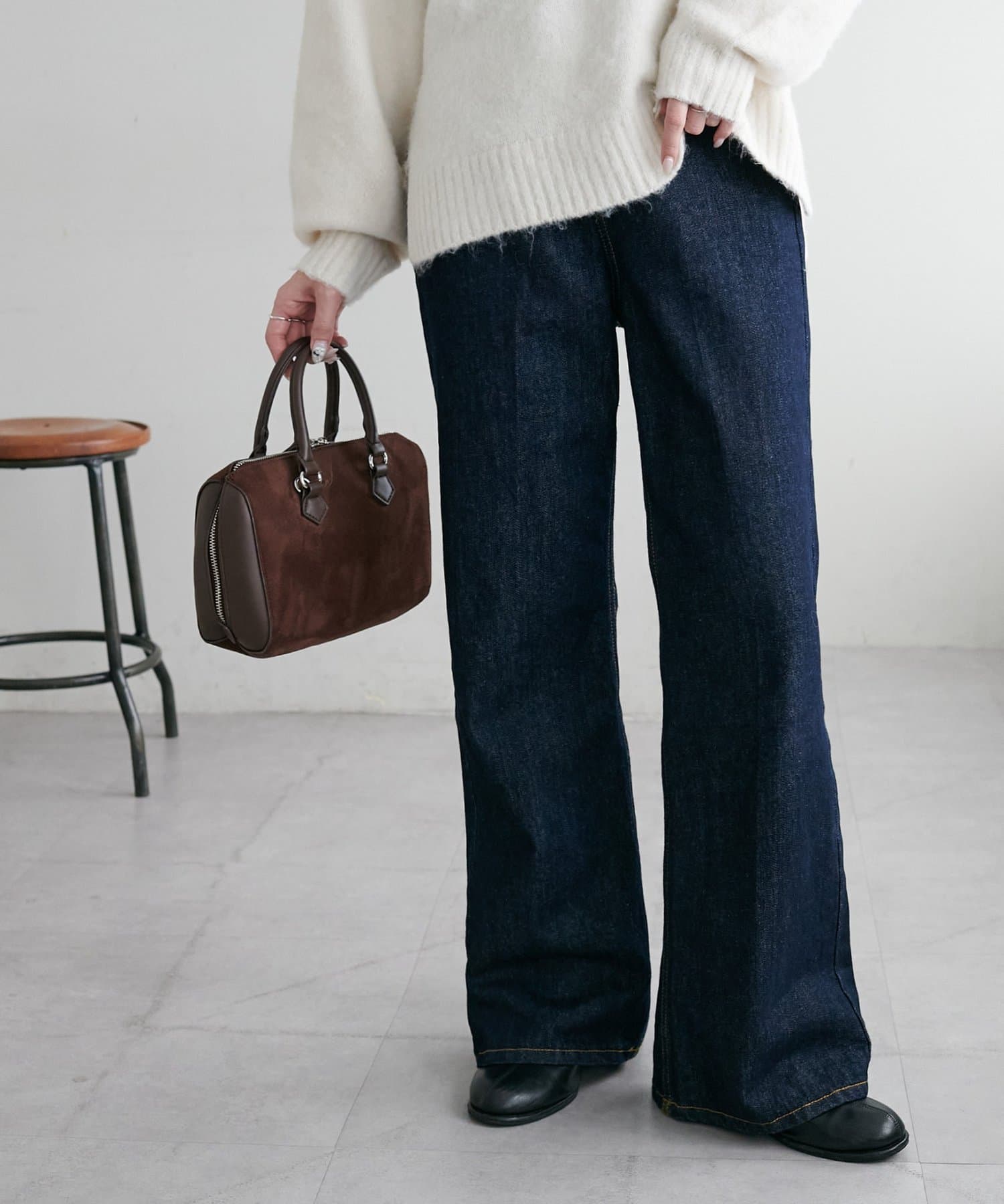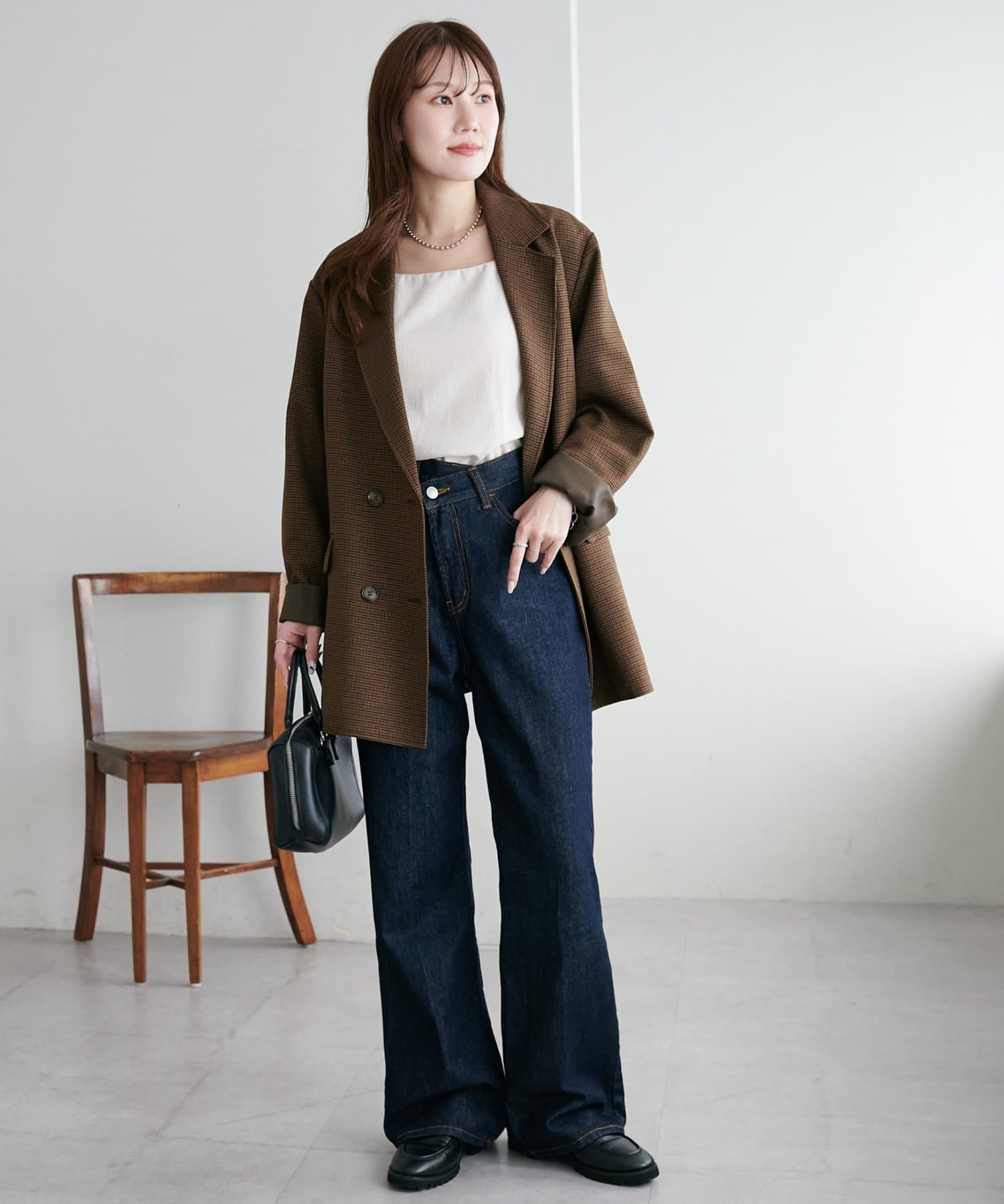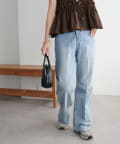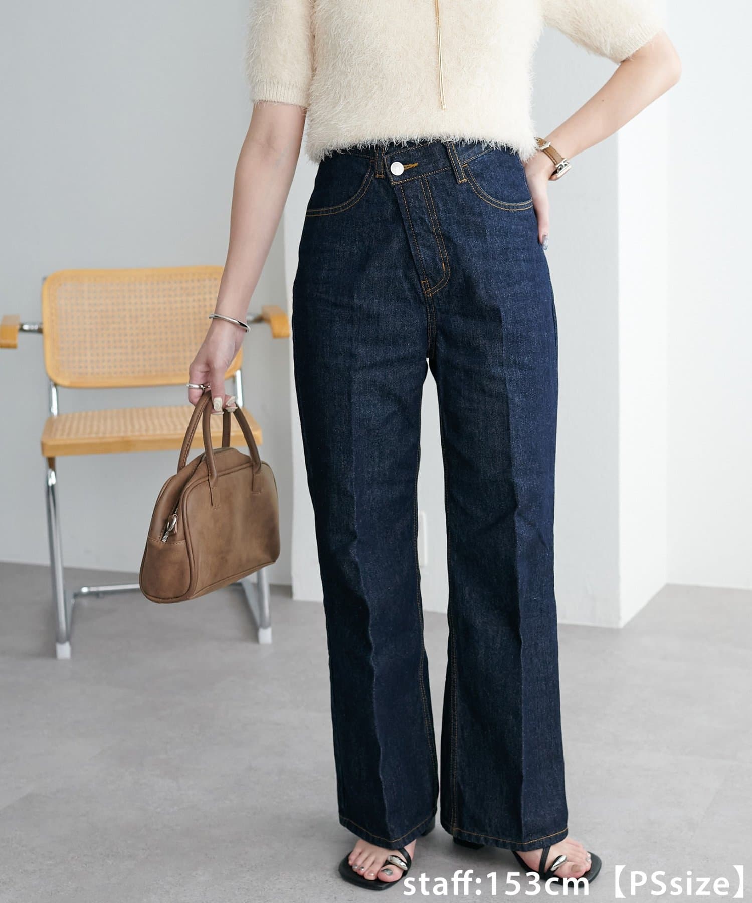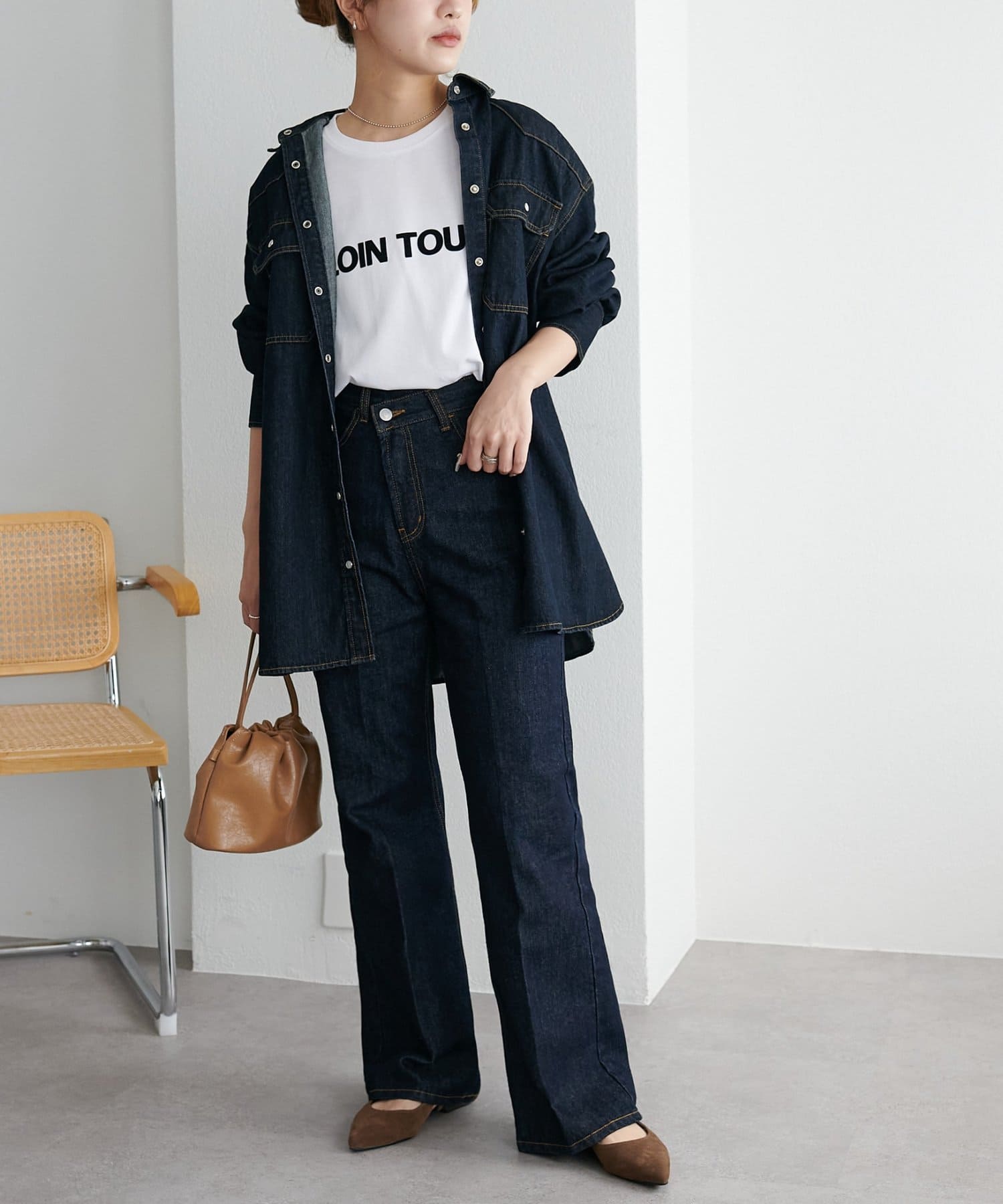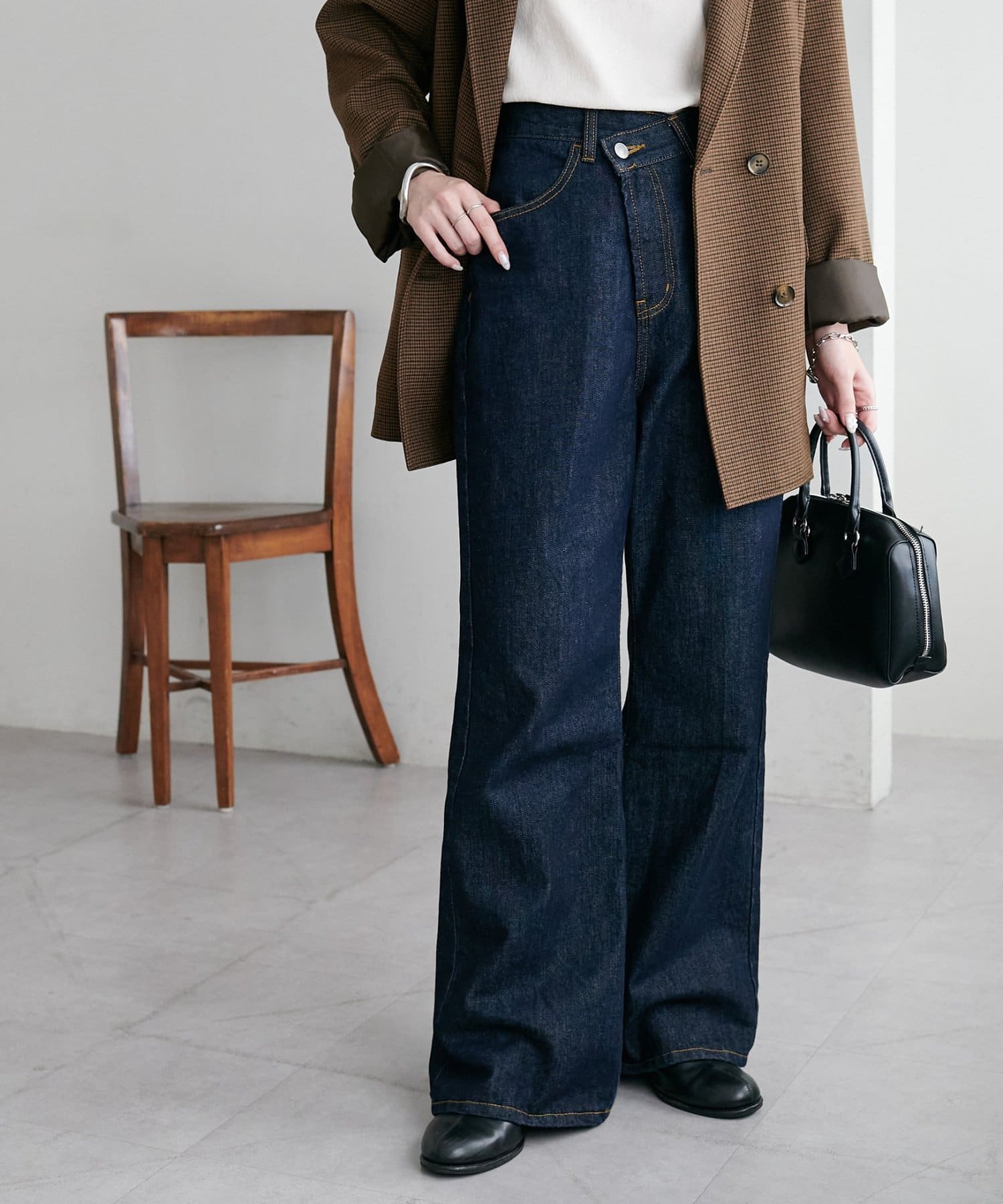 太すぎず細すぎない絶妙なラインで、カジュアルになりがちなデニムも女性らしい印象に。