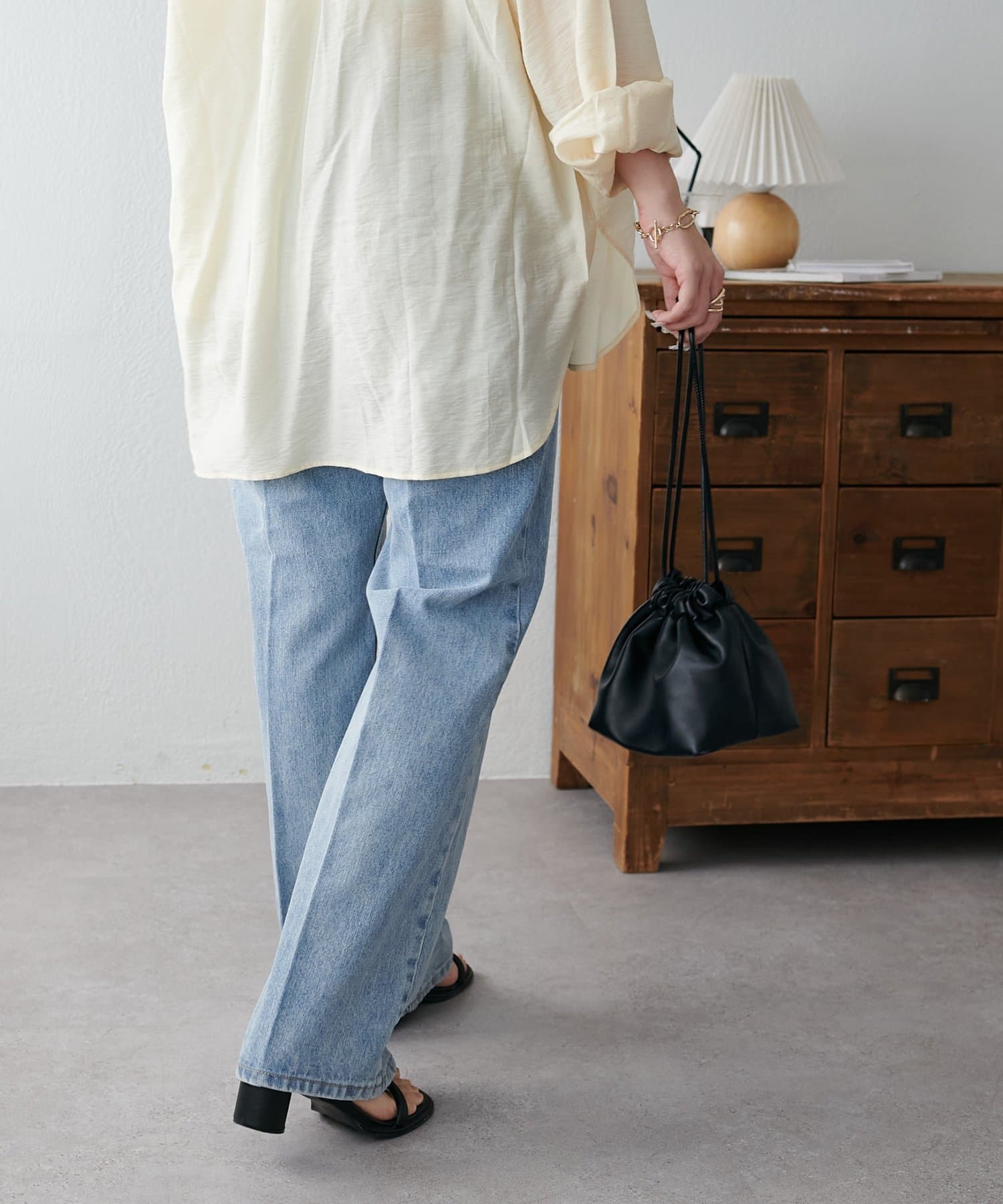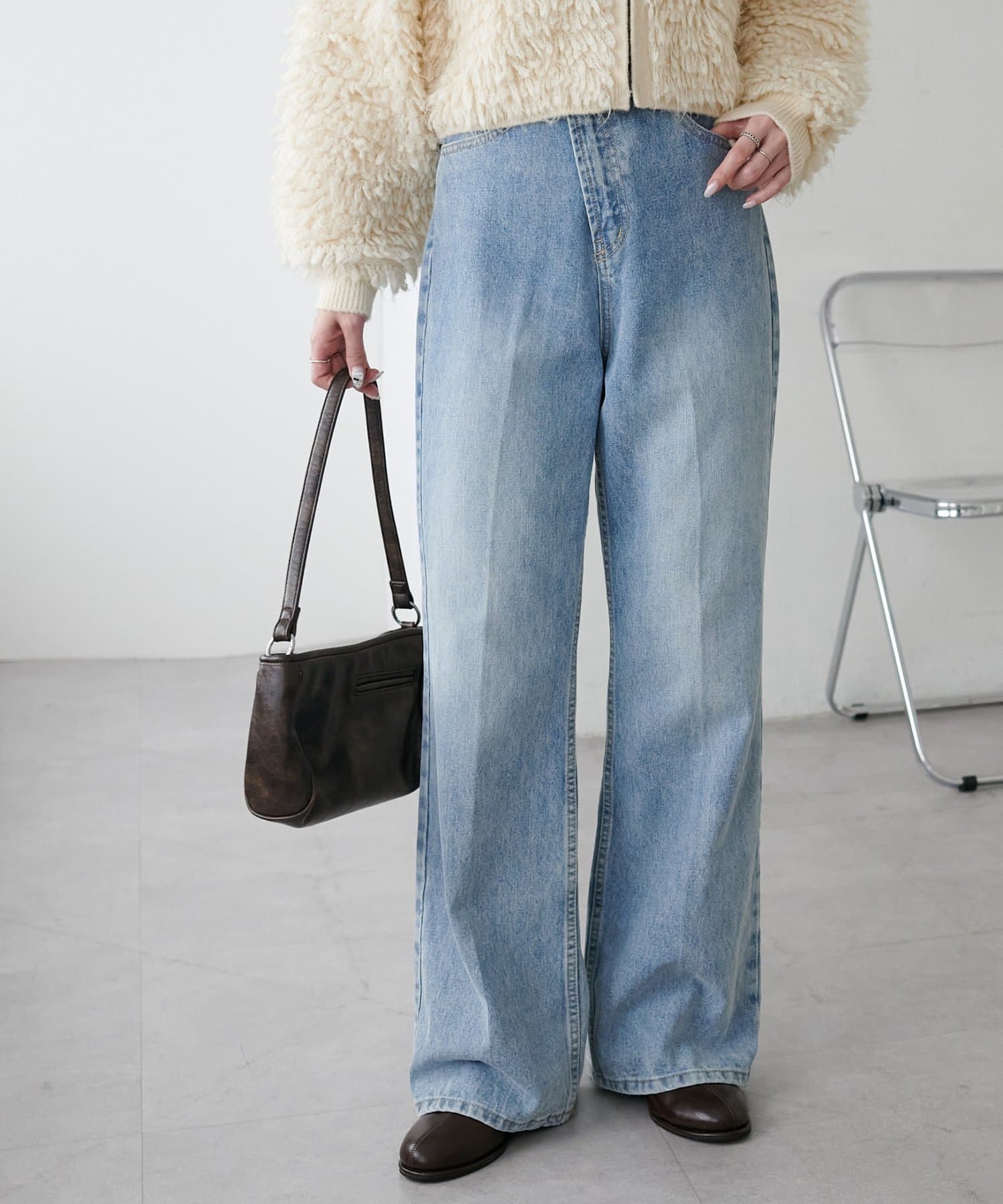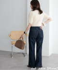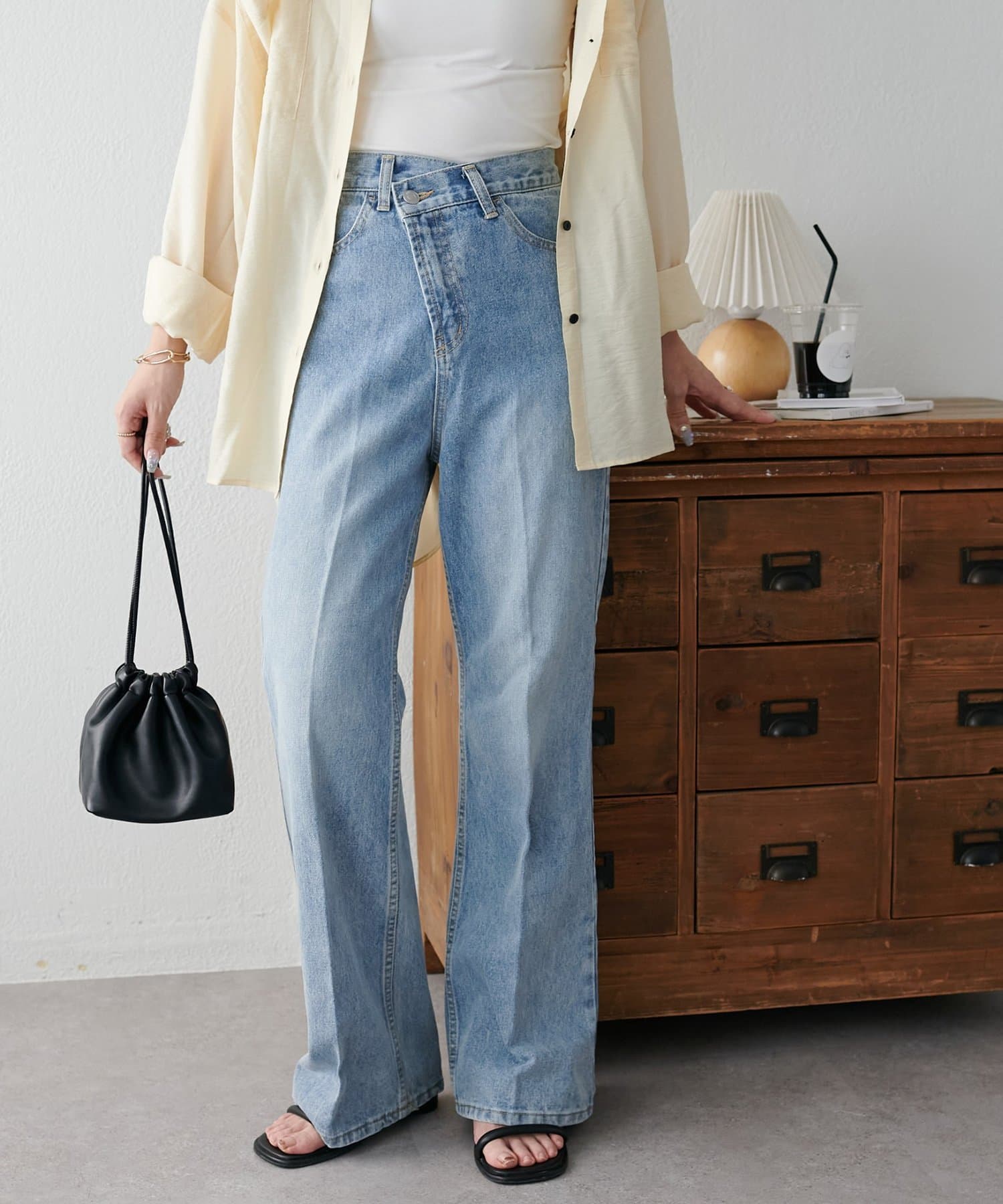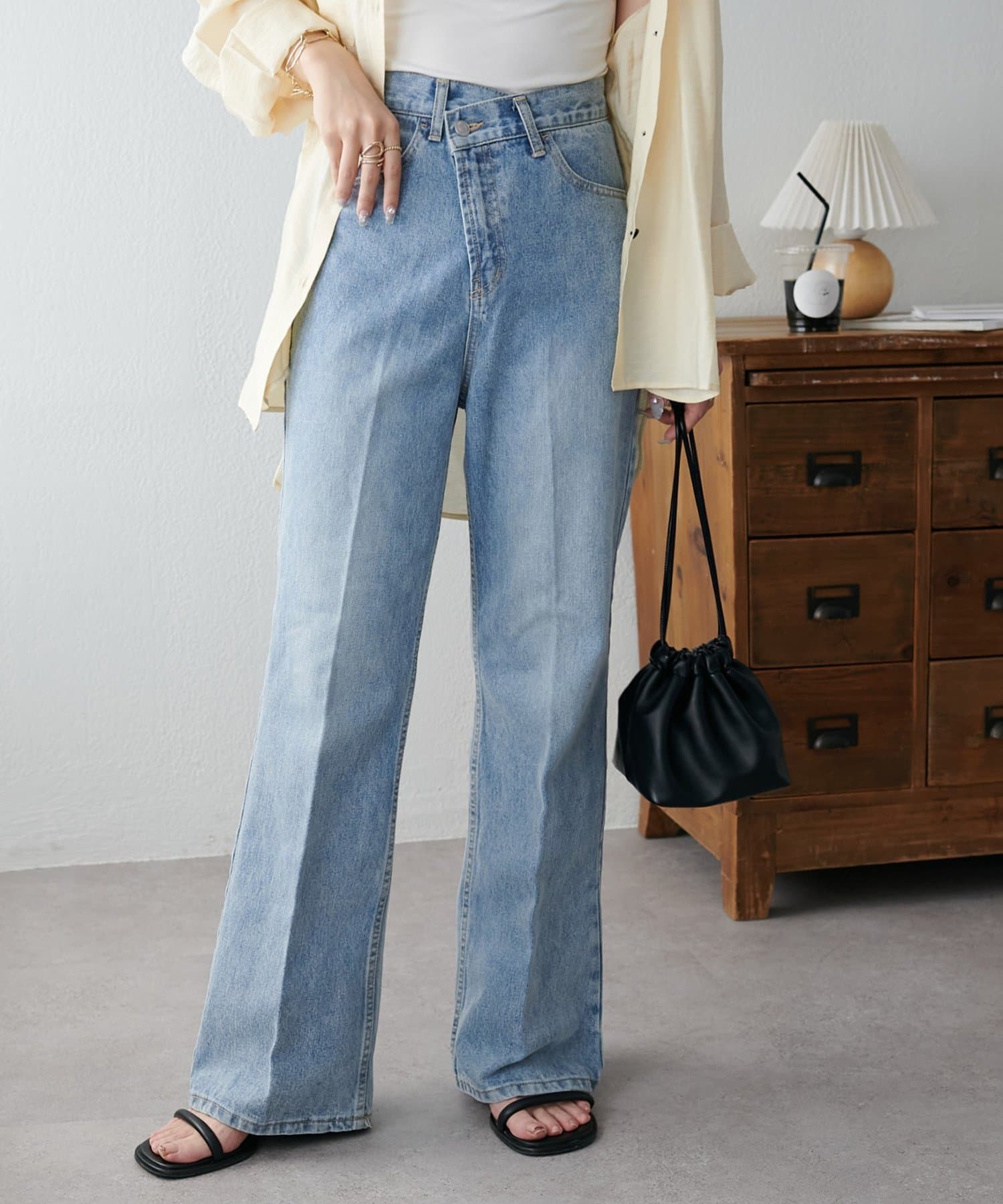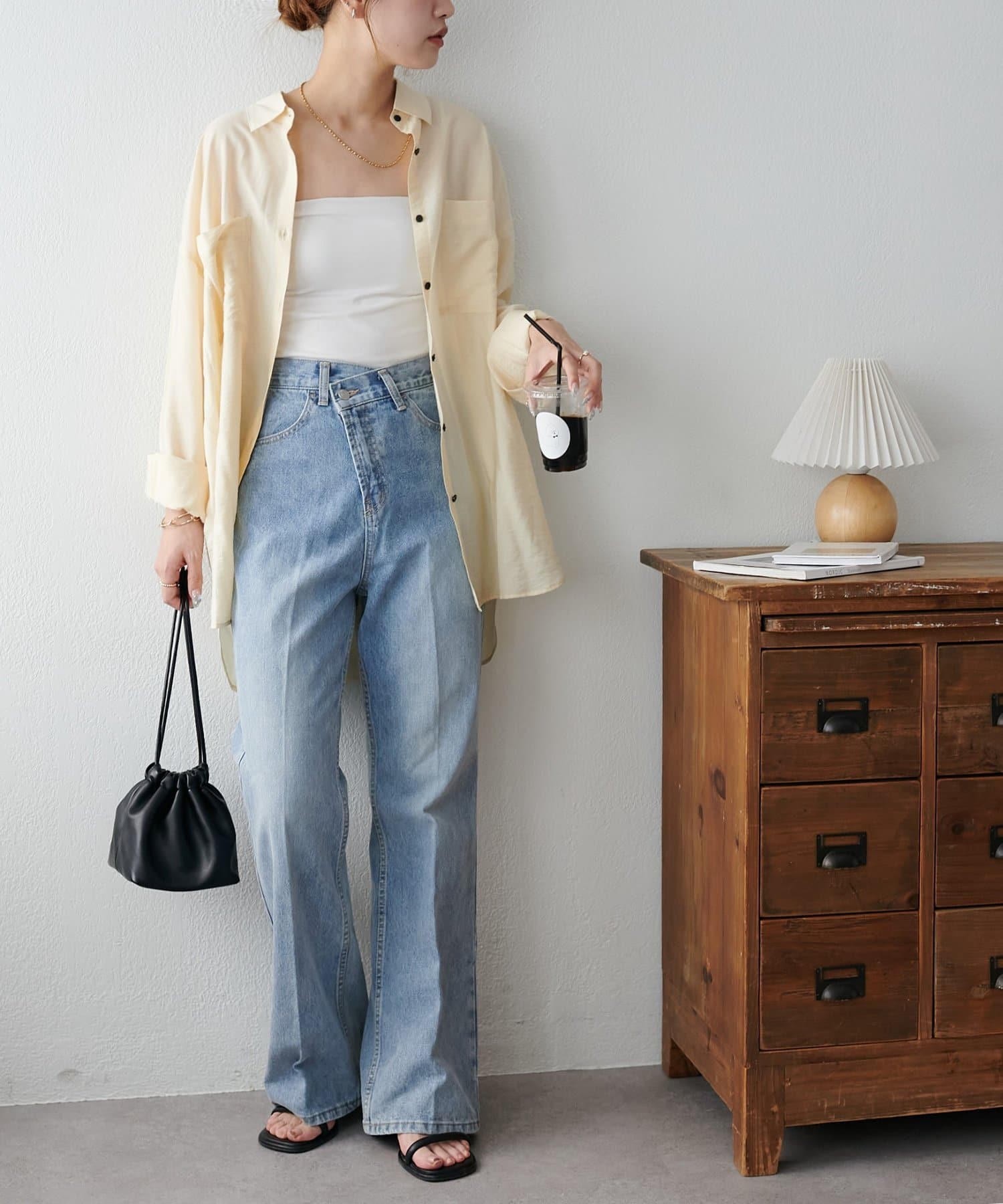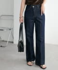 太すぎず細すぎない絶妙なラインで、カジュアルになりがちなデニムも女性らしい印象に。
