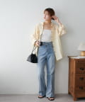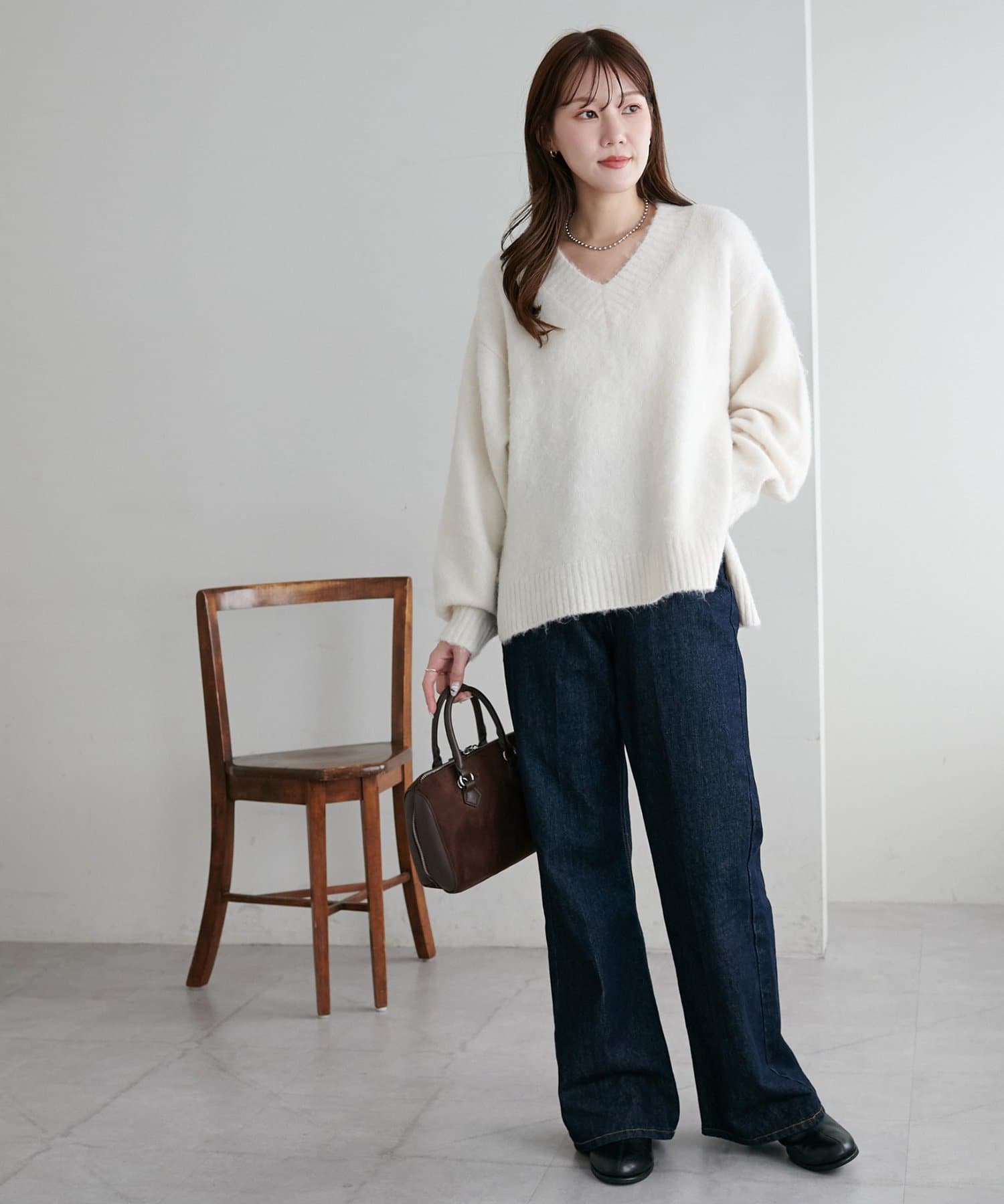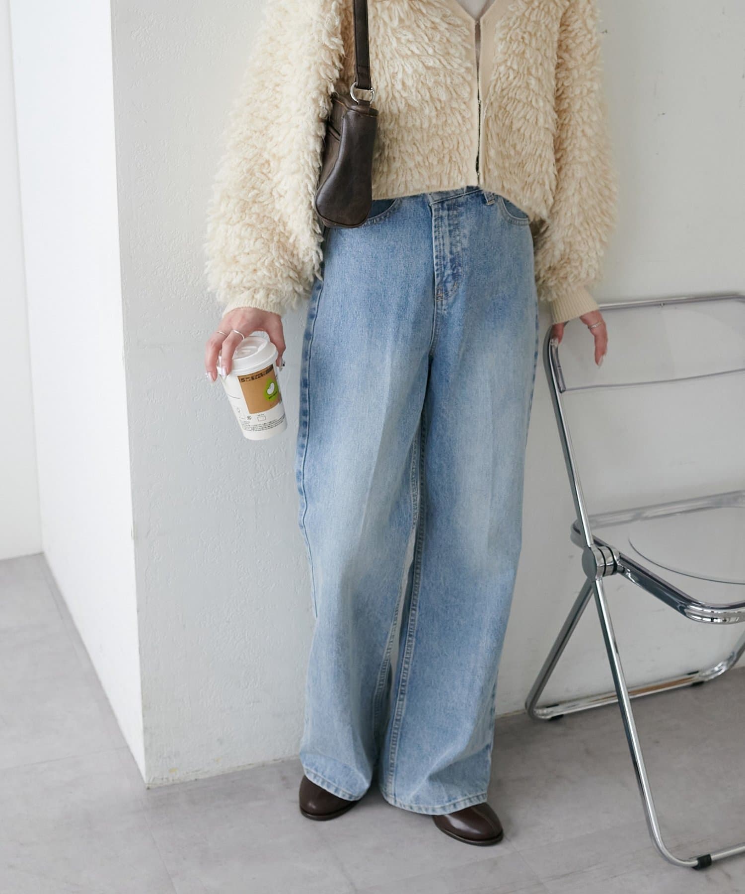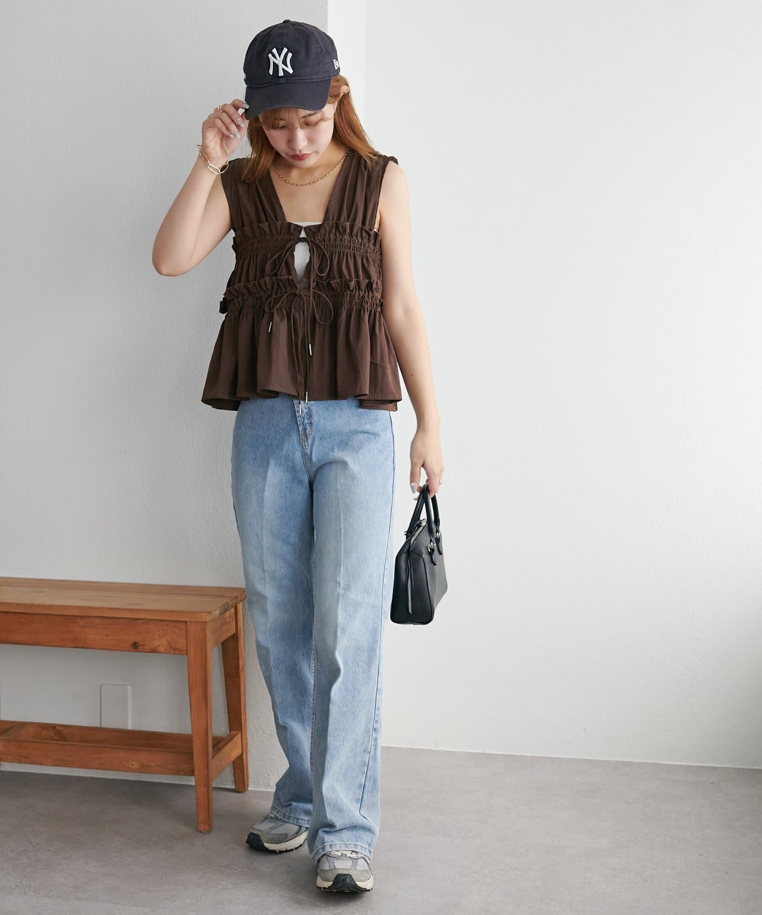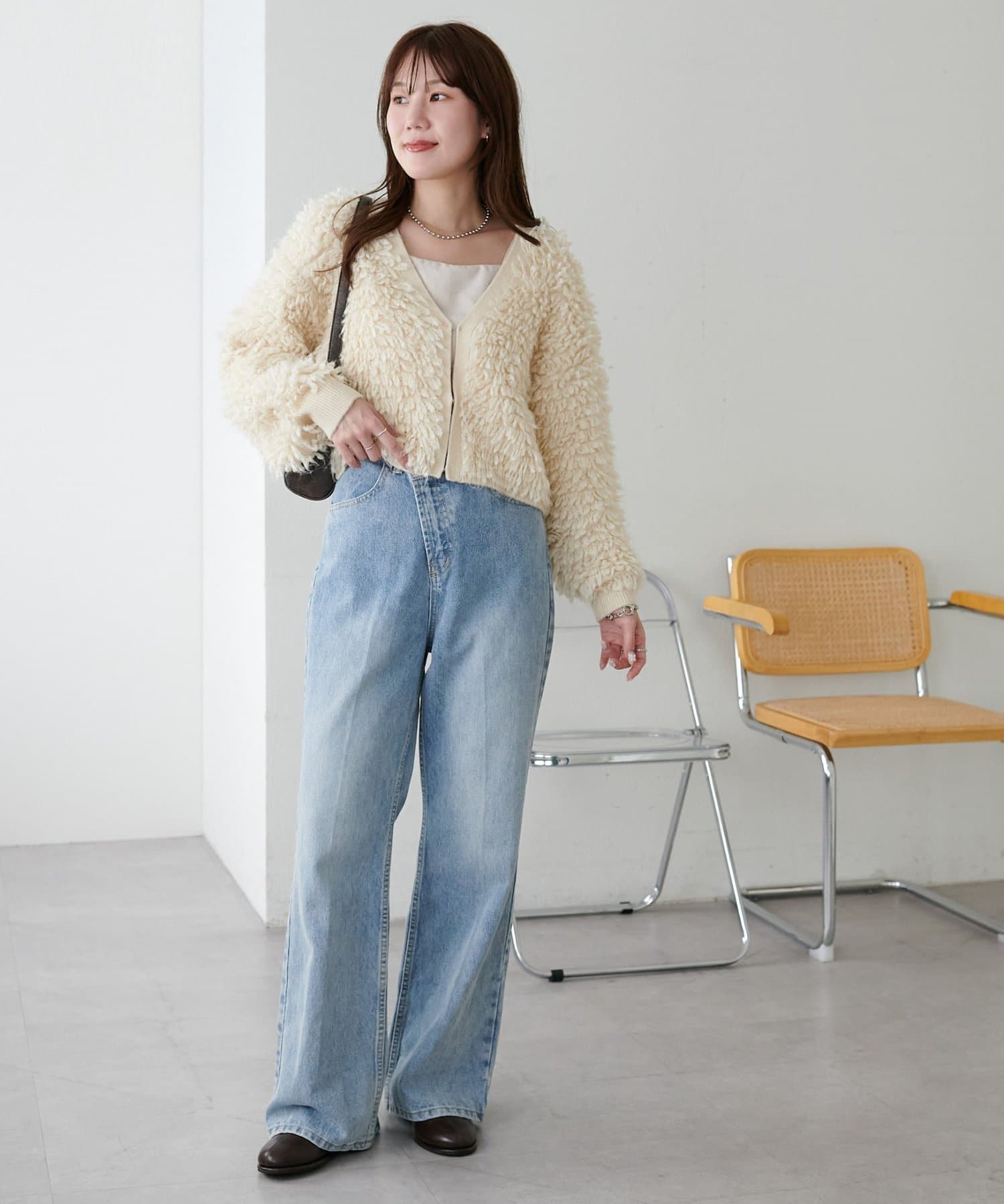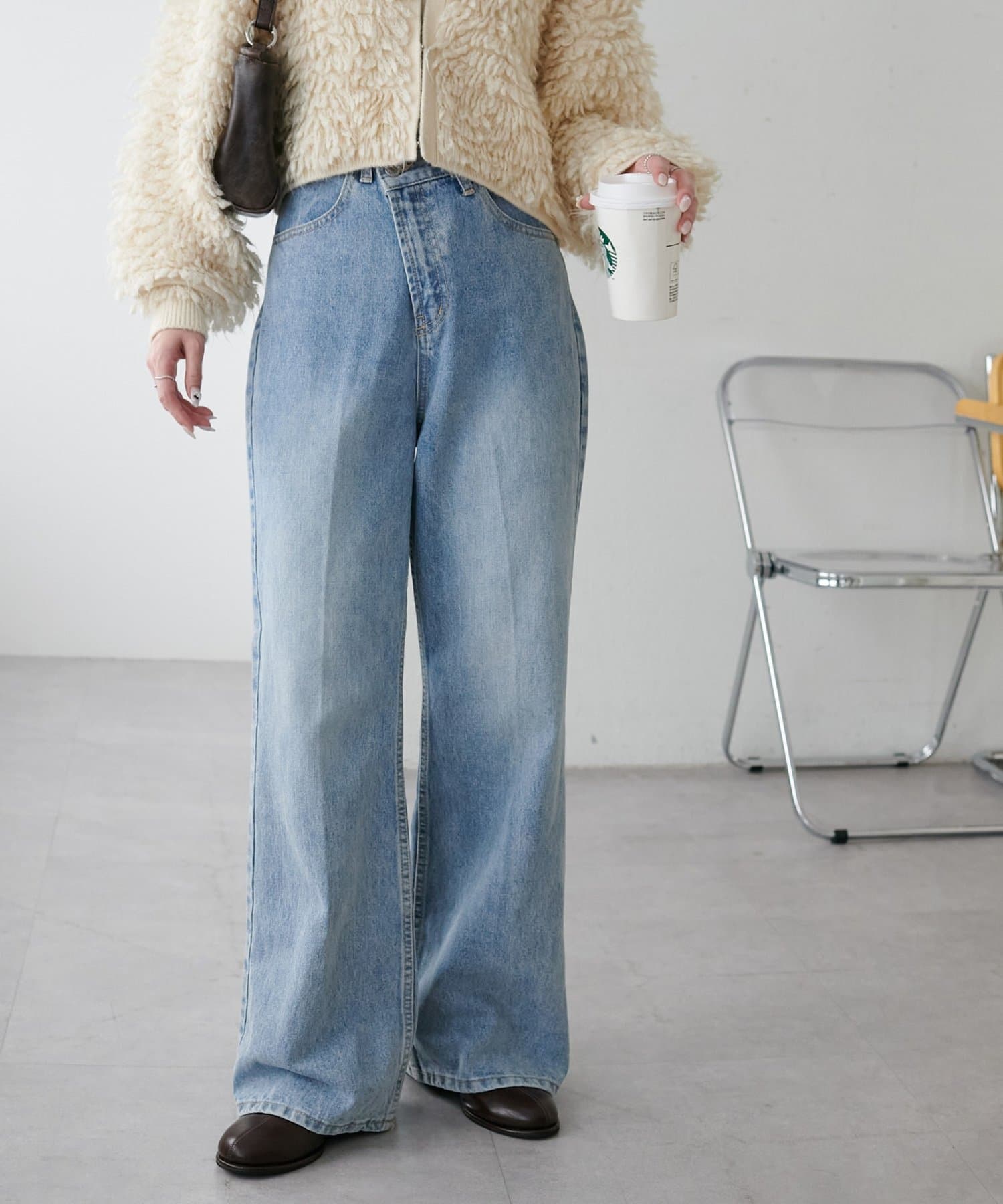 太すぎず細すぎない絶妙なラインで、カジュアルになりがちなデニムも女性らしい印象に。