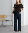 脚のラインを自然にカバーしながら、すっきり見せてくれるセミフレアシルエットが魅力。