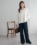 シンプルながら一癖あるデザインなので、足元はヒールでもスニーカーでもサマになり、オン・オフ問わず着回せる一本です。
