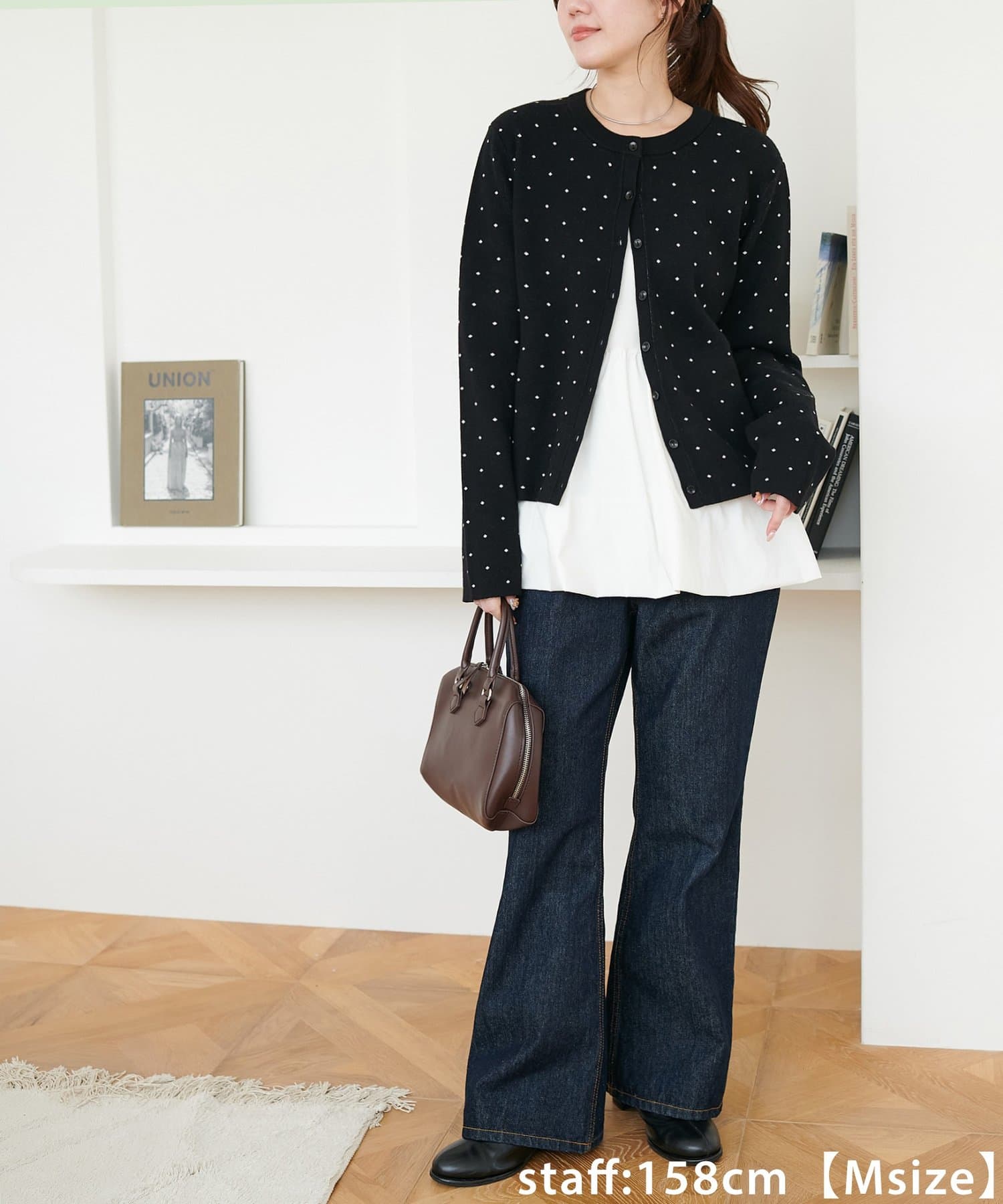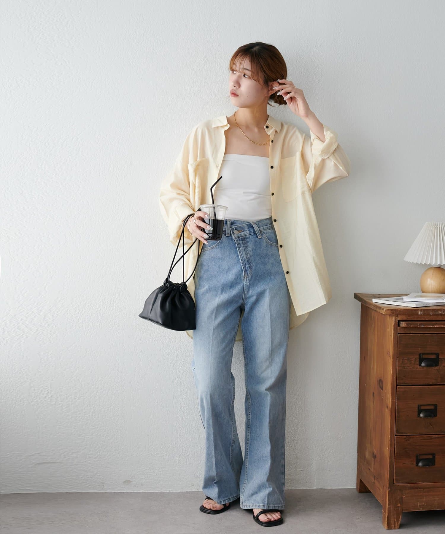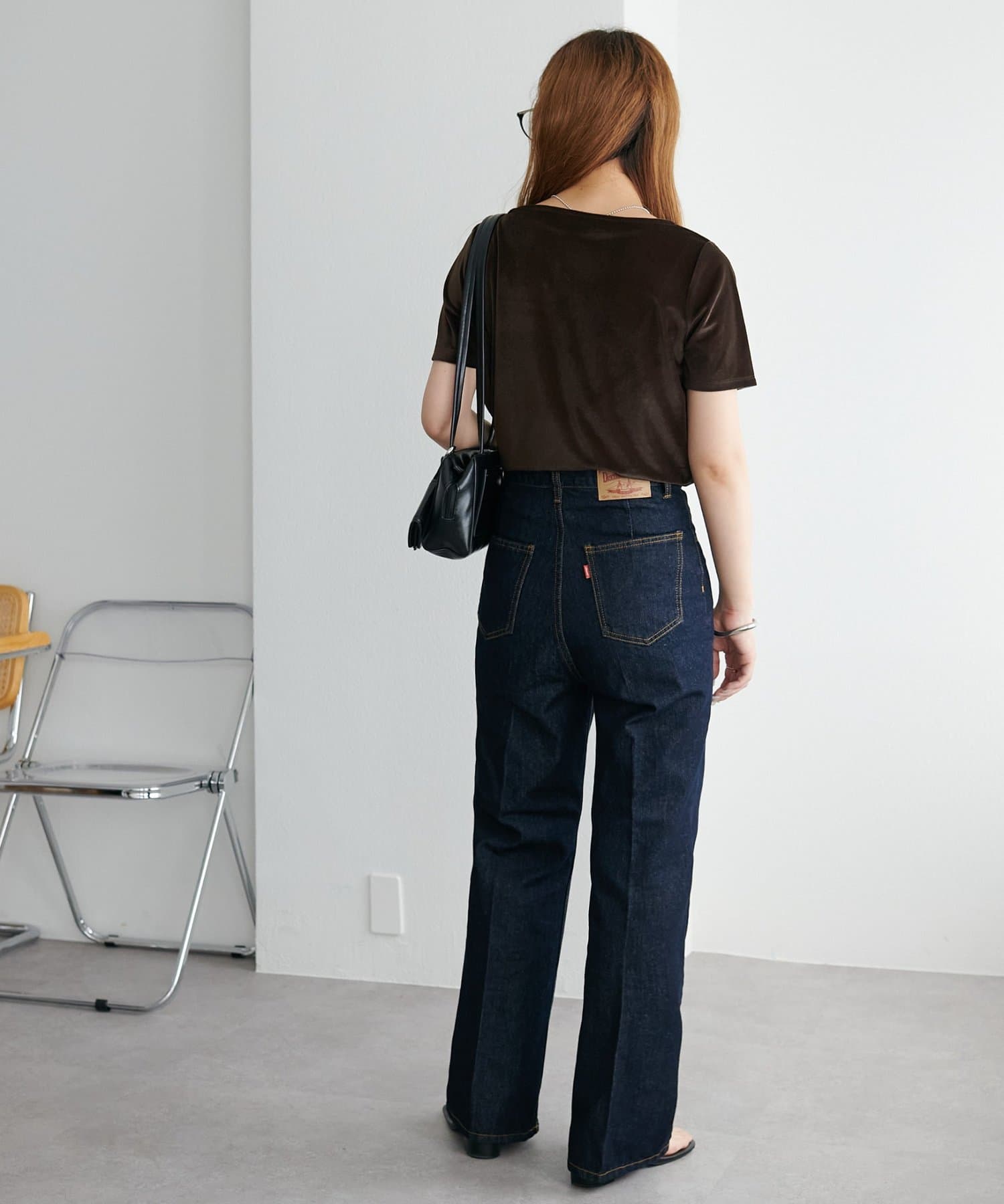 ベーシックなTシャツはもちろん、コンパクトニットやショート丈トップスとの相性も抜群です。