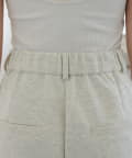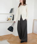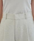 ・タックを深めに入れたことで、腰回りと太もものラインを拾わずさり気ないカバーに。