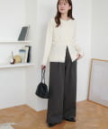 153cmスタッフ(Sサイズ着用):楽ちん&きれい見えが叶う万能パンツ!厚底シューズを合わせるとよりバランス良くスタイルアップできるのでおすすめ。