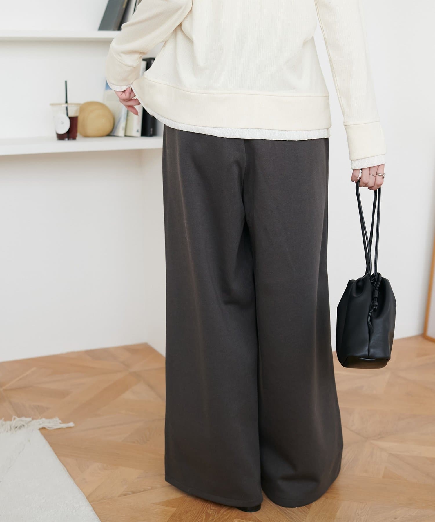 見た目は綺麗めパンツだけど、スウェット生地で楽な着心地なのがめちゃくちゃいいです〜!