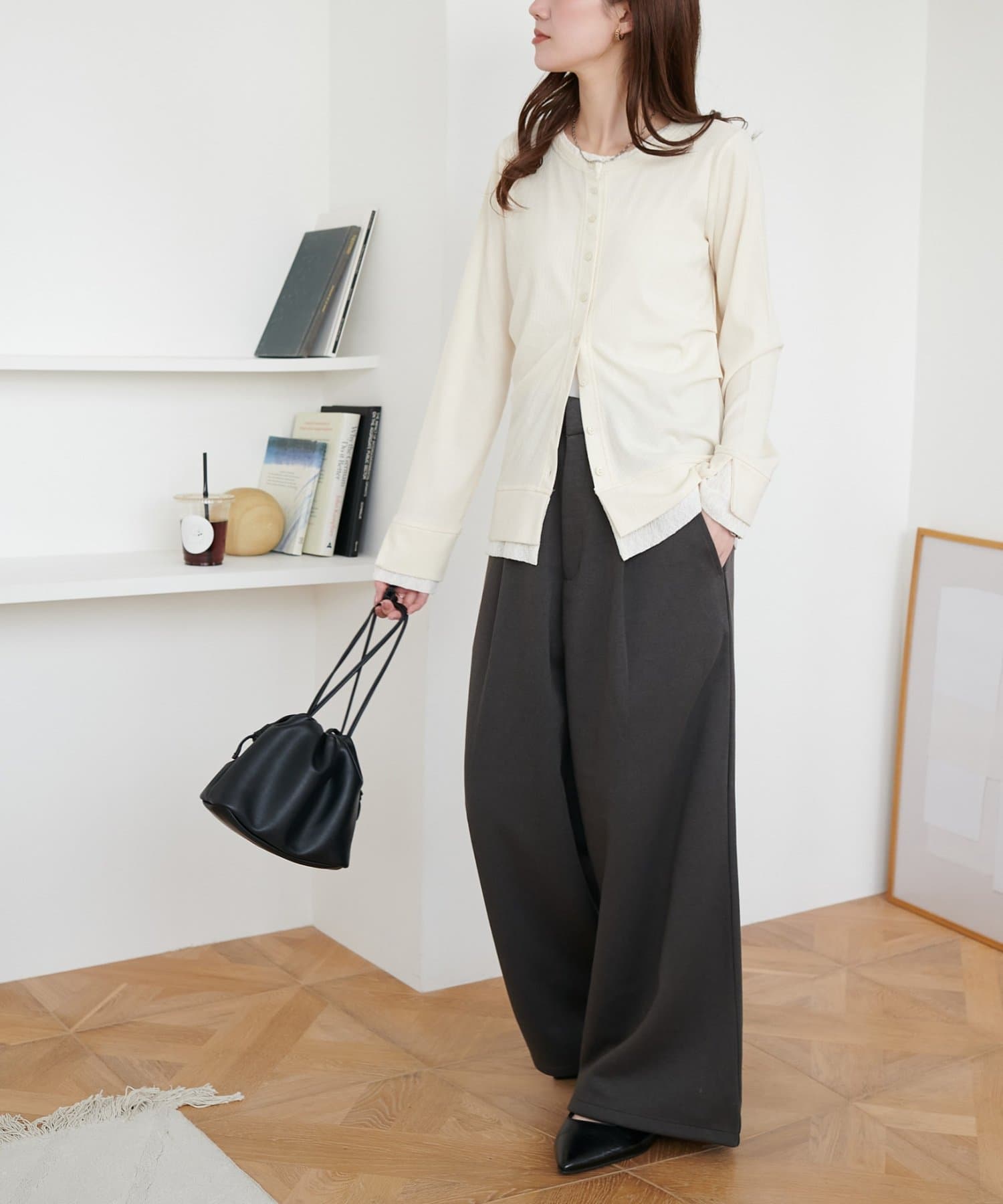 購入場所:パルクローゼット以前から気になってたけど、パンツ苦手意識ありで避けてましたが、楽そうなのと部屋着感が出ないと噂なので挑戦してみました。