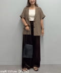 153cmスタッフ(Sサイズ着用):ペタンコの靴を合わせると裾に少したまるほどの長さです。