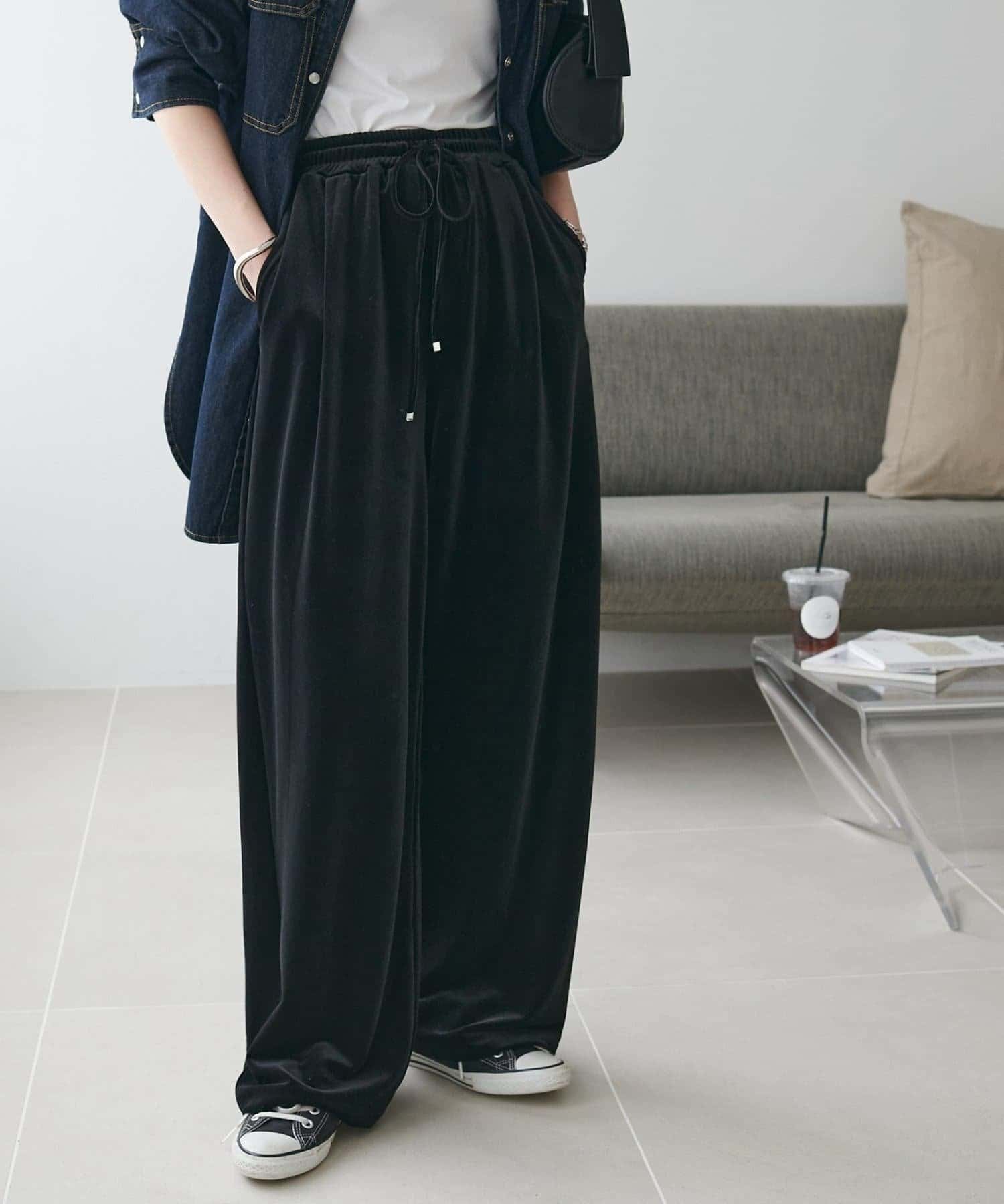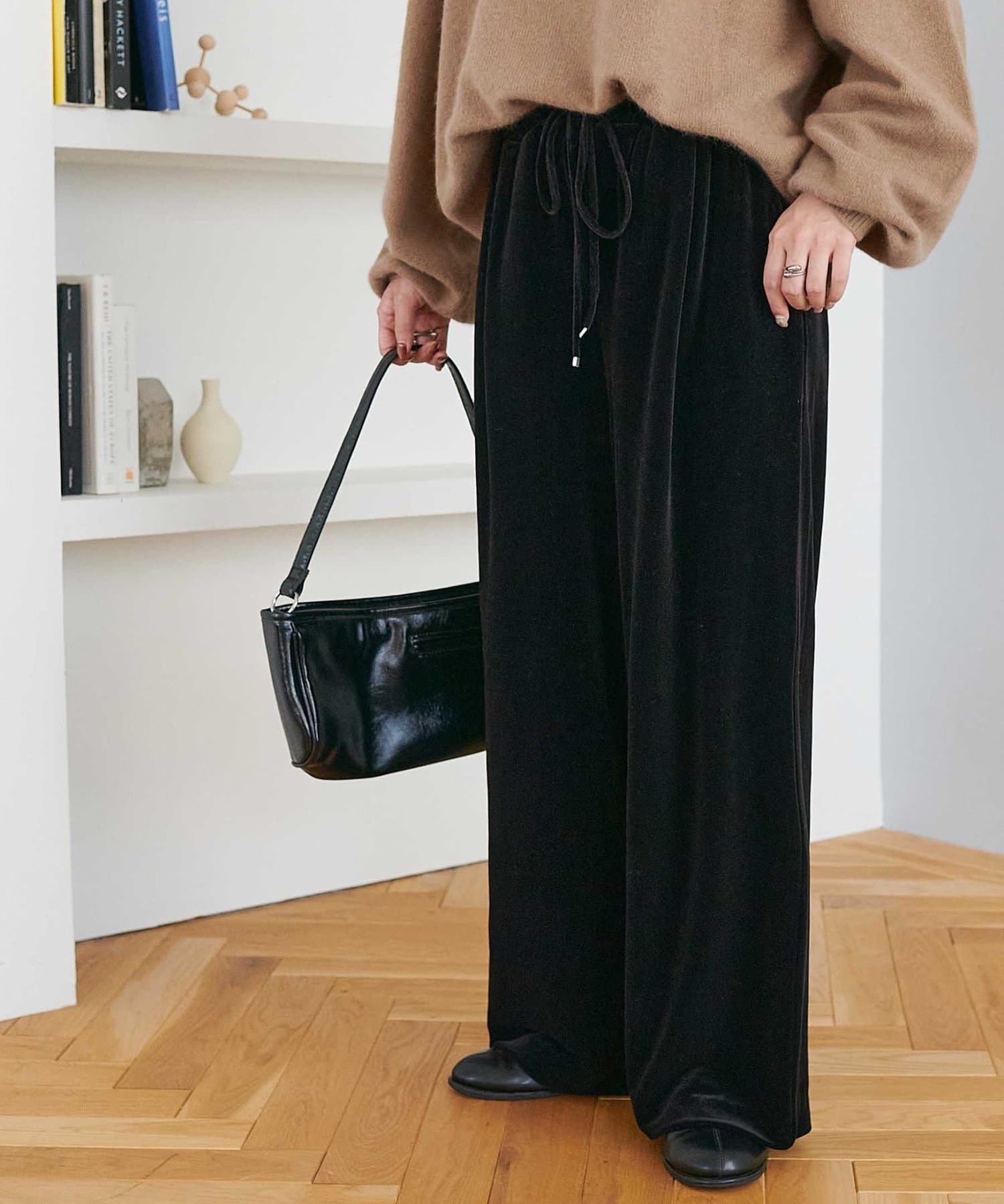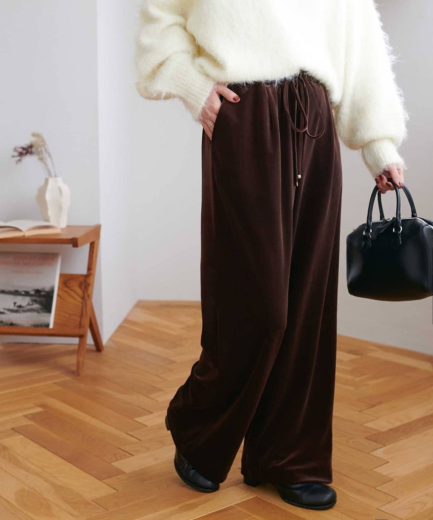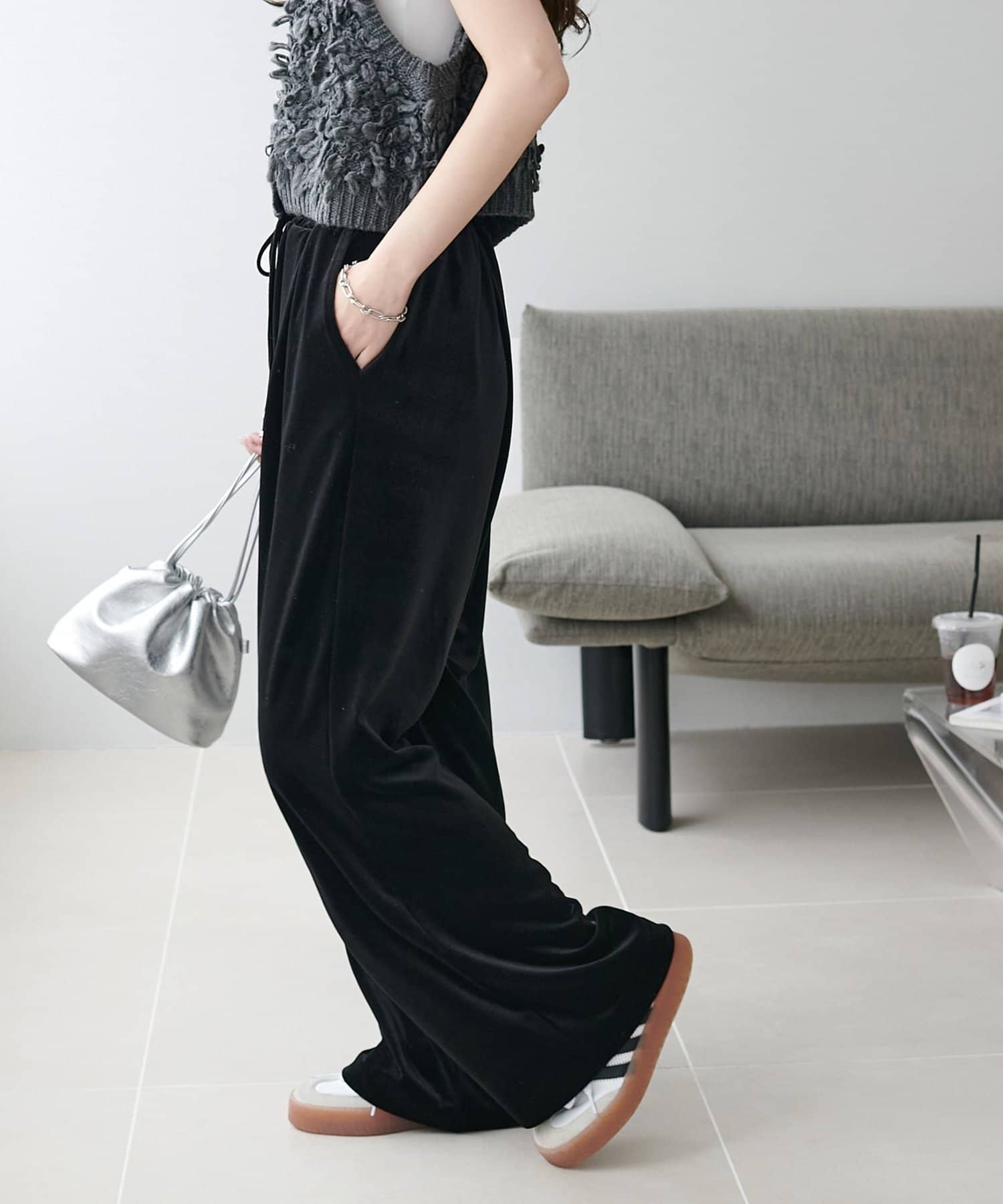 リラックス感のあるシルエットが魅力のベロアワイドパンツ