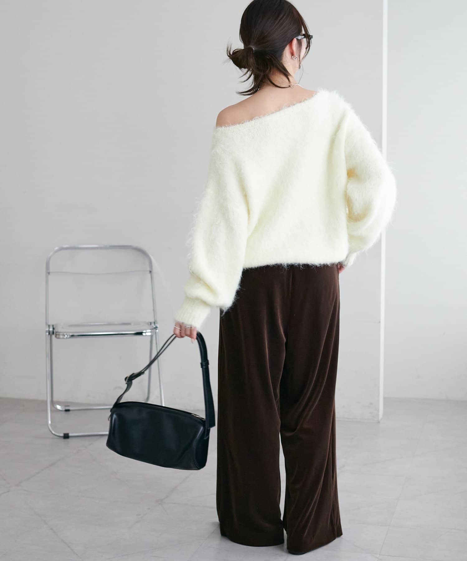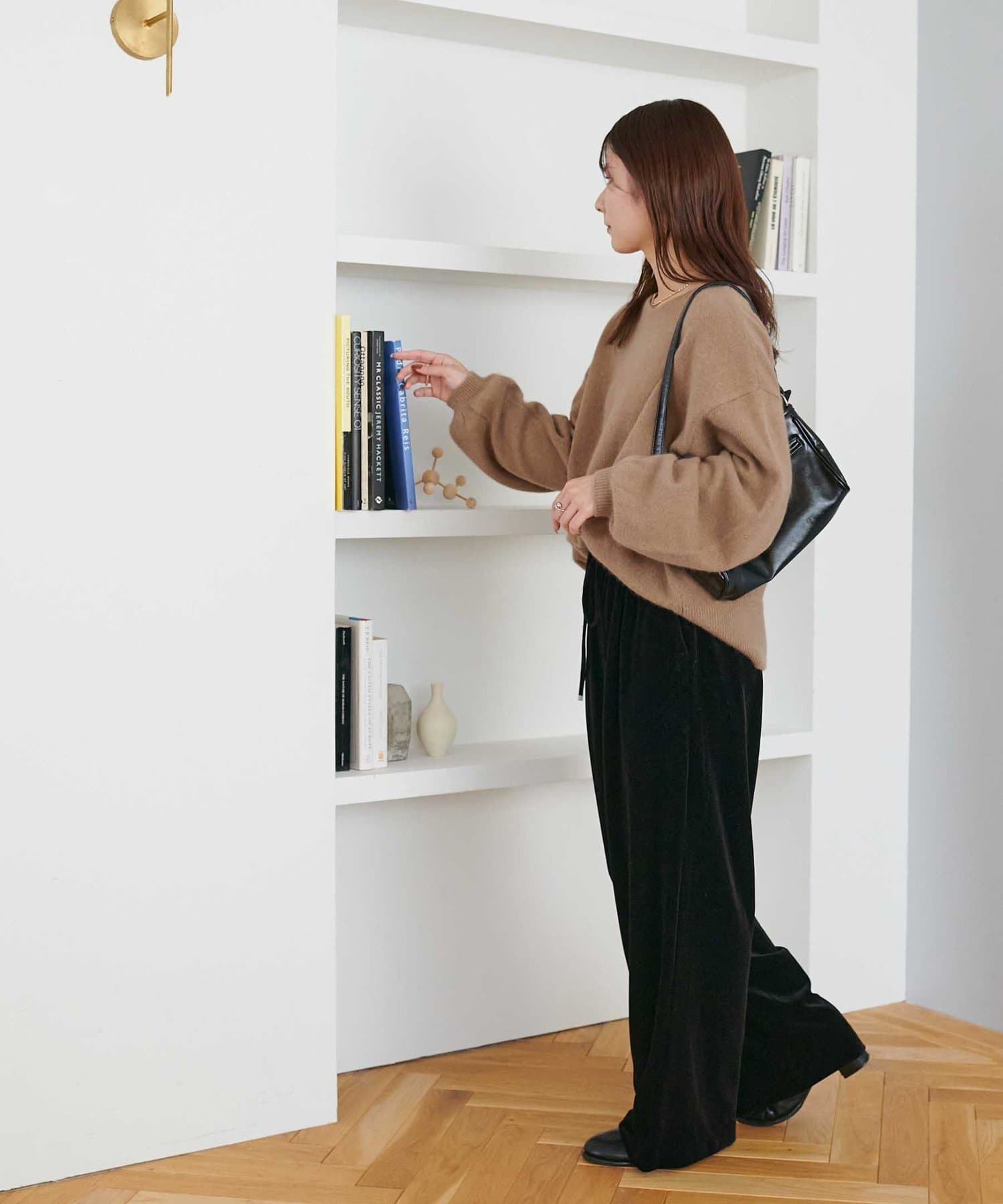 デイリーに取り入れやすいベーシックなデザインながら、ベロア素材ならではの程よい光沢感がスタイリングにこなれた雰囲気をプラスしてくれます◎