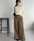・デニムやワイドパンツに合わせて、肩を落としたオフショルダーで抜け感を出した大人のリラックスコーデ