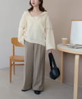 首元はVネックデザインで顔まわりをすっきり見せつつ、インナーとのレイヤードも楽しめます!