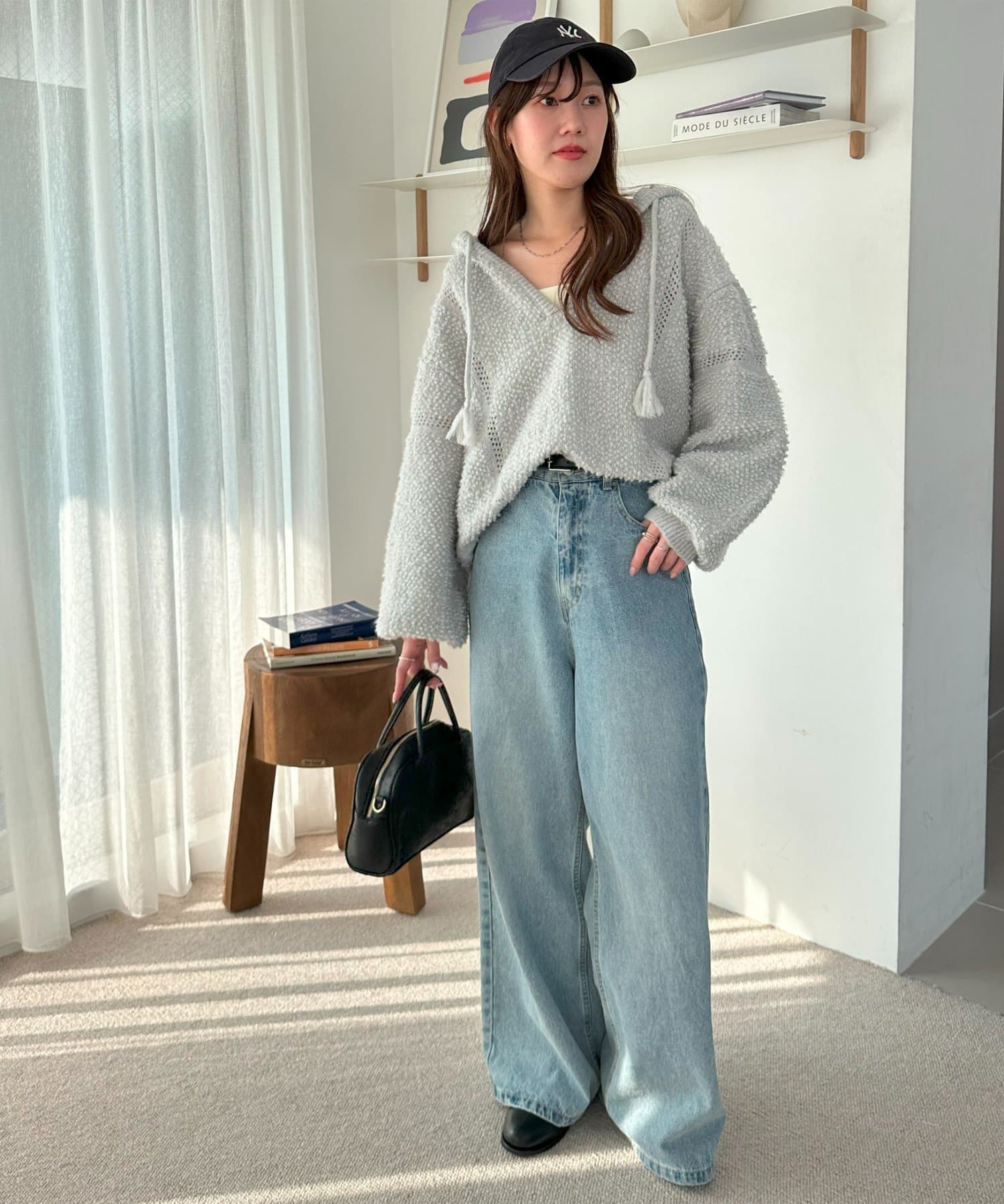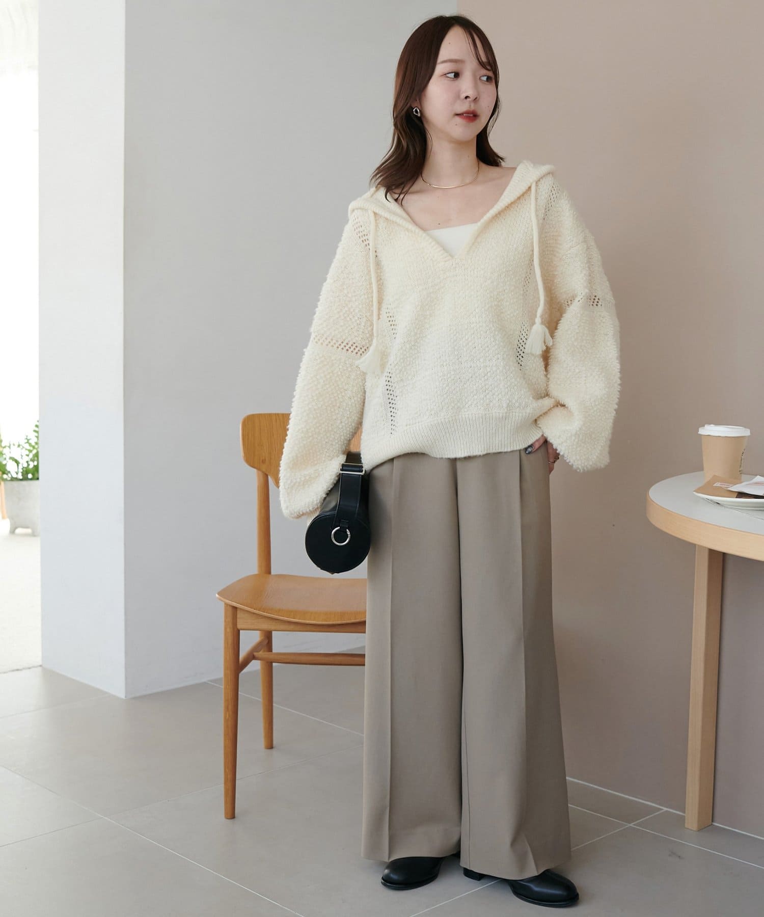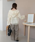 ややゆとりのあるシルエットに加え、ドロップショルダーとふんわりとした袖のボリュームが、リラックス感を演出します。