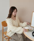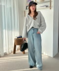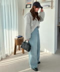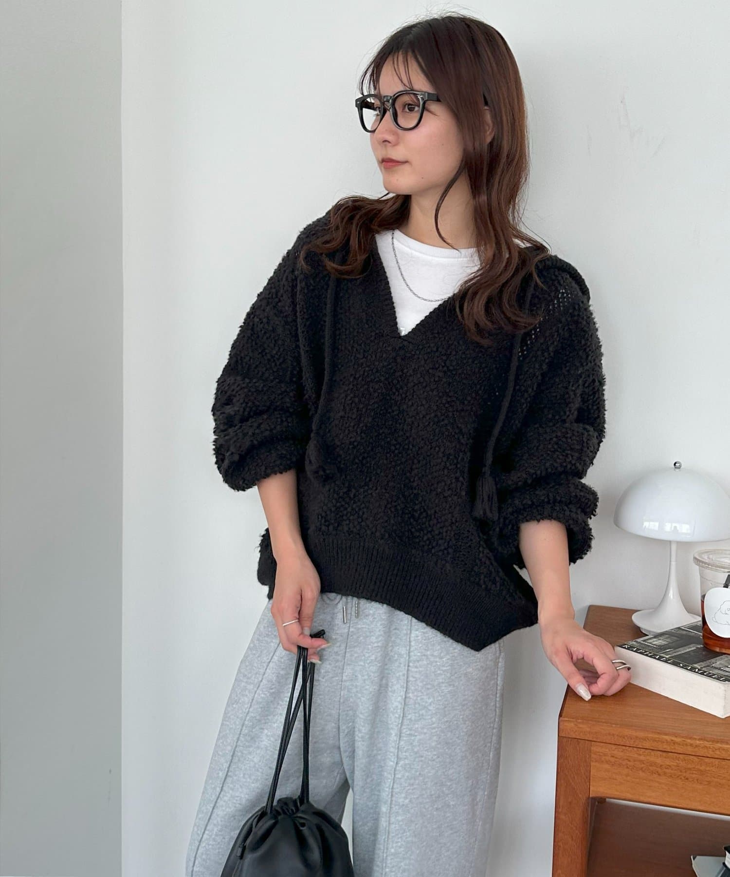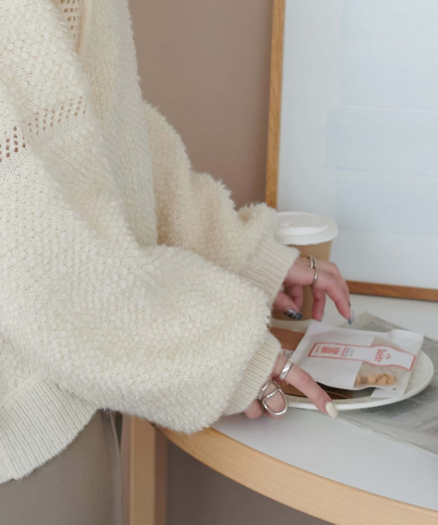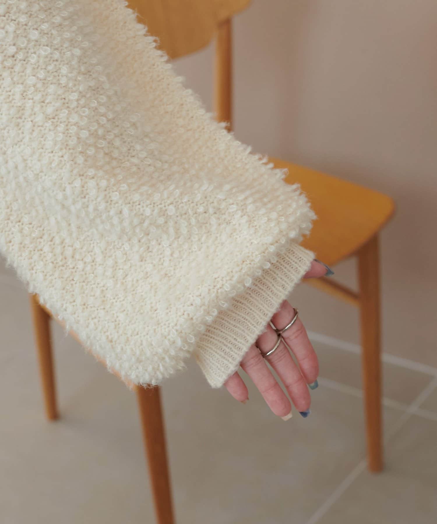 162cmスタッフ:もこもことした表情が可愛くて、着るだけで季節感が出ます♪Vネックのおかげで顔まわりがすっきり見えて、ボリュームのあるシルエットもバランスよく着こなせました。