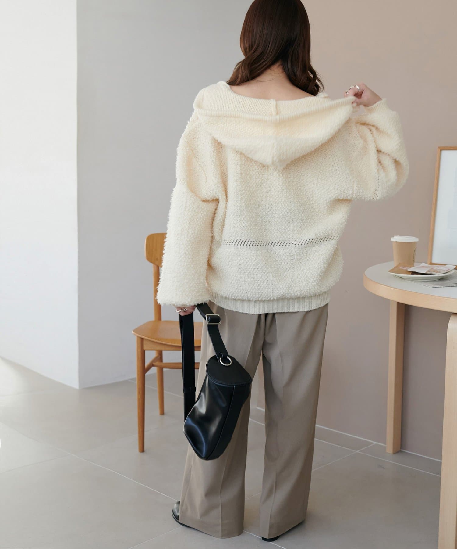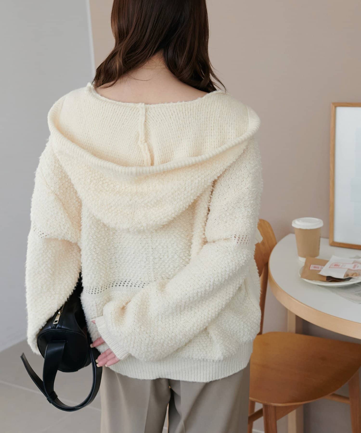 ふんわり柔らか、ぬくもり感じるループヤーンフードプルオーバー