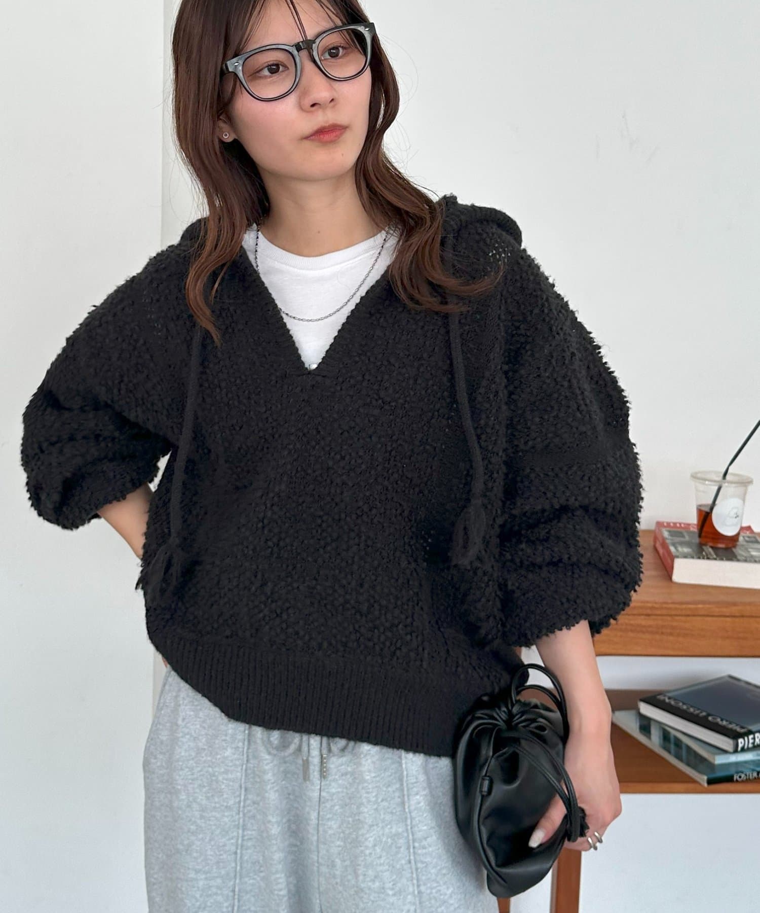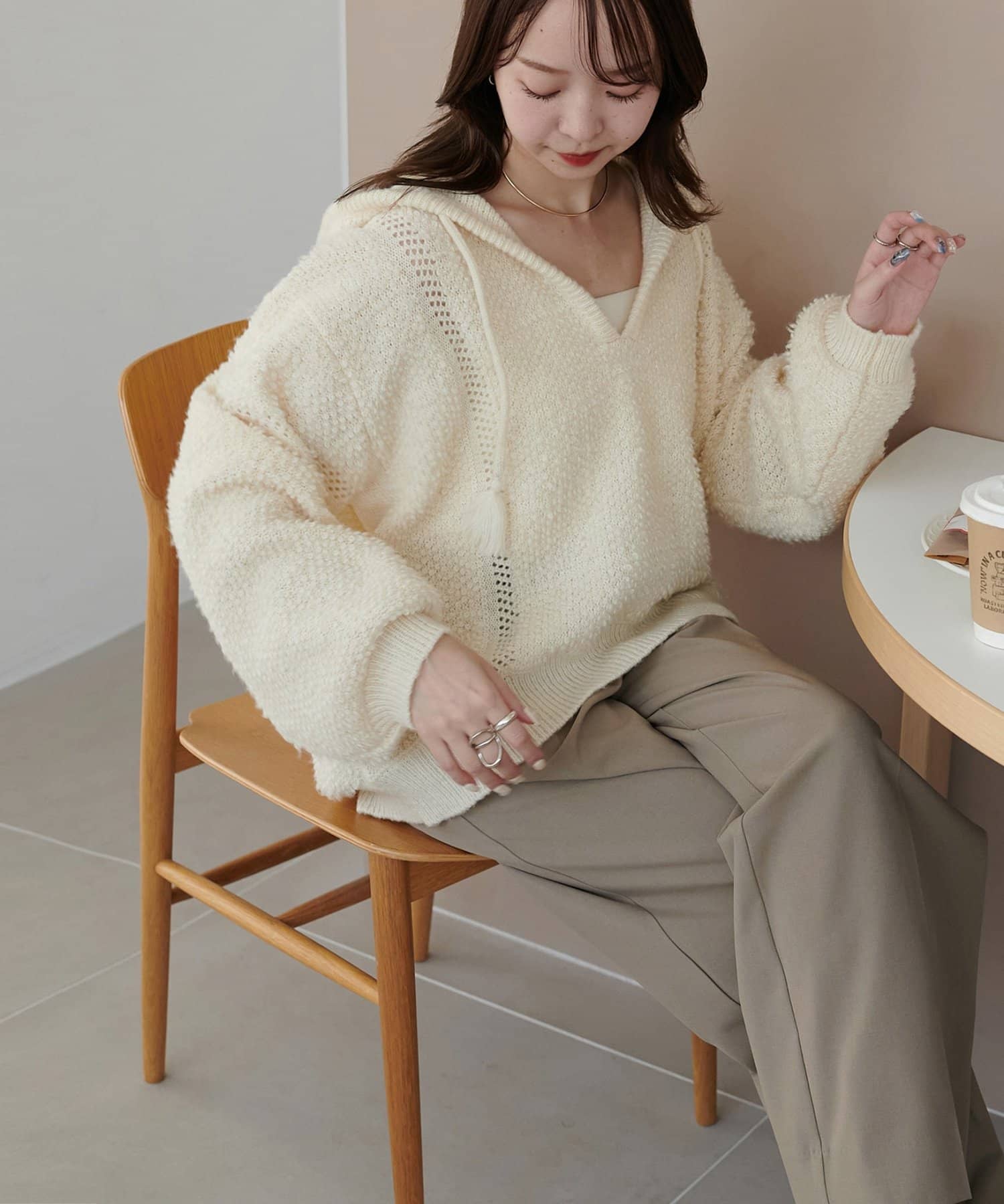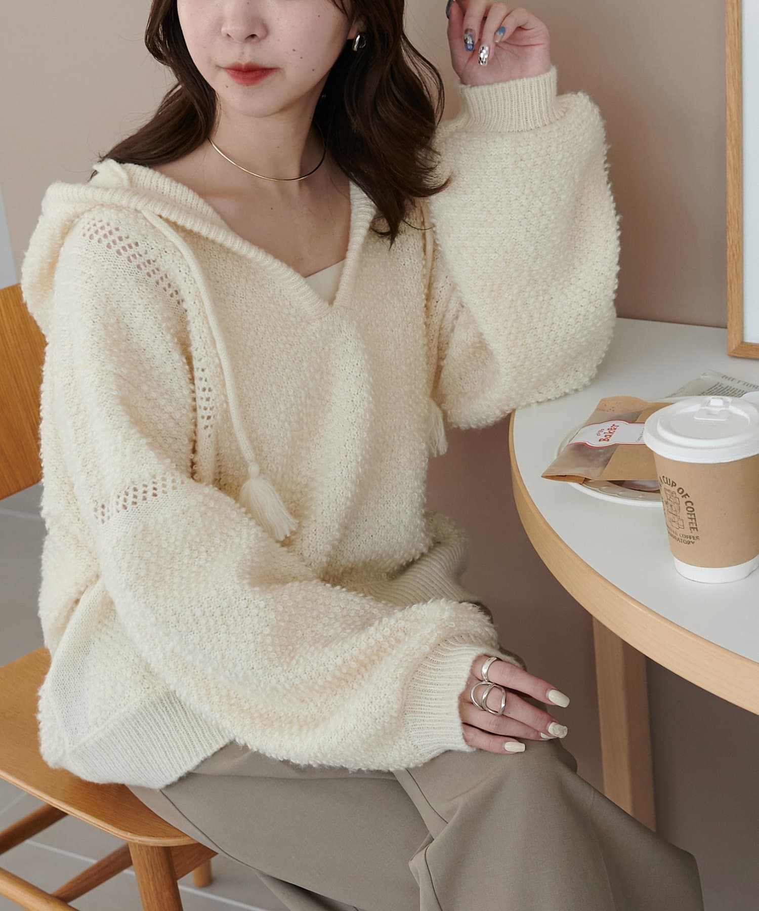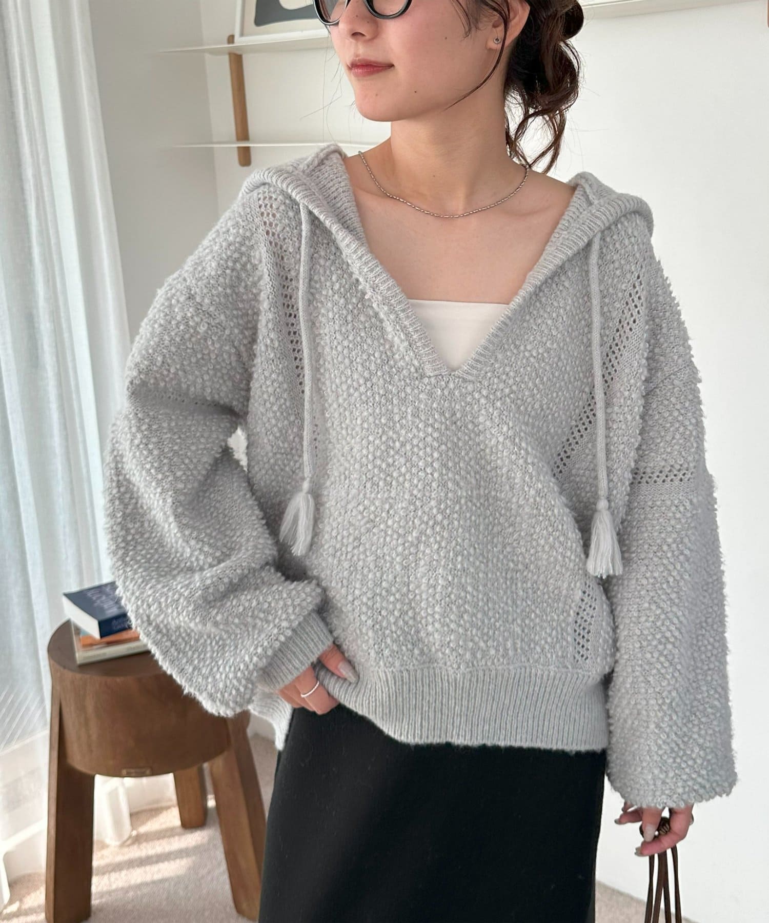 ループヤーンフードプルオーバー