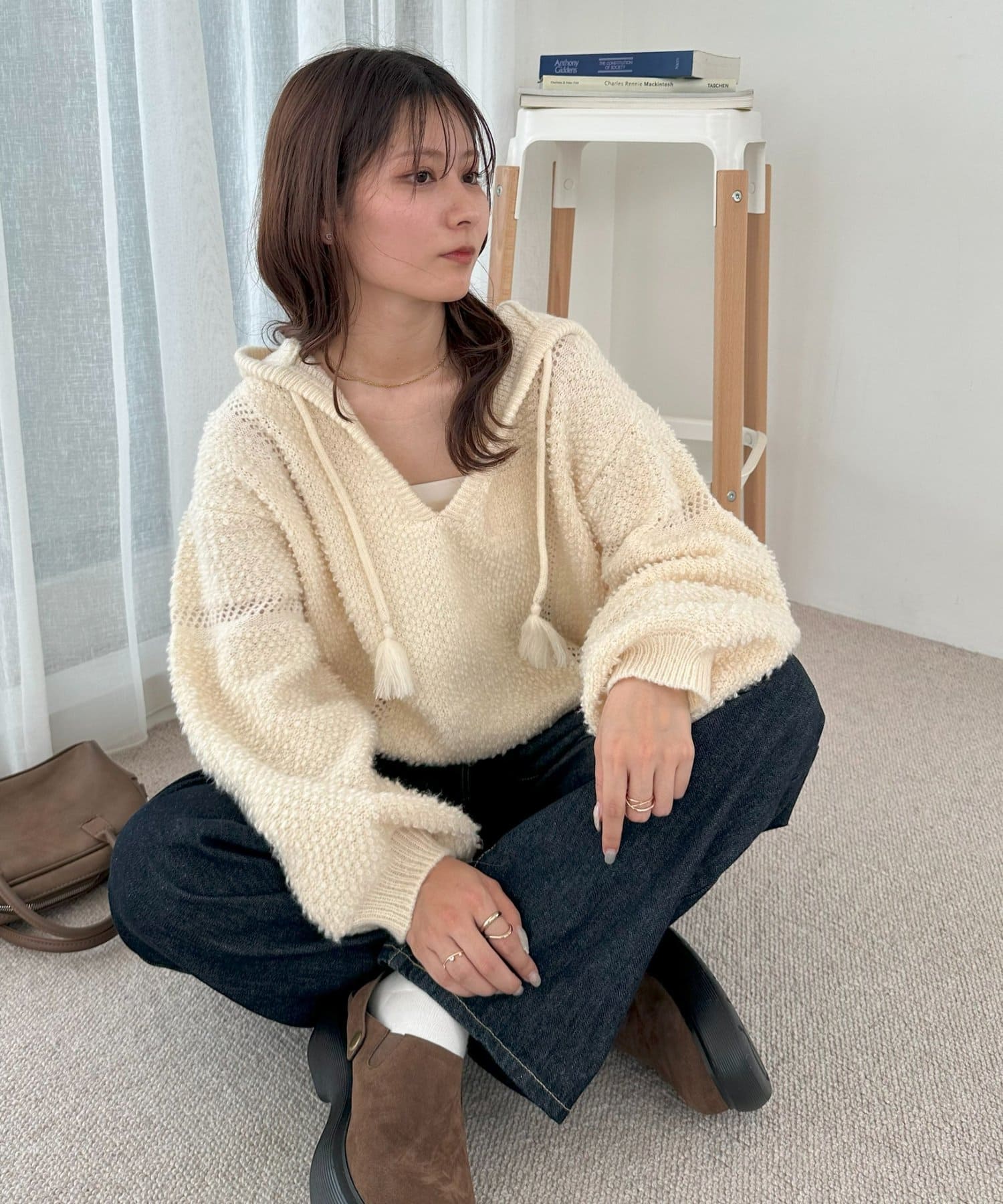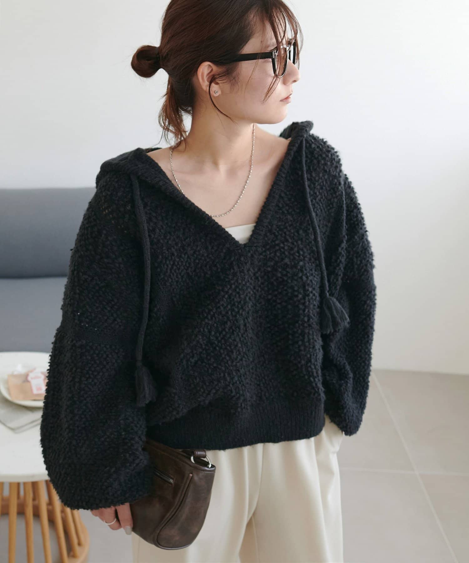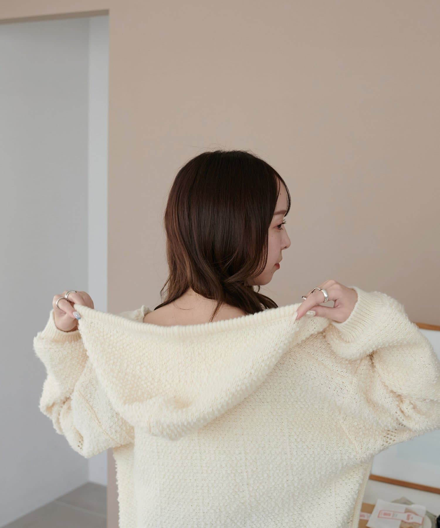 ループヤーンフードプルオーバー