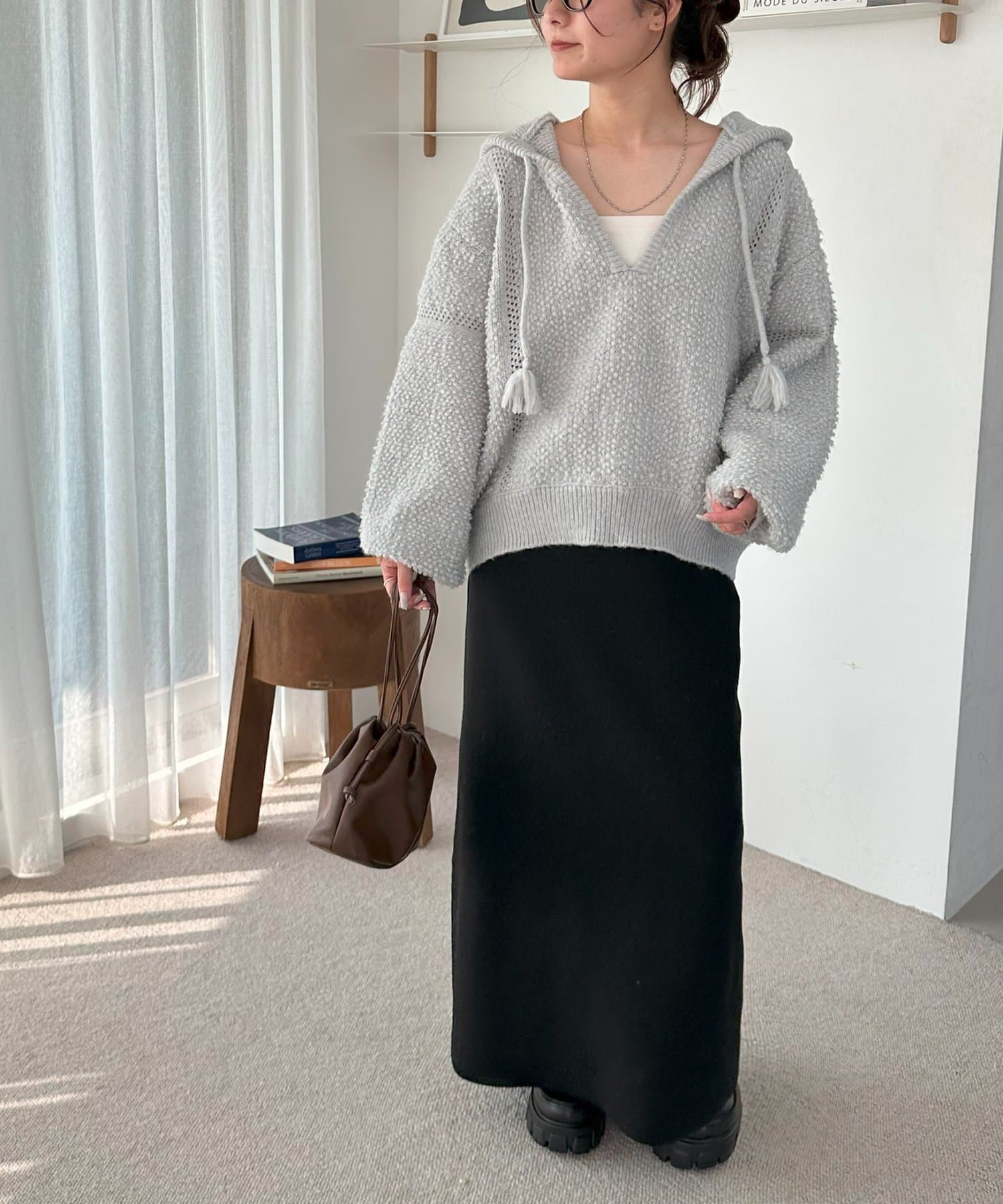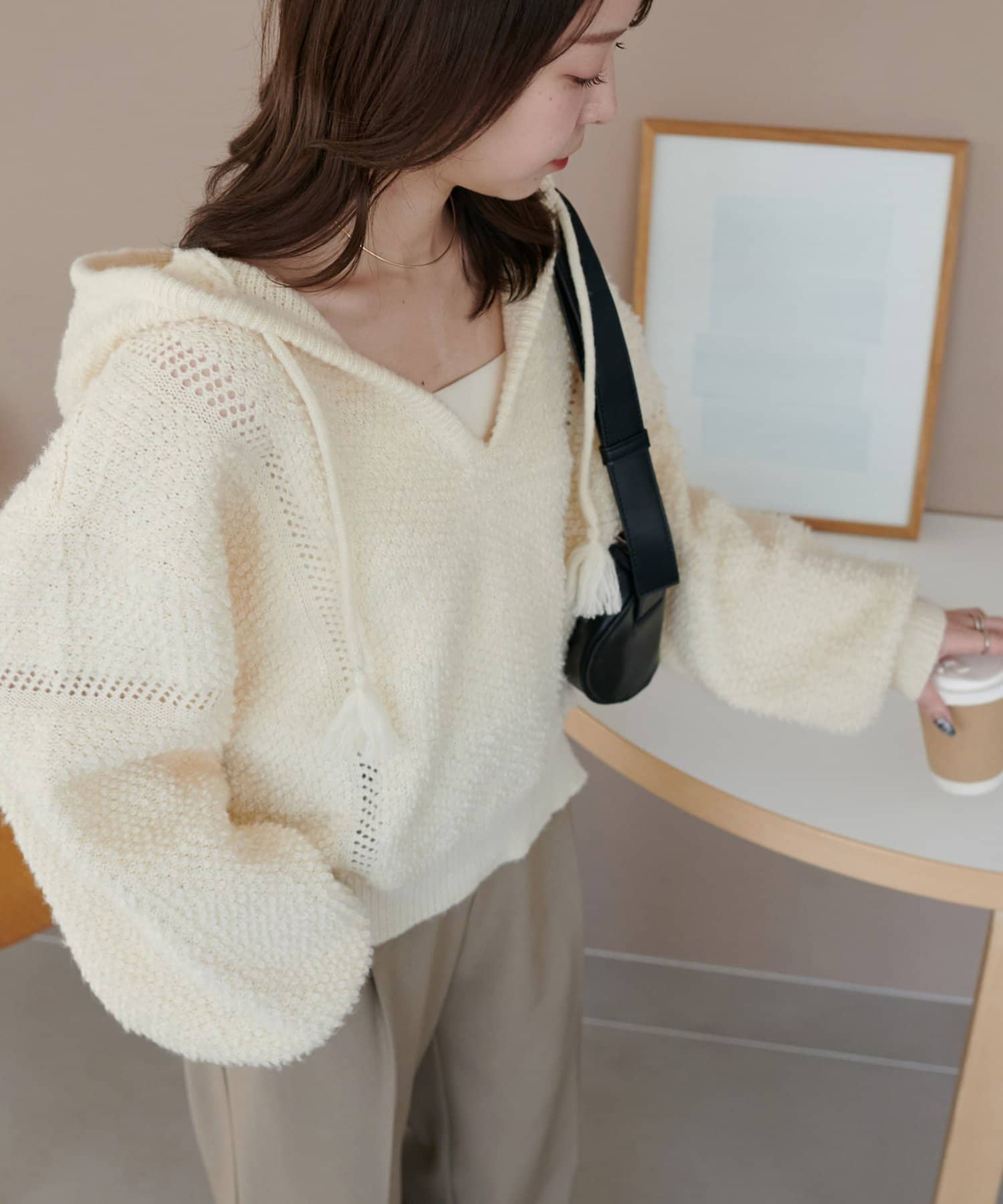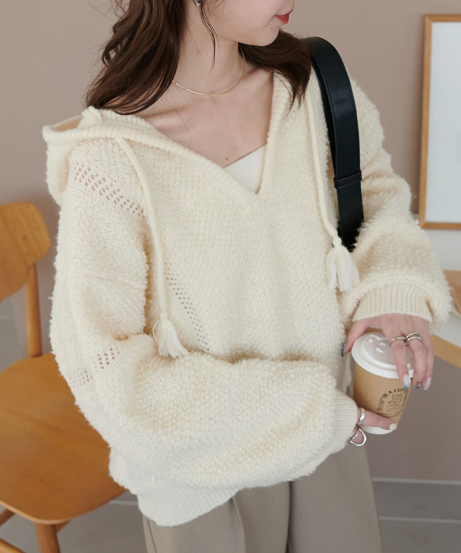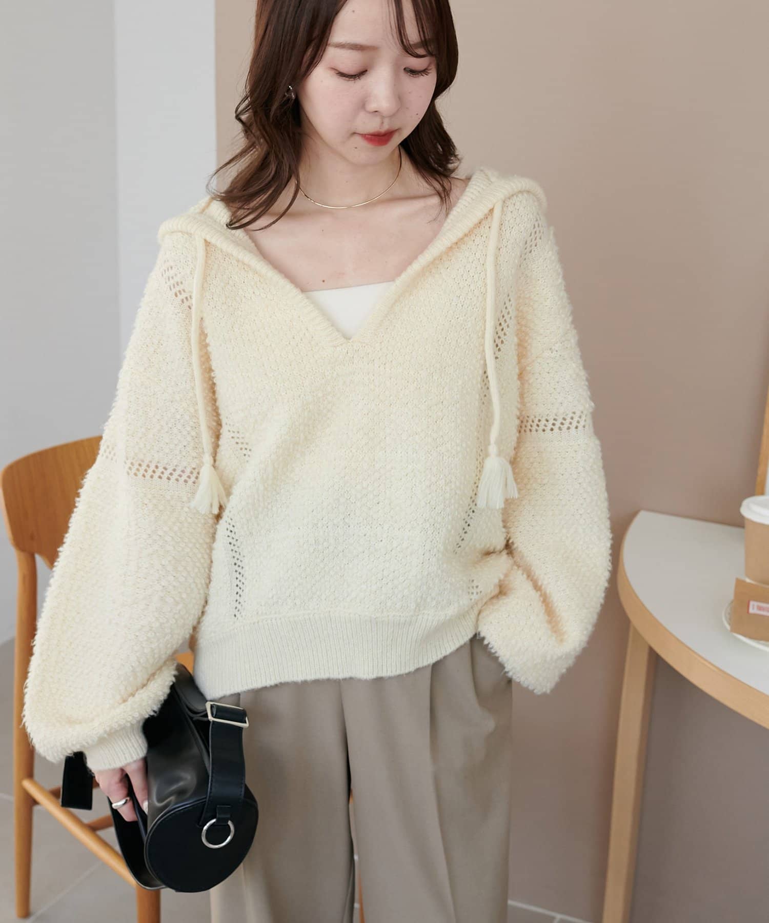 ループヤーンフードプルオーバー