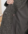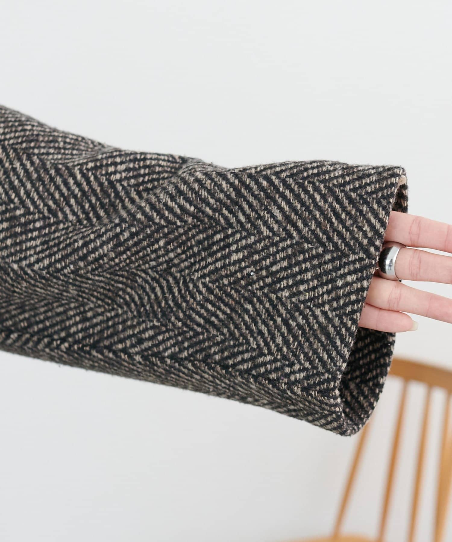 ヘリンボーン柄が魅力のアウターなので、インナーはシンプルなリブニットや無地のトップス合わせがおすすめ。