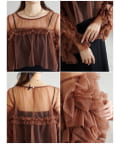 腕回りはボリューム感があるので、透け感がありながらも、さり気なく二の腕周りをカバーしてくれます〇
