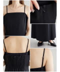 キャミワンピースはAラインシルエットになっていることで、軽やかな雰囲気をプラス。バスト部分がバックゴムになっているので、ストレスフリーな着心地を叶えてくれます!