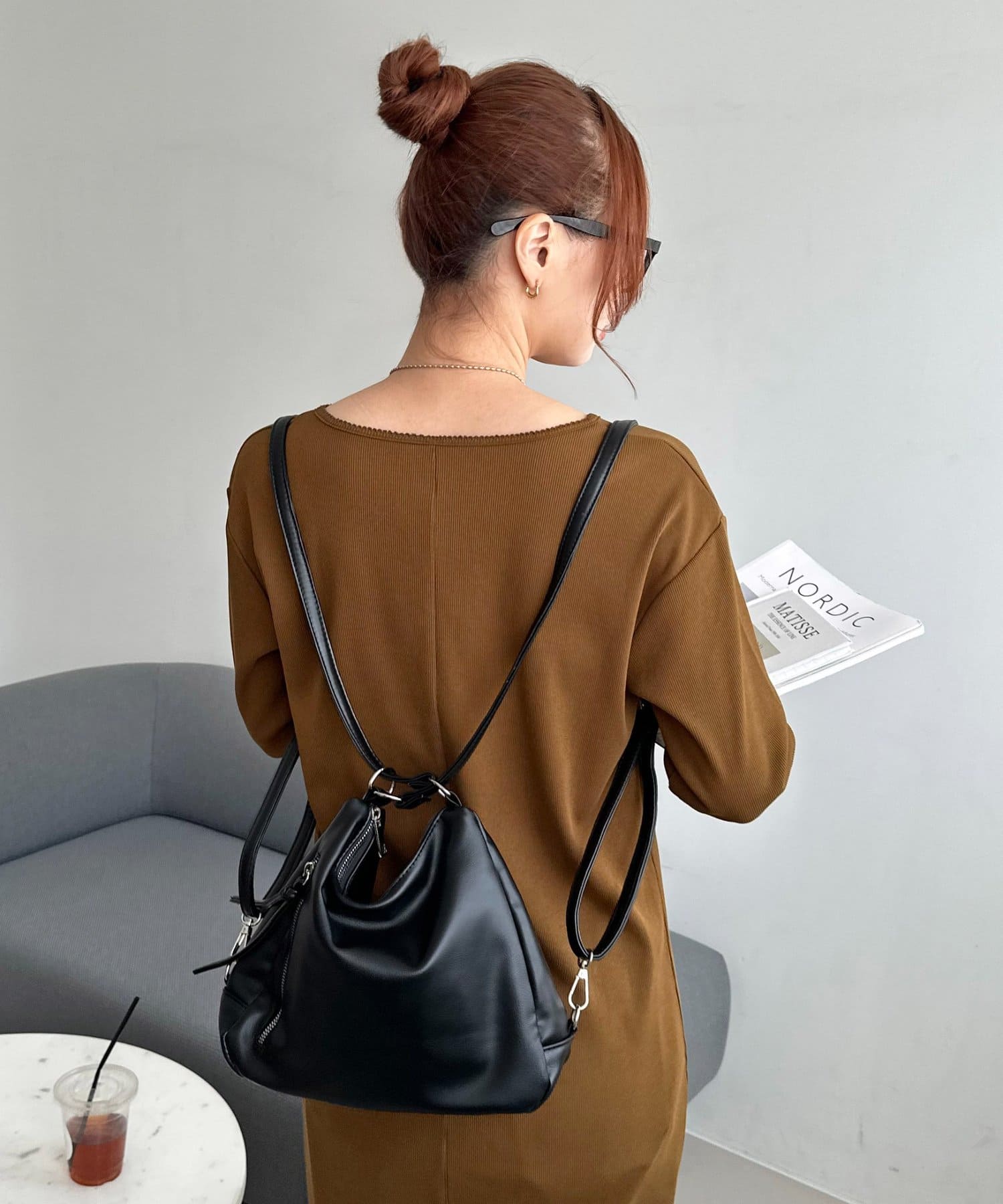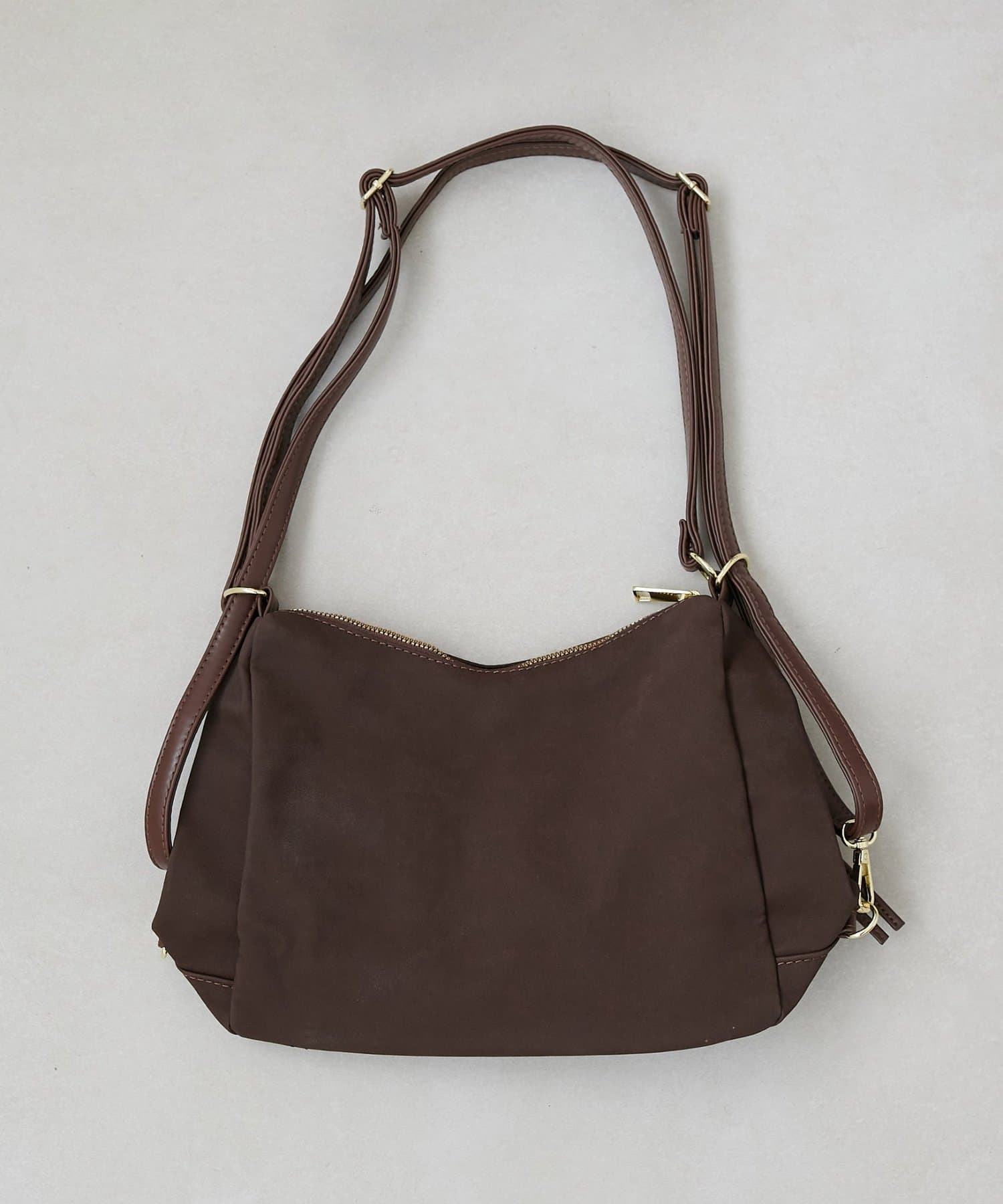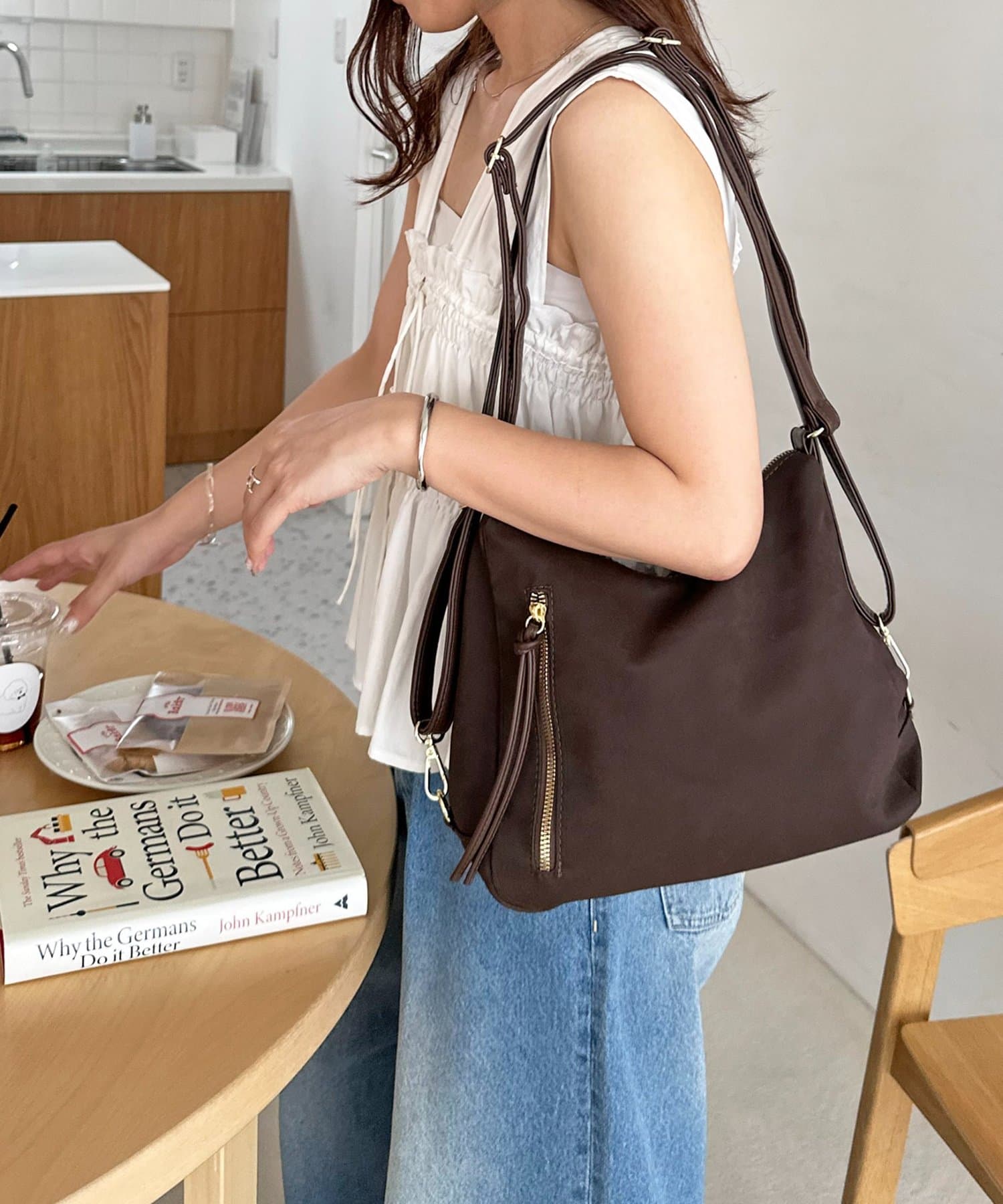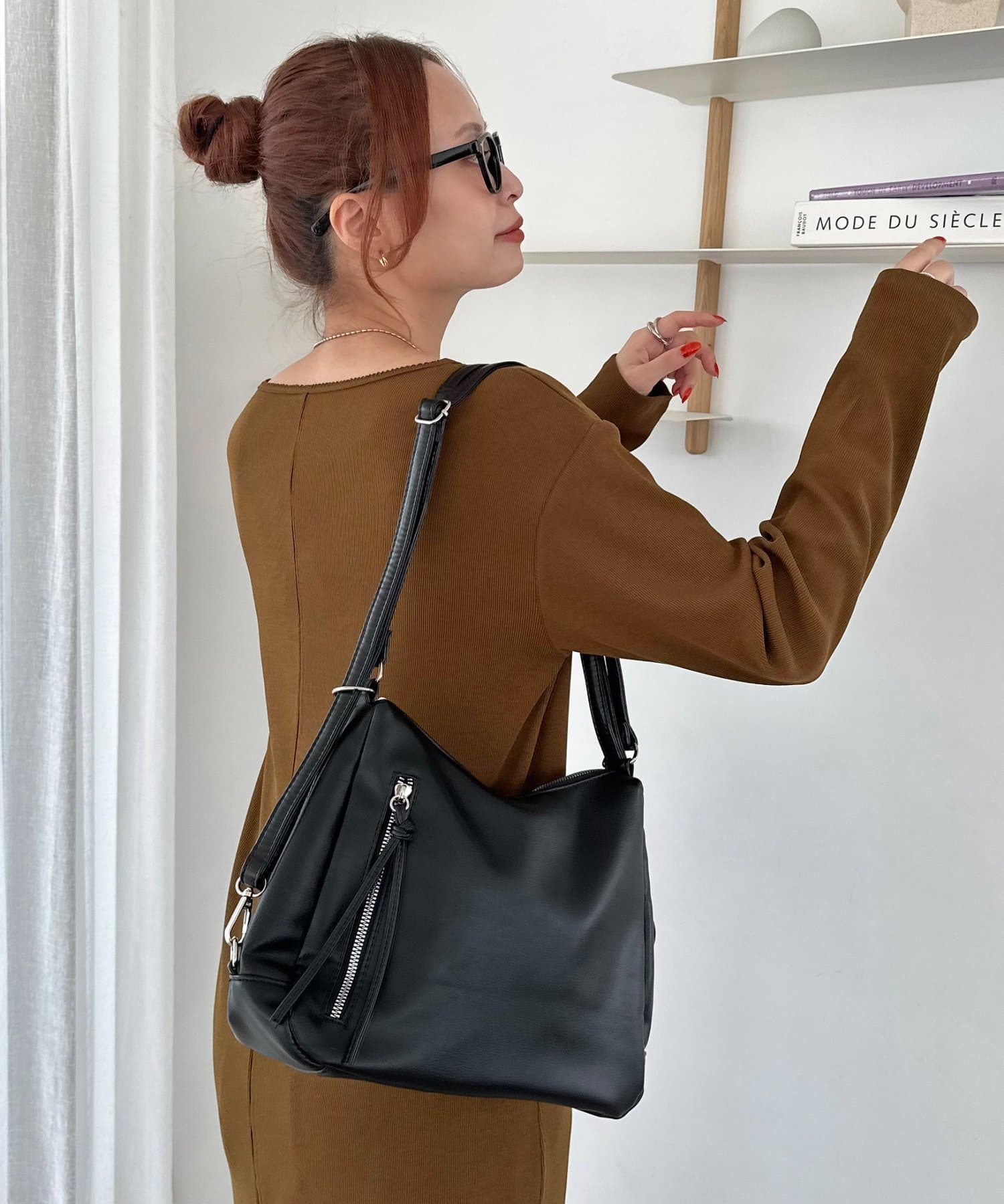 ショルダーバッグとしてもリュックとしても使える便利な2WAYデザインで、デイリー使いにぴったり♪たっぷり入るサイズ感に加えて、サイドジップがさりげないアクセントに◎軽くて持ちやすく、オンオフ問わず活躍してくれるアイテムです。カジュアルにもフェミニンにも馴染む落ち着いたカラー展開も嬉しいポイント!
