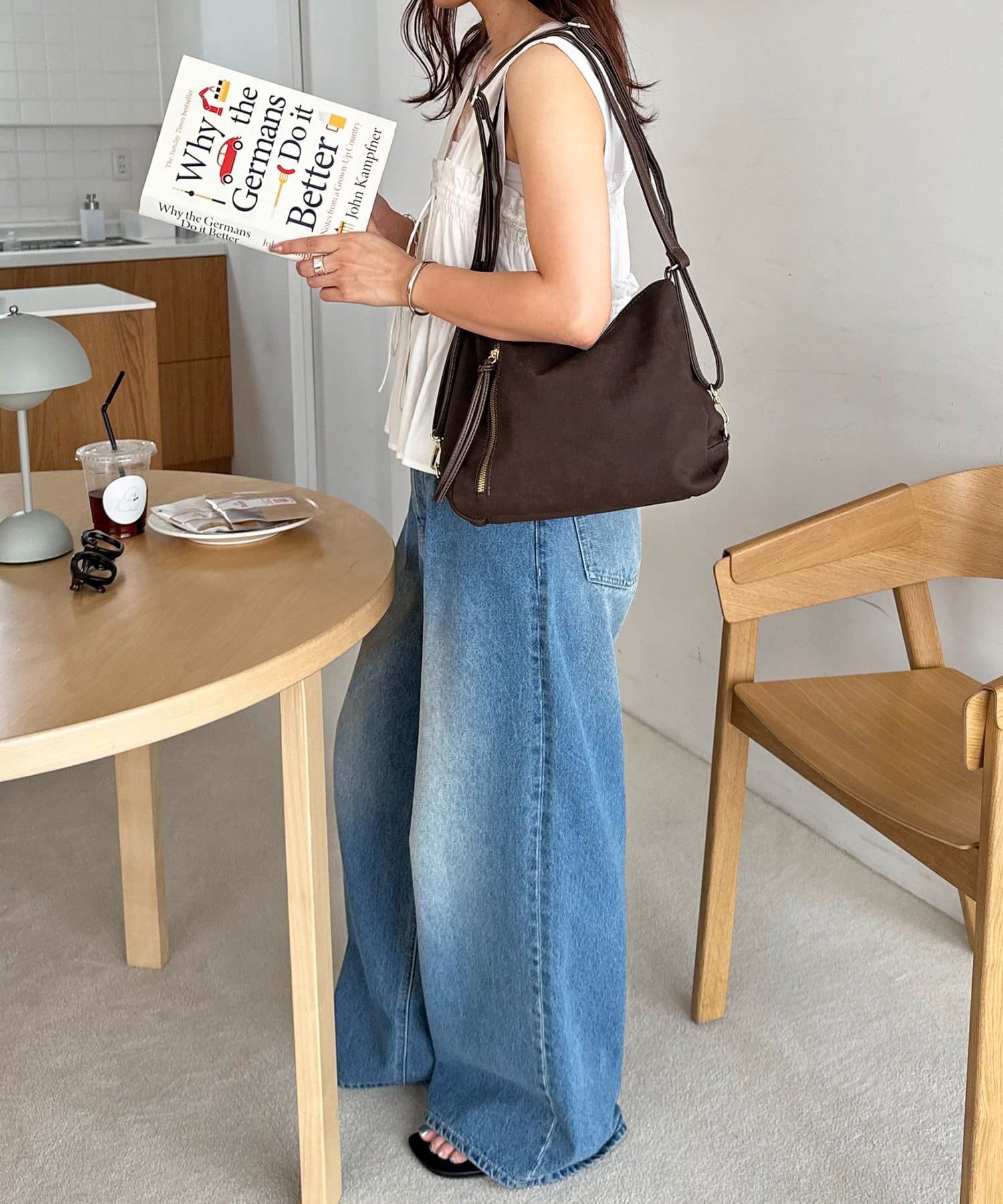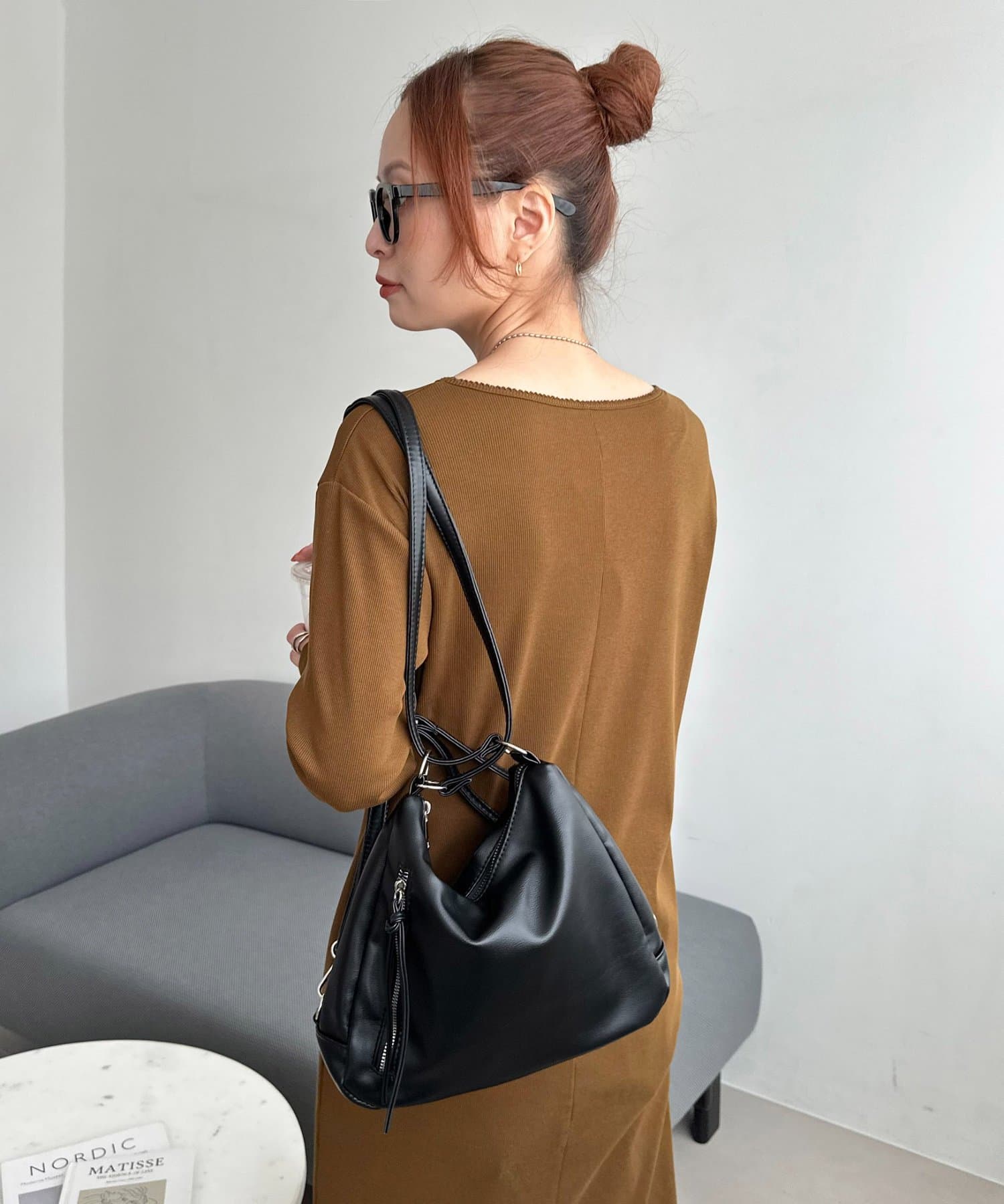 柔らかなフォルムが魅力の2WAYホーボーバッグ。