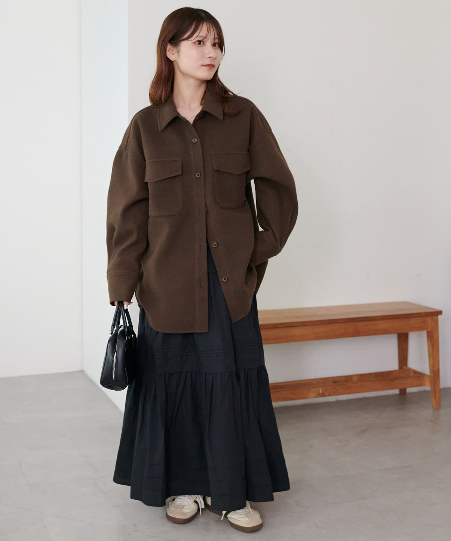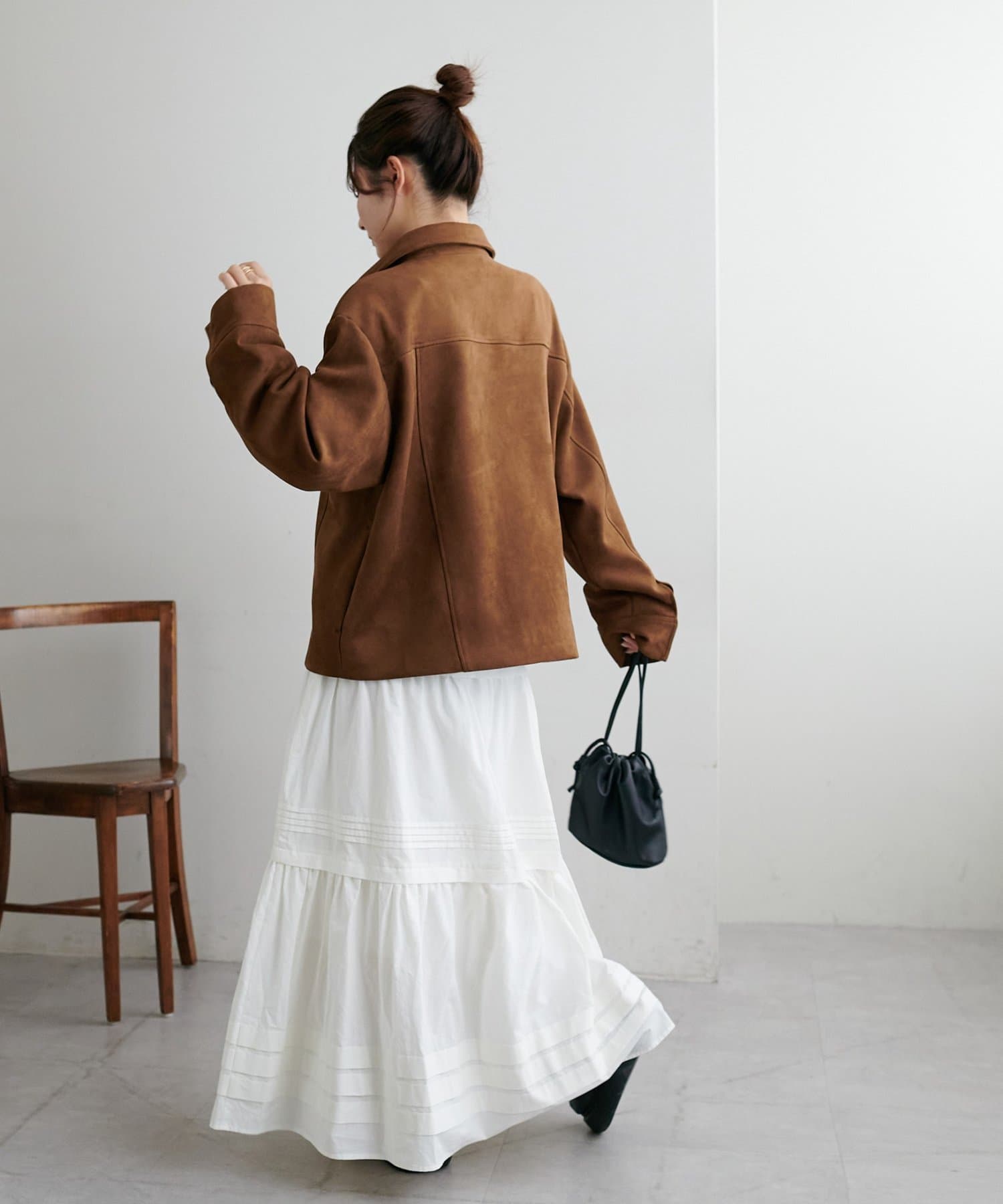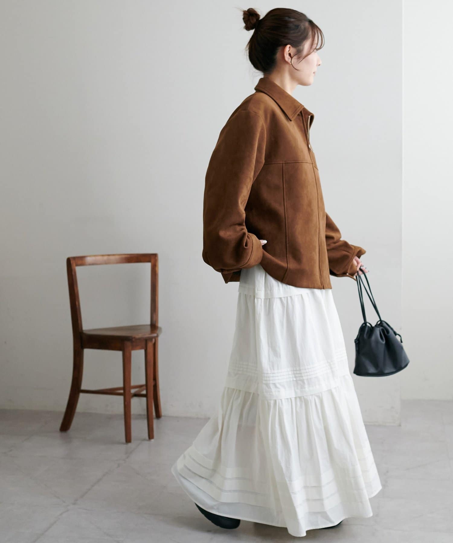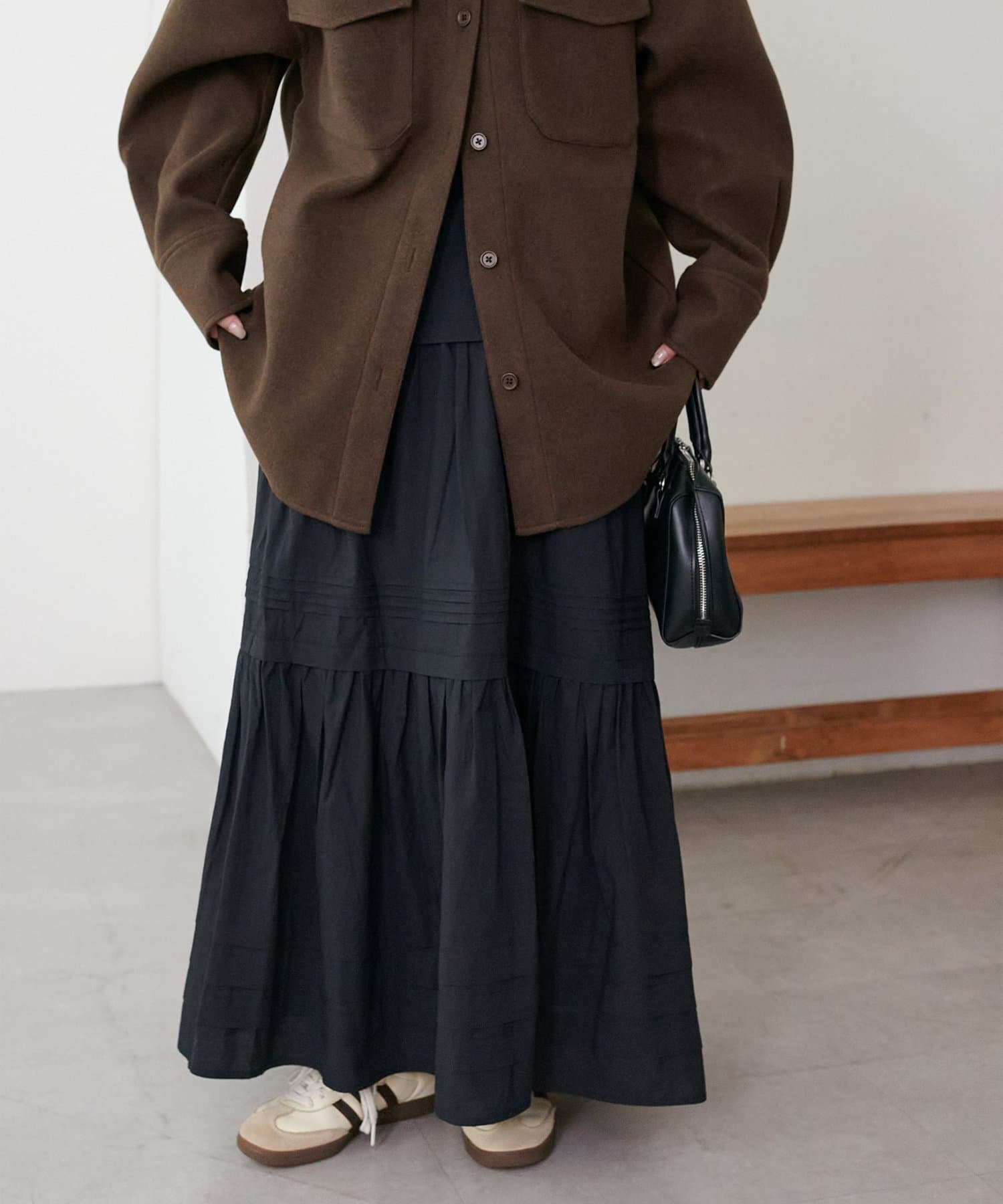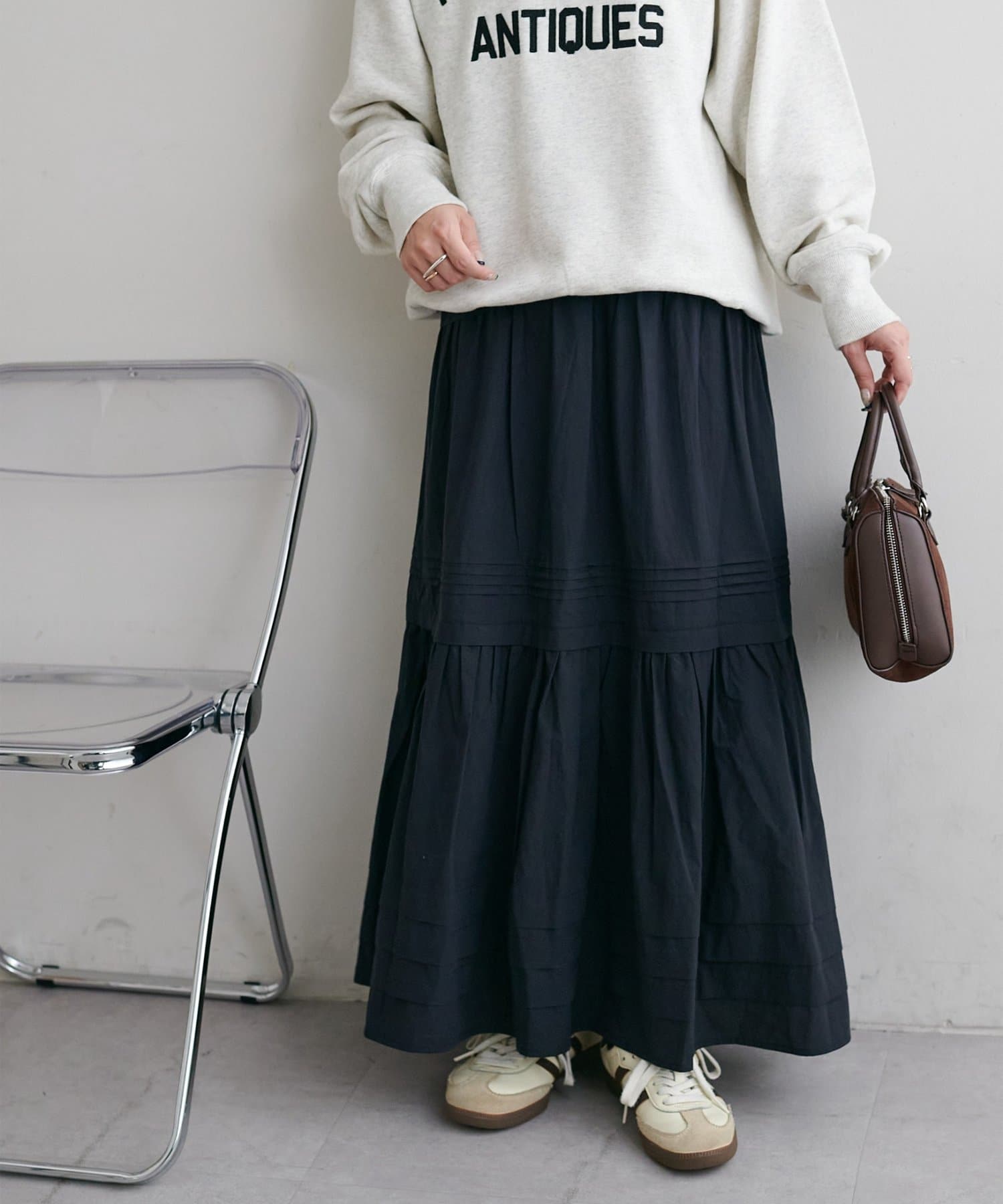 3段に分かれたデザインは、綺麗なAラインを作り、歩くたびに軽やかな印象をプラスします。