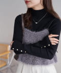 素材がふわふわしているので、シンプルなボトムと合わせても華やかに。