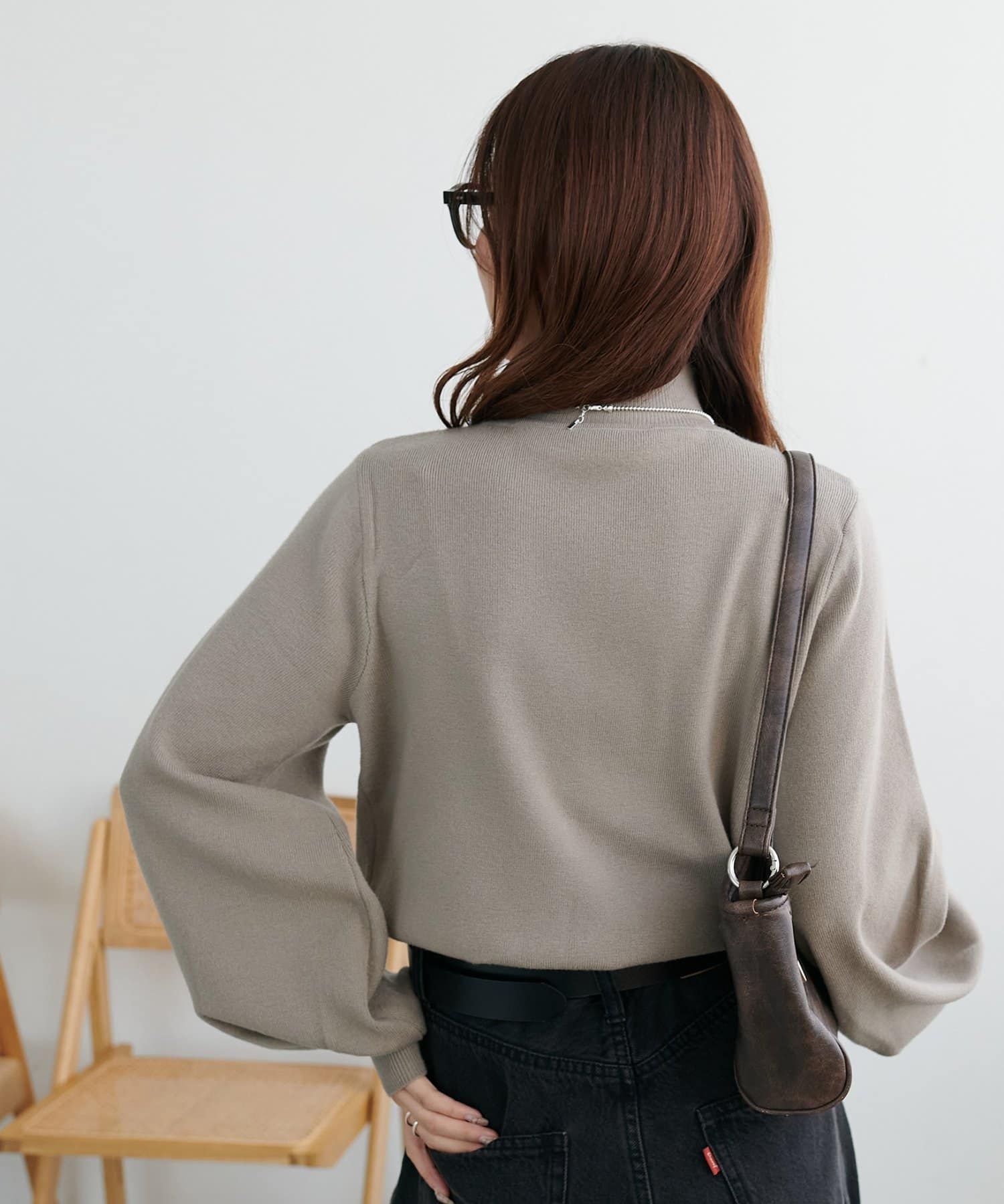 ・首元を包み込むハイネックデザインで、暖かさとすっきり見えを両立