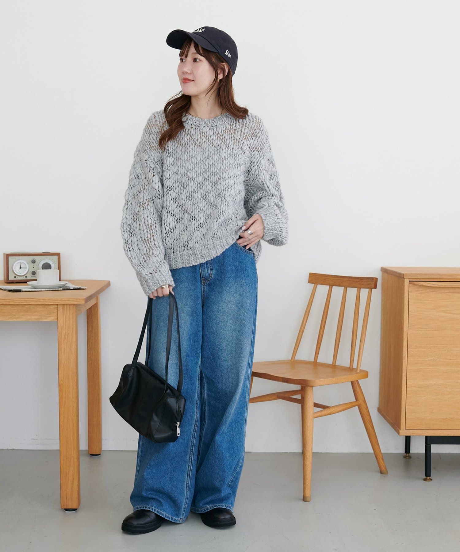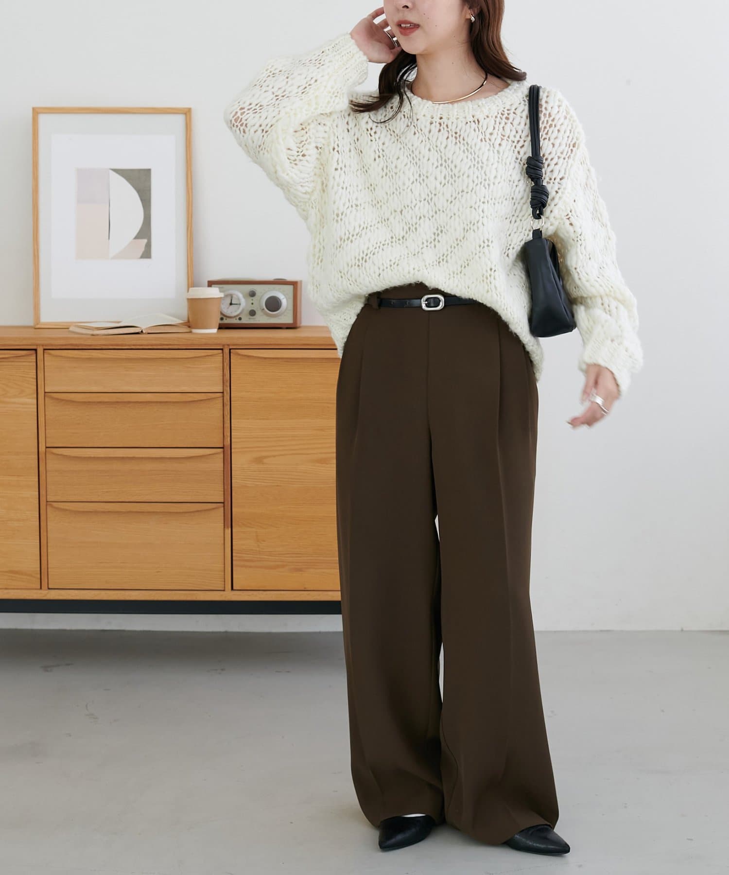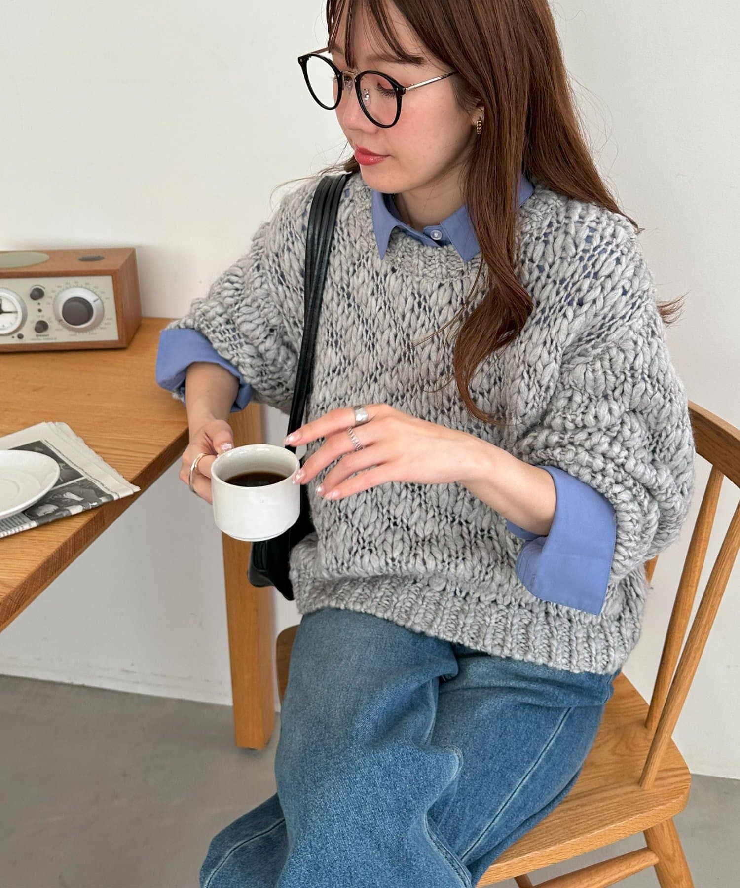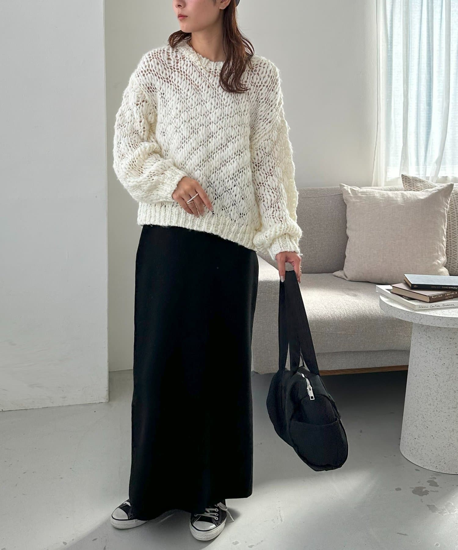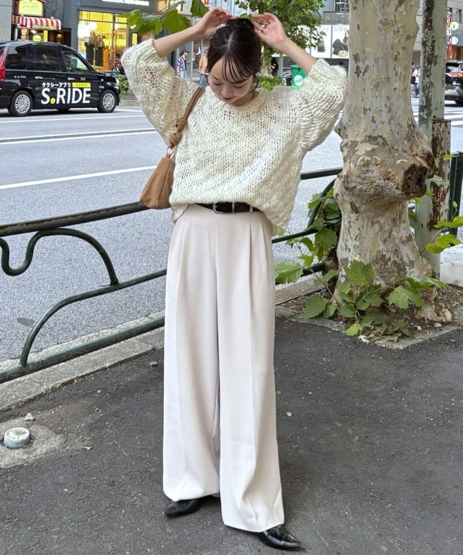 ざっくりとした編地がアクセントになっているので、シンプルなスタイリングでも映えるのが嬉しいポイントです◎
