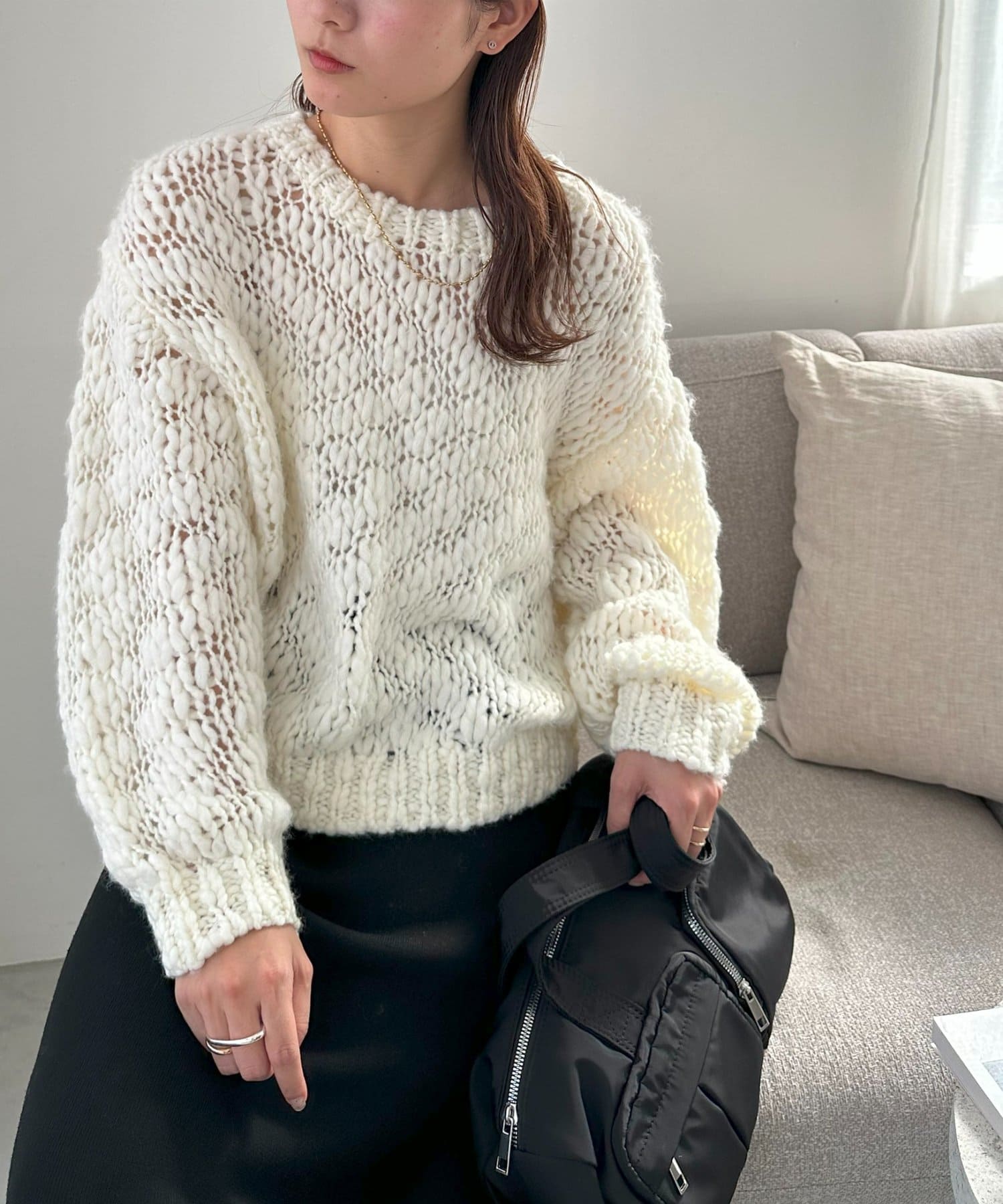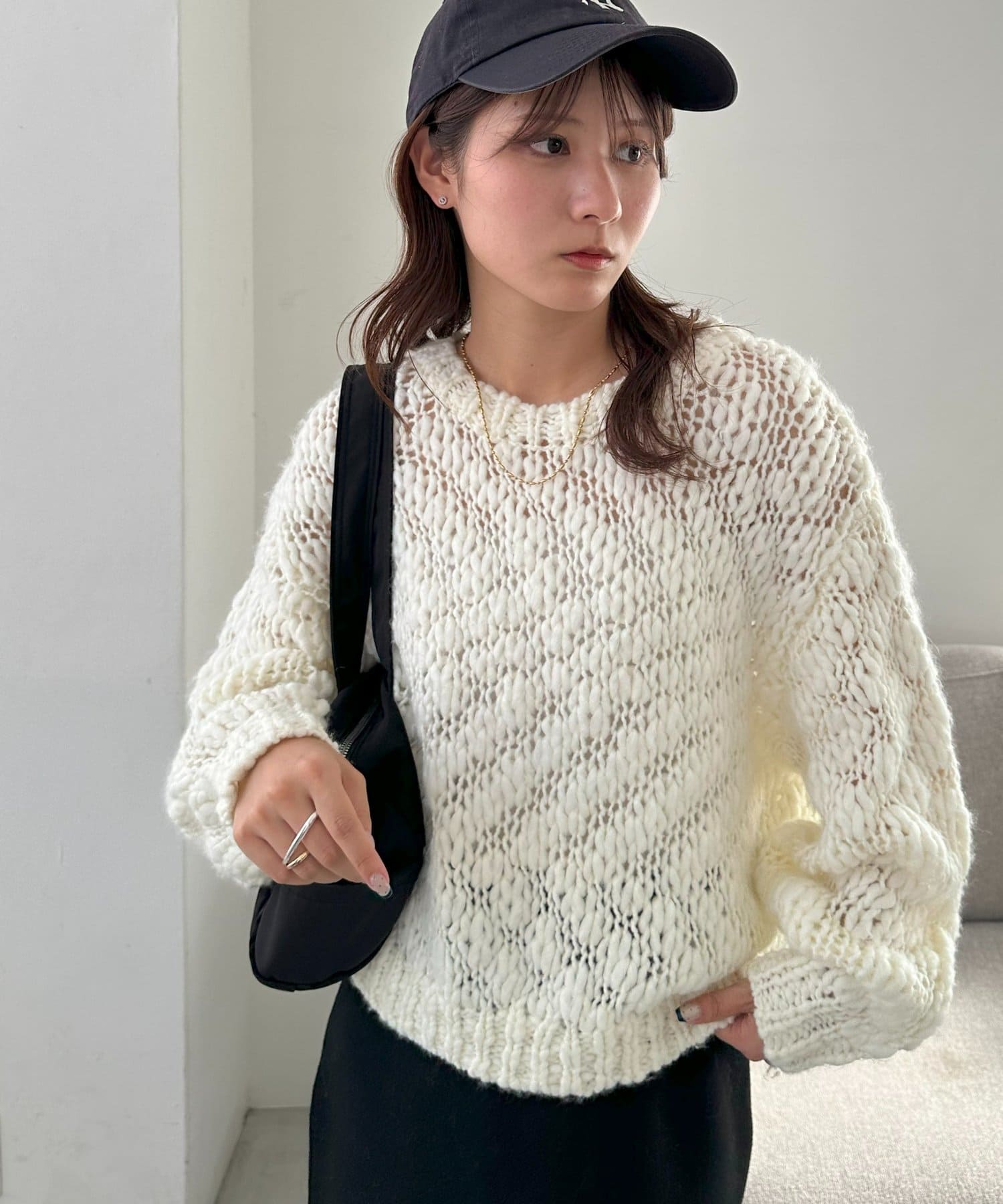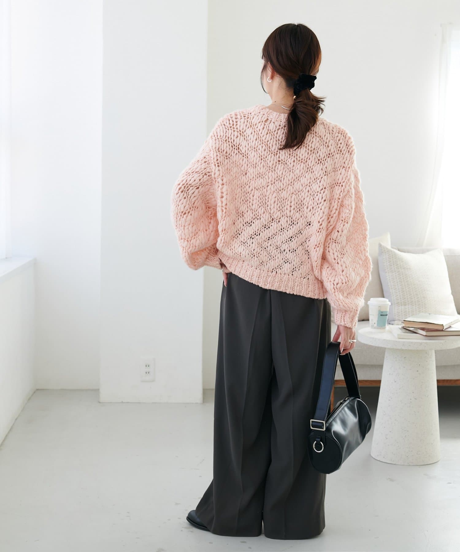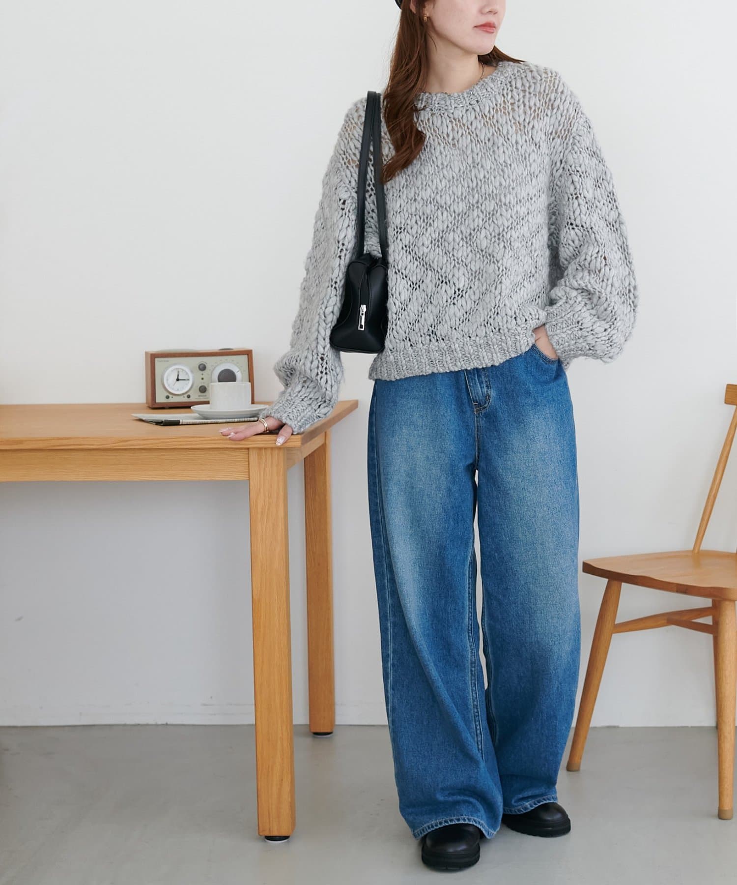 ざっくりとした編地がアクセントになっているので、シンプルなスタイリングでも映えるのが嬉しいポイントです◎