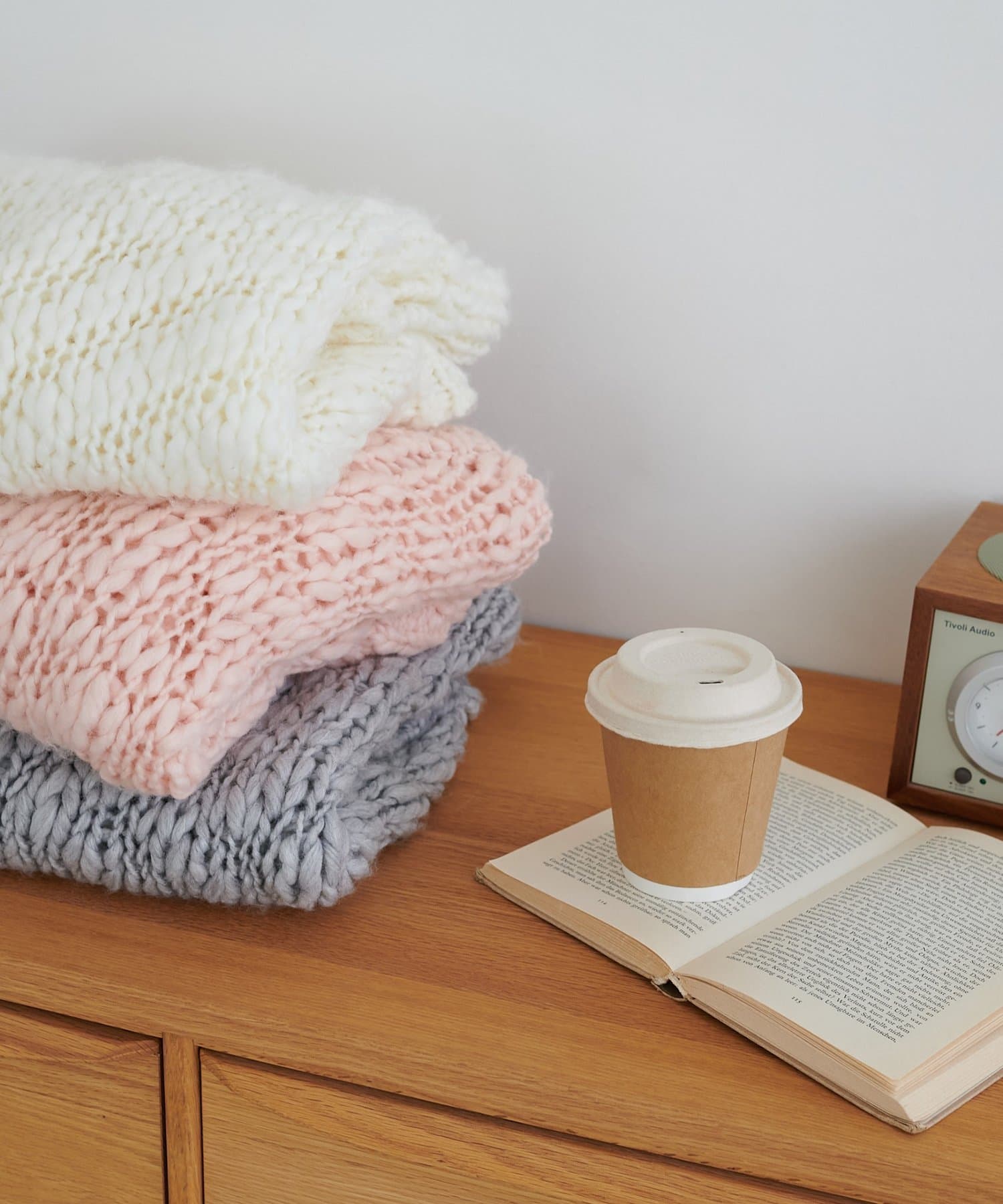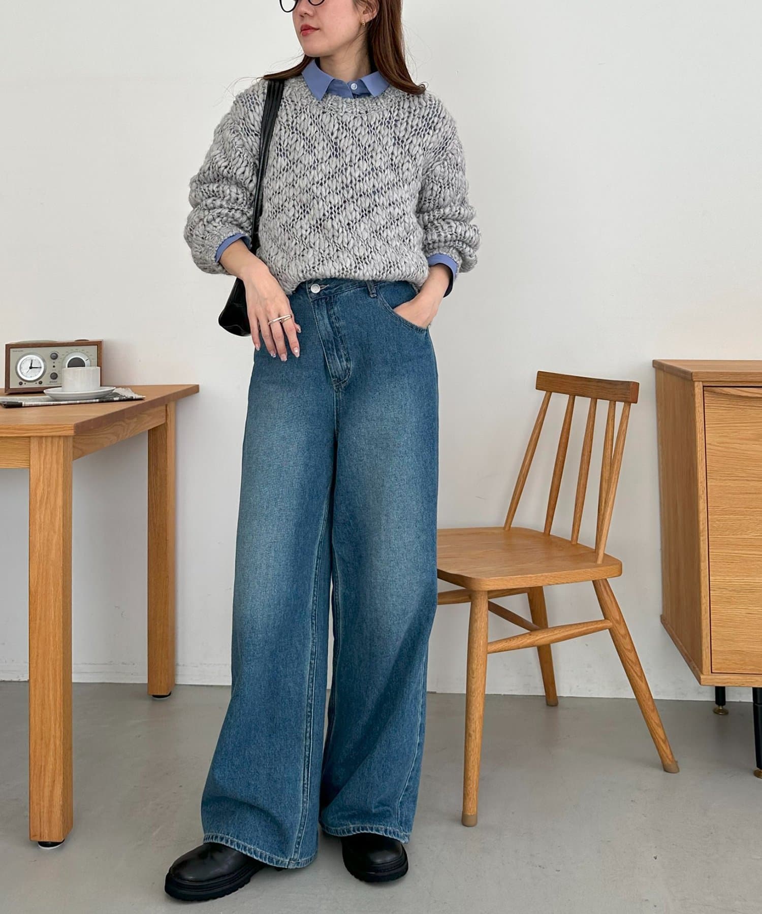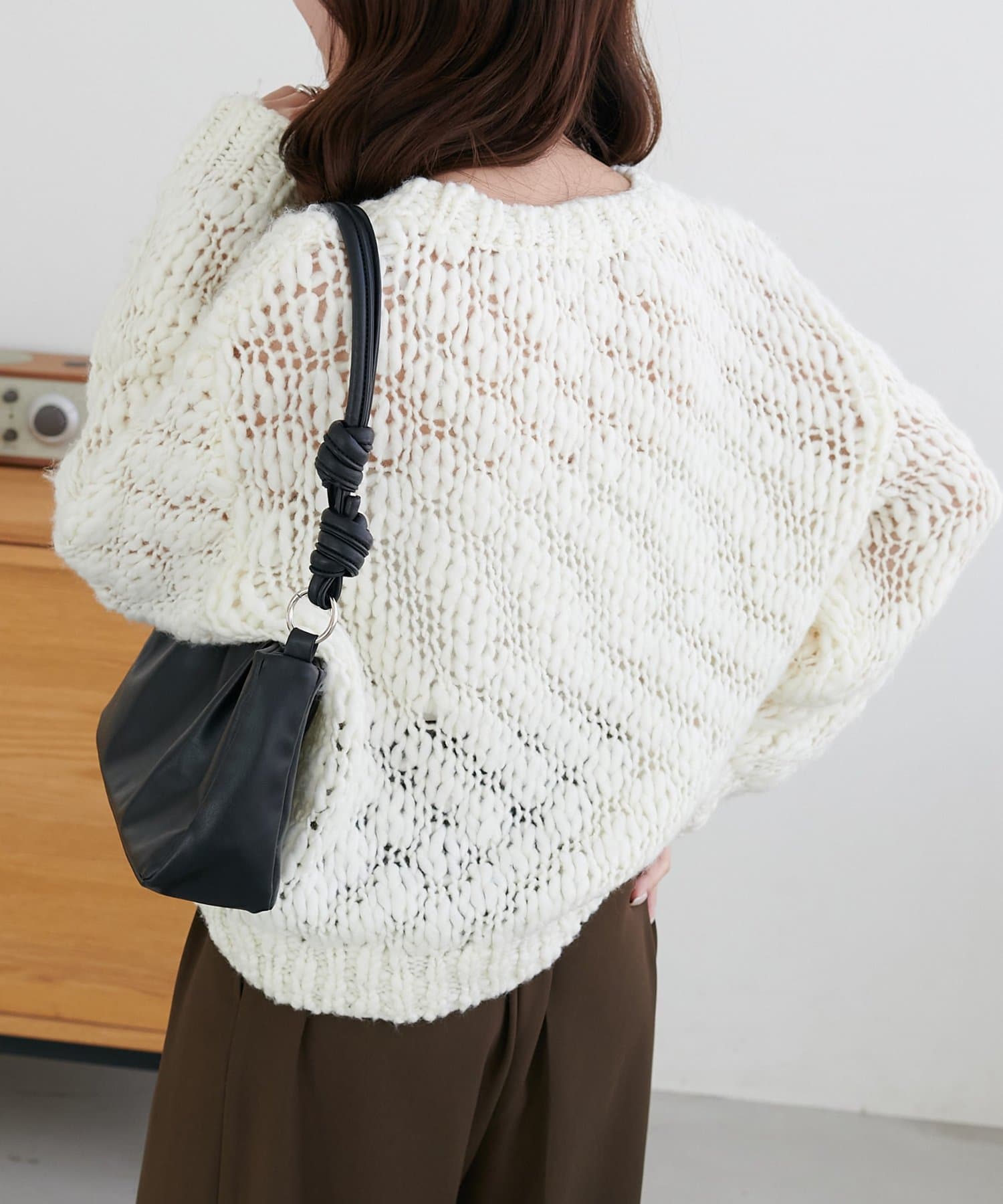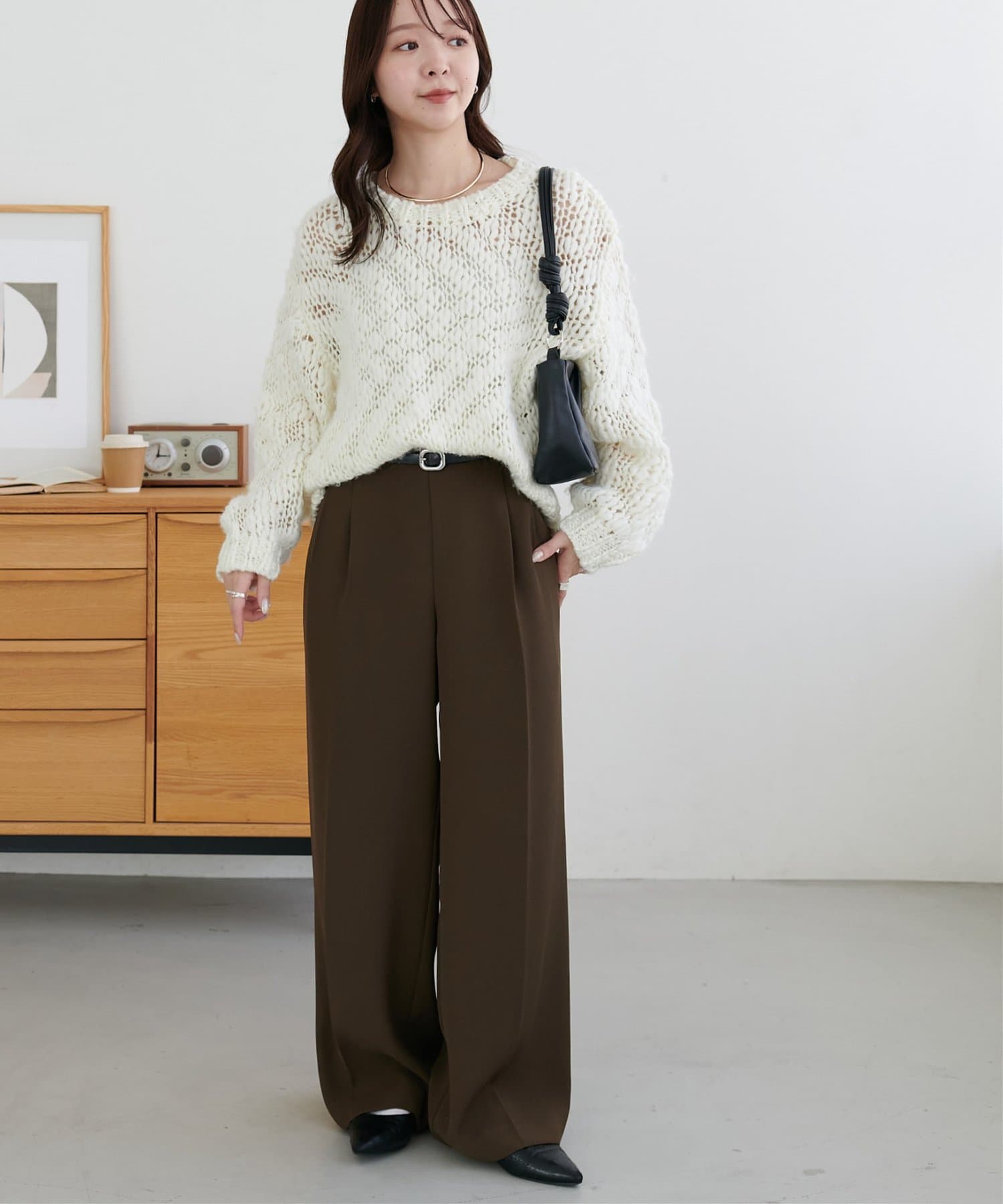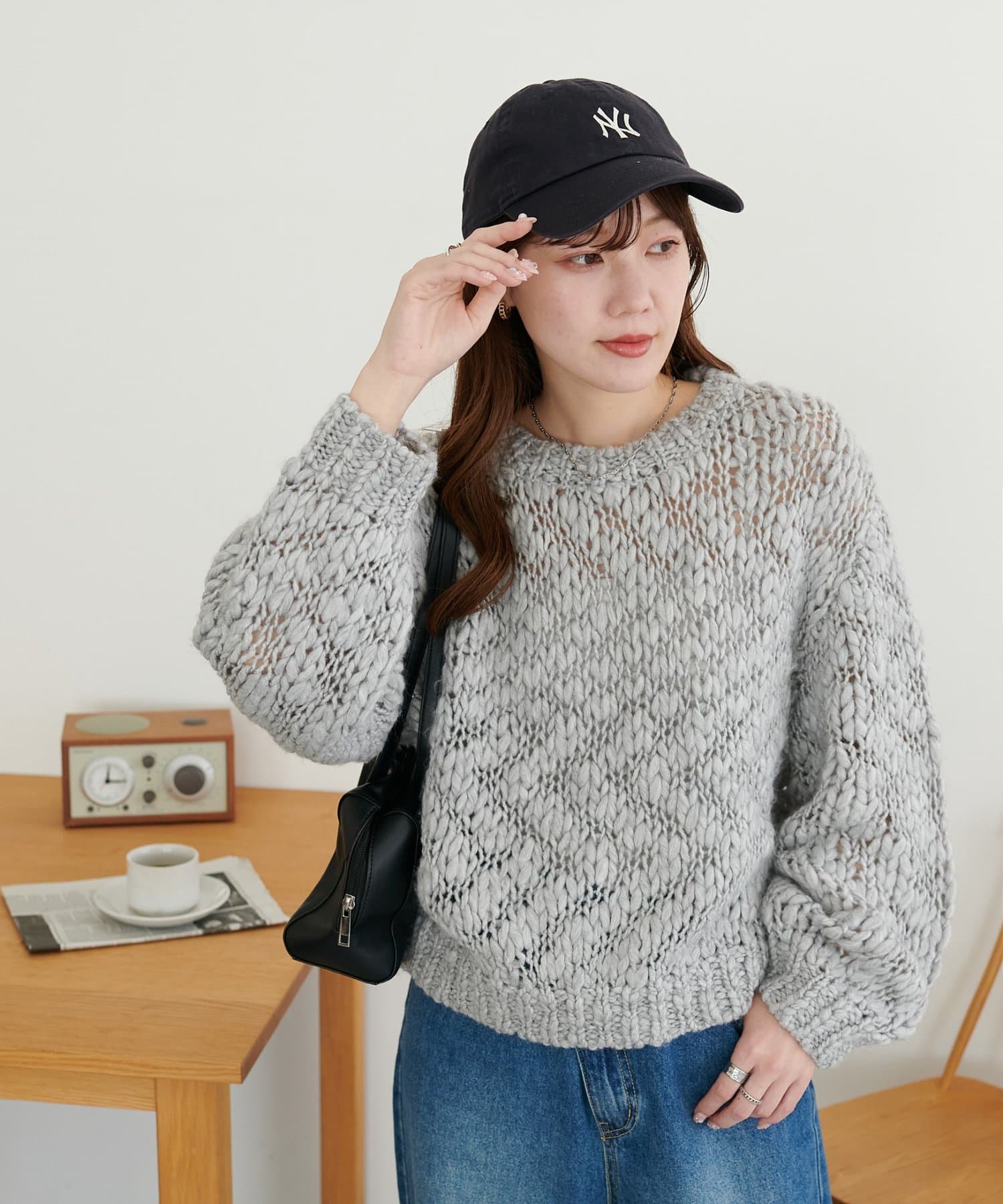 ざっくりとした編地がアクセントになっているので、シンプルなスタイリングでも映えるのが嬉しいポイントです◎