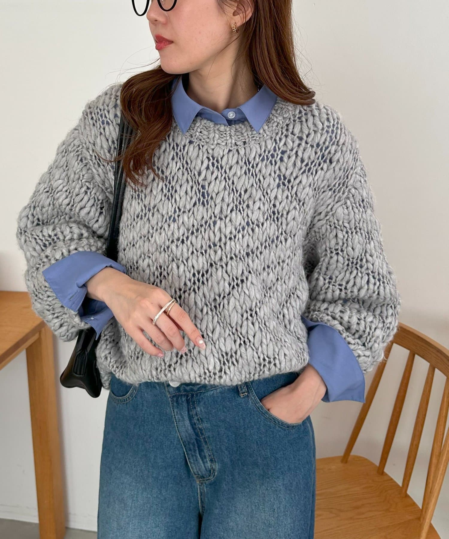 TOP > DISCOAT > レディース > トップス > ニット/セーター > 手編み風スラブニットプルオーバー
