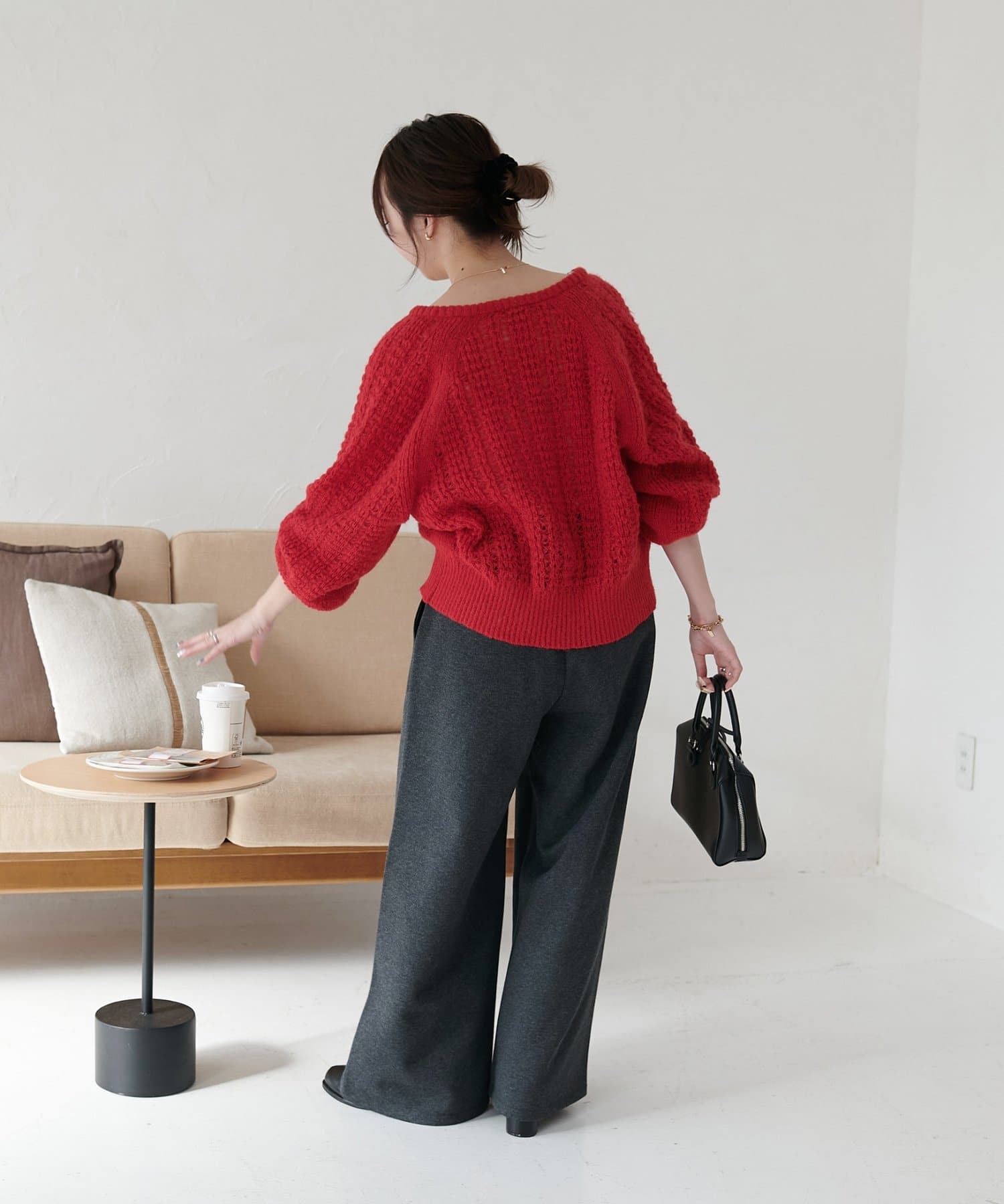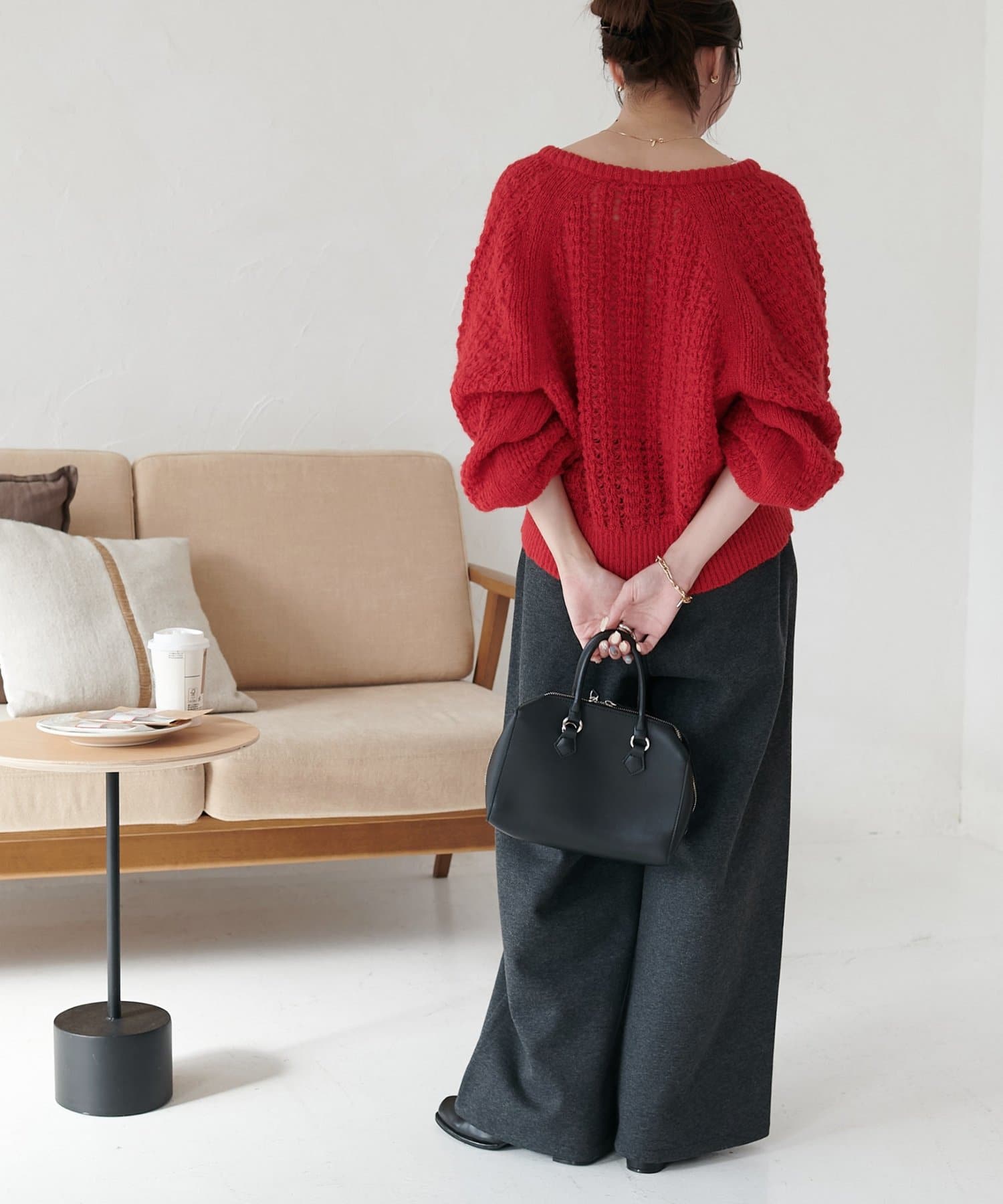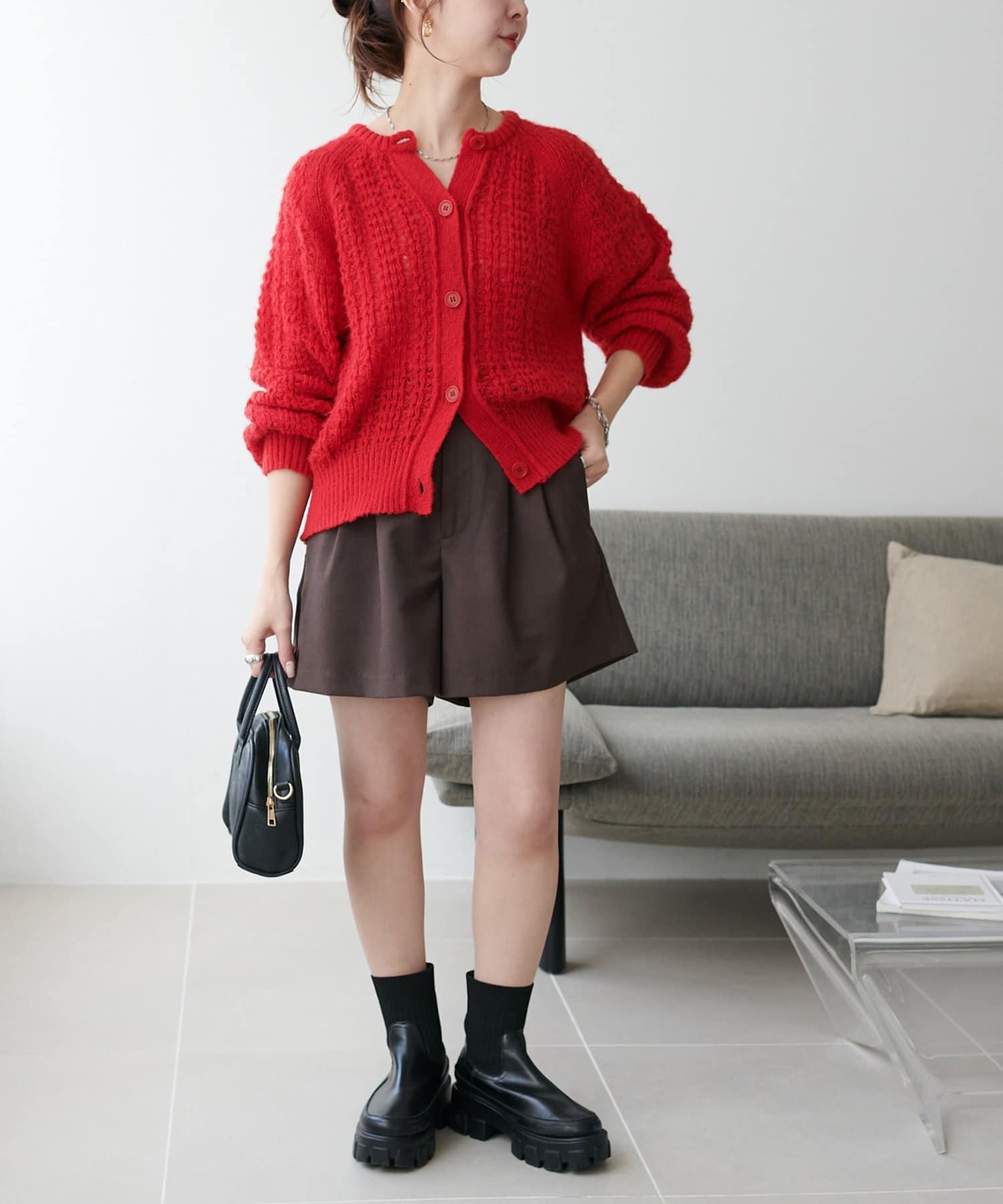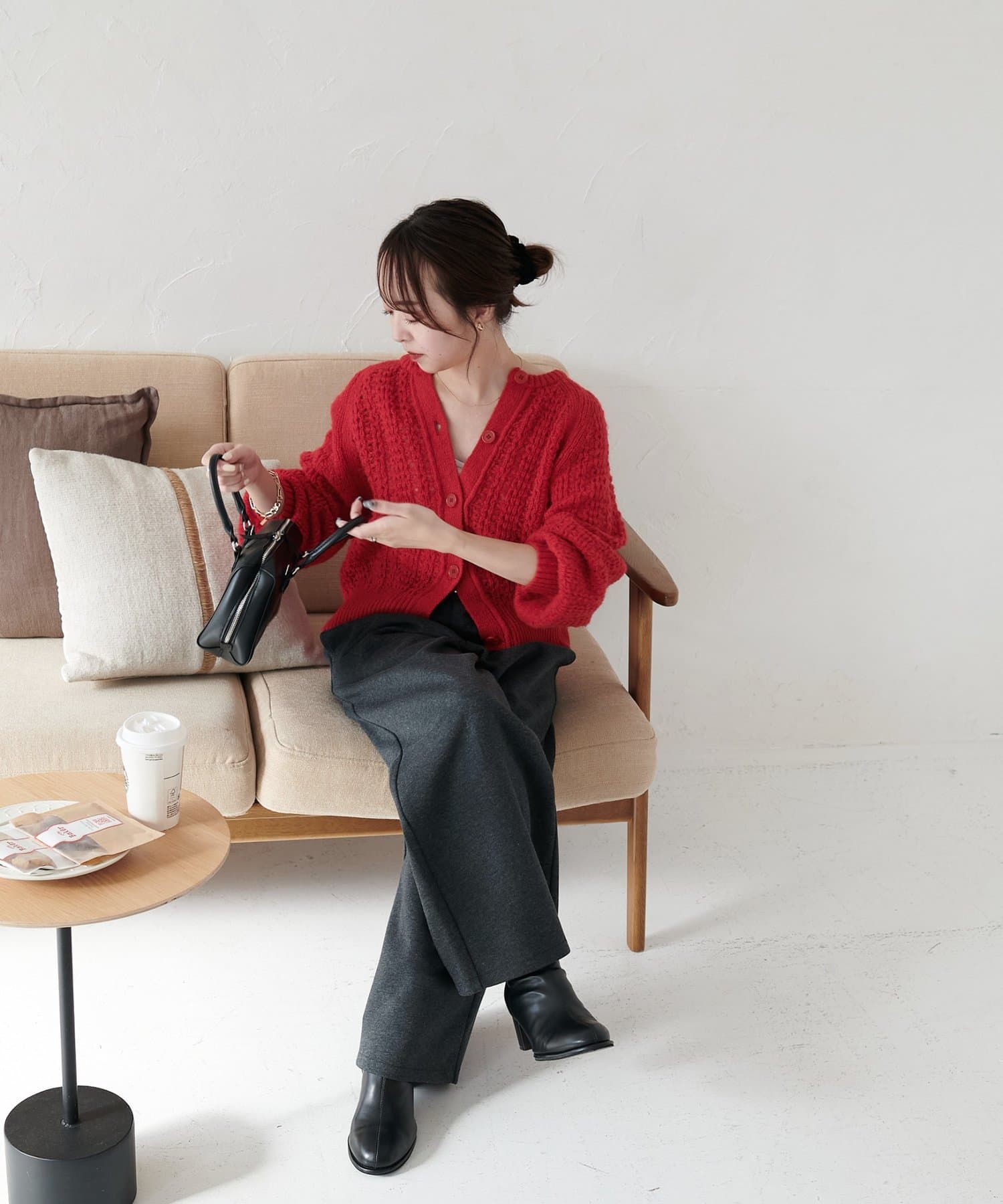 やっぱ秋冬は赤が着たくなります。今の時期はアウター代わりに使えますし、冬はこの上からアウター着てみたい!