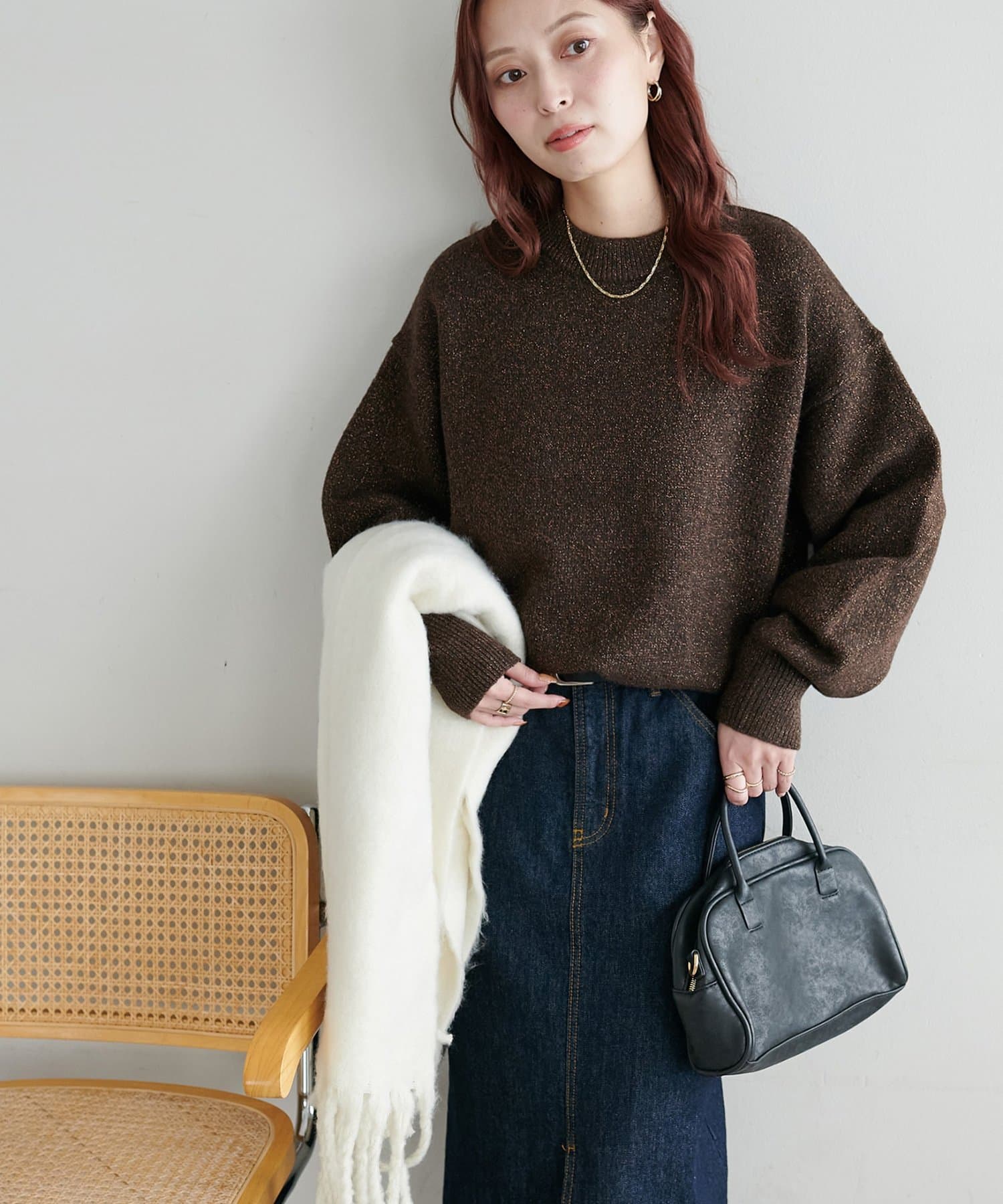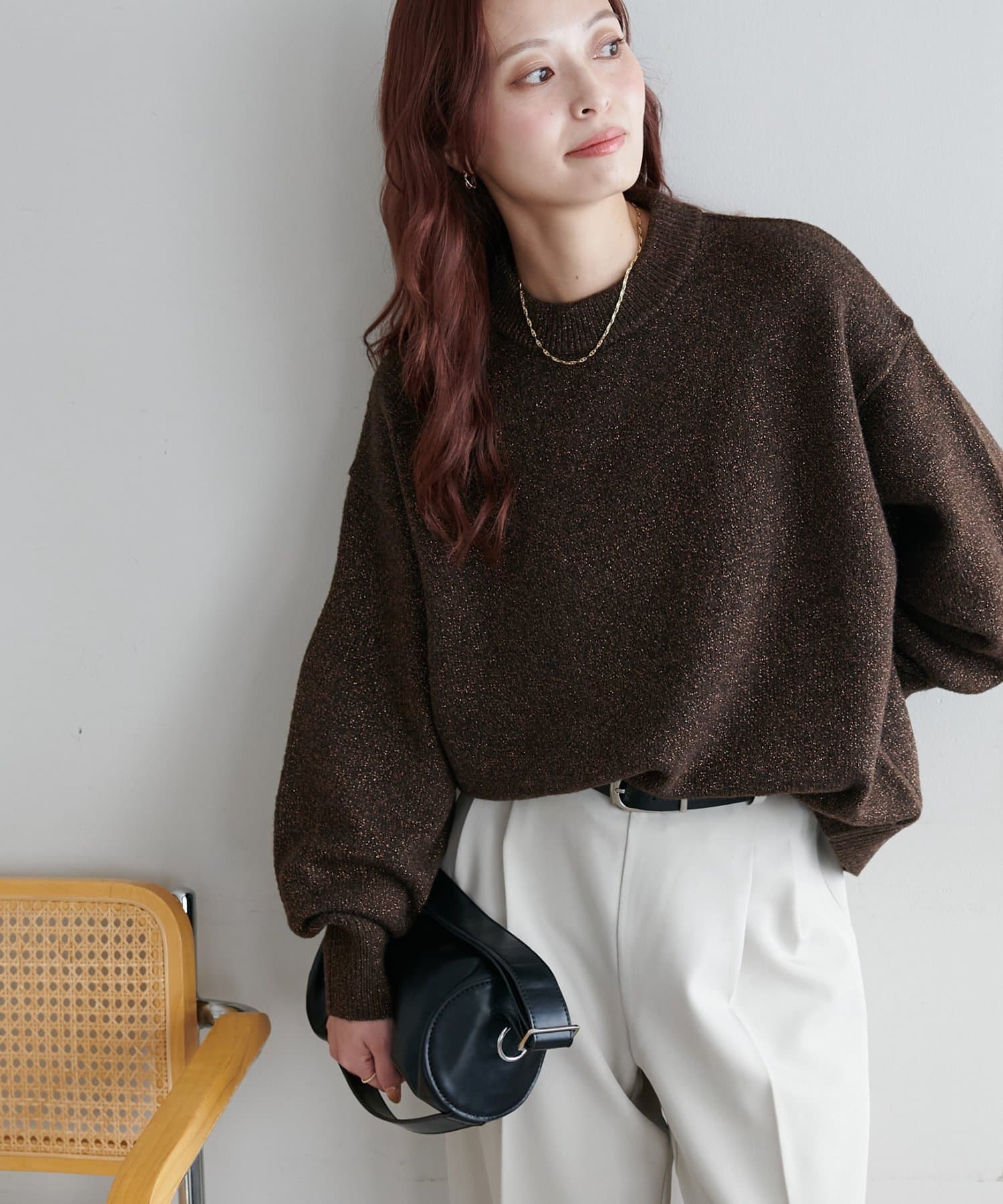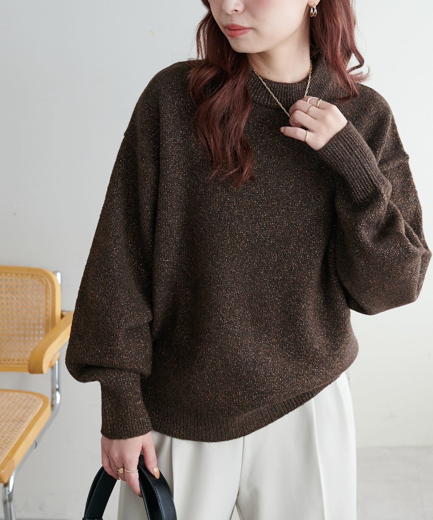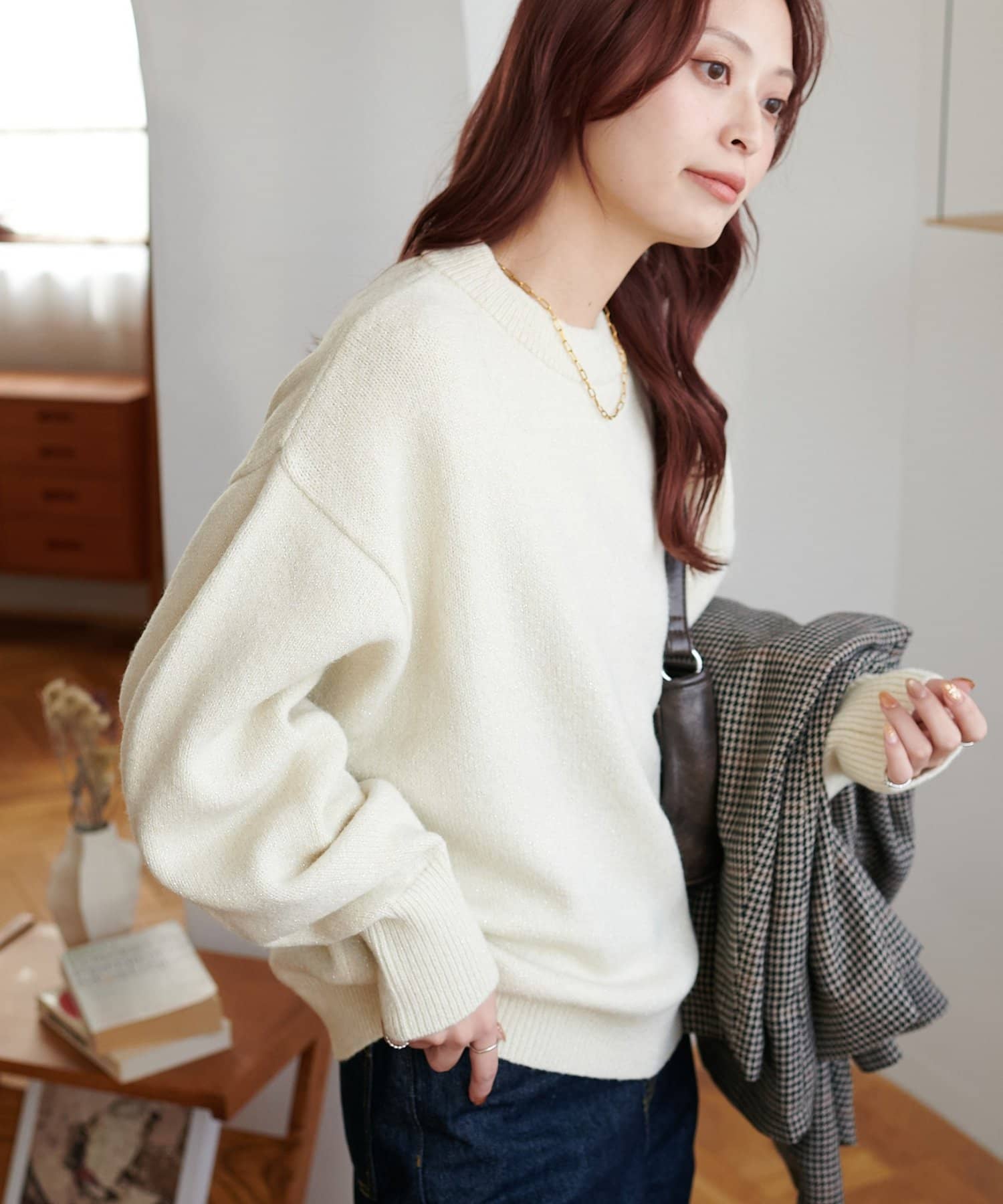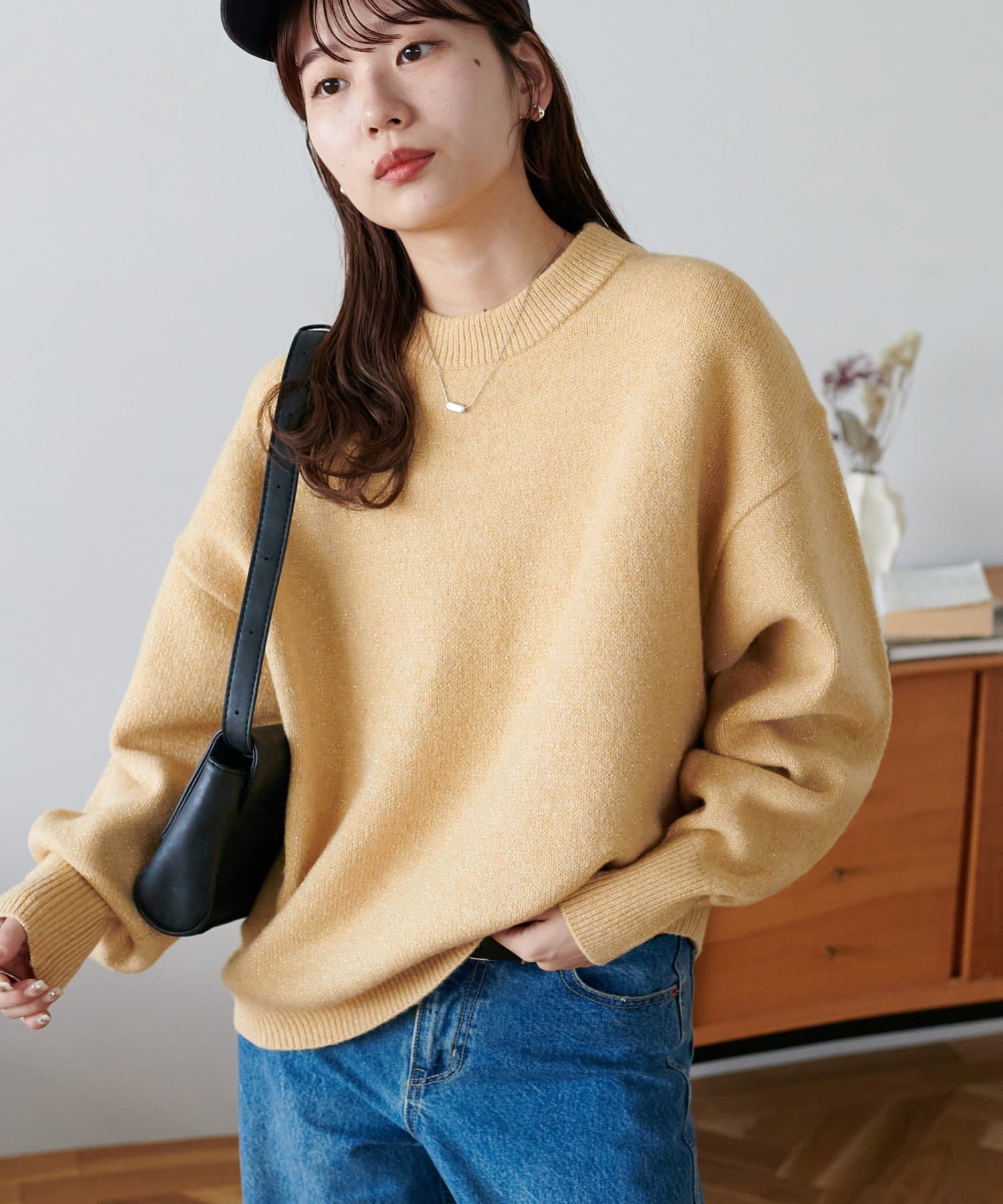 【柔らかニット/着映えアイテム/7色展開】モヘヤタッチラメニット《WEB限定》