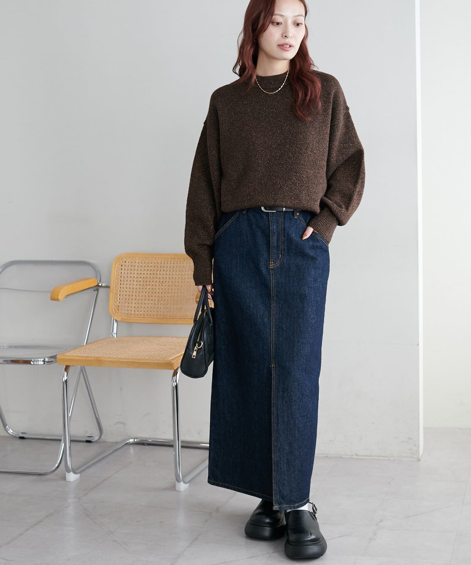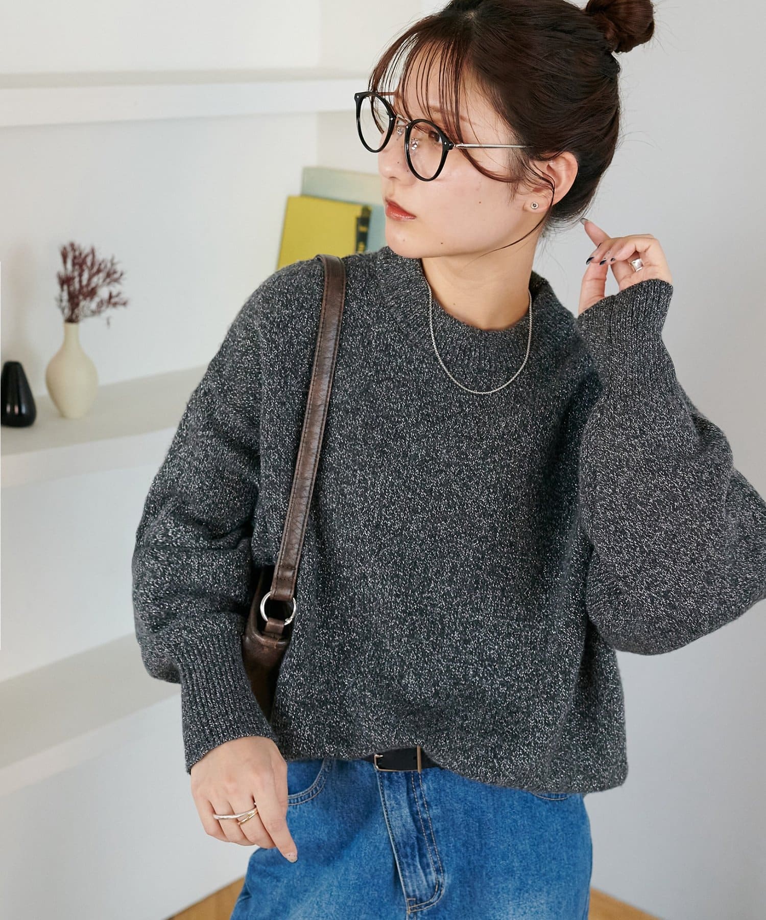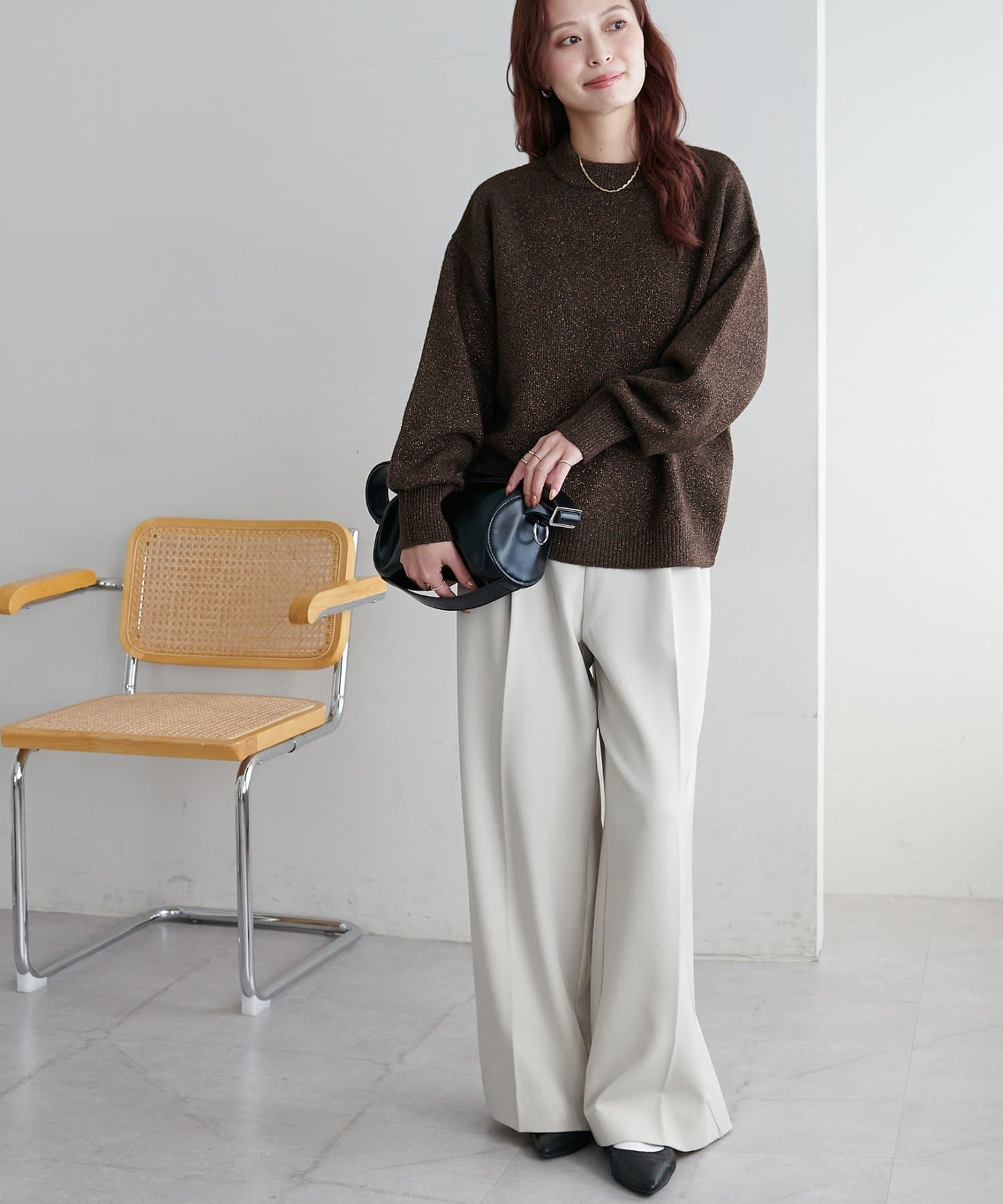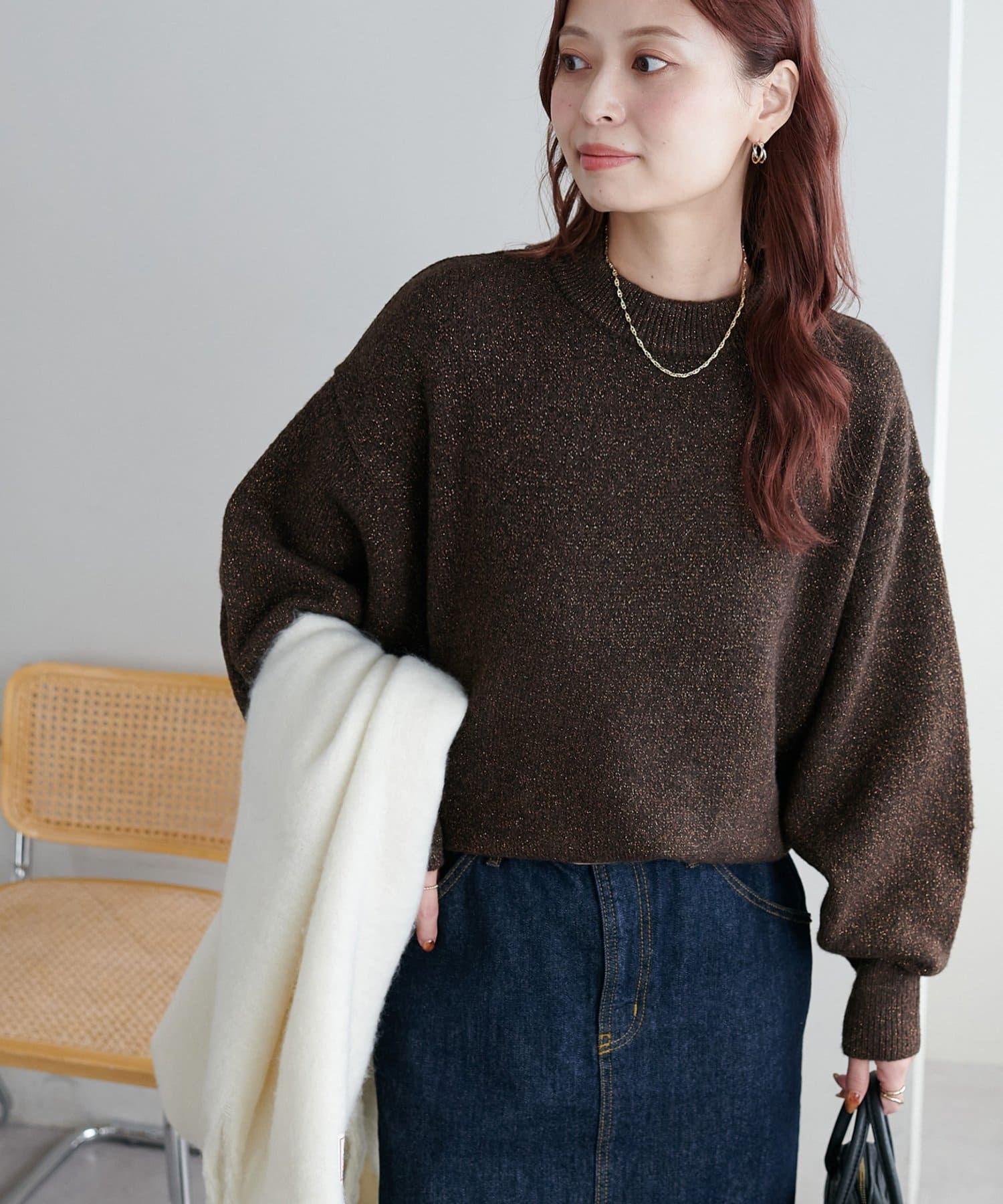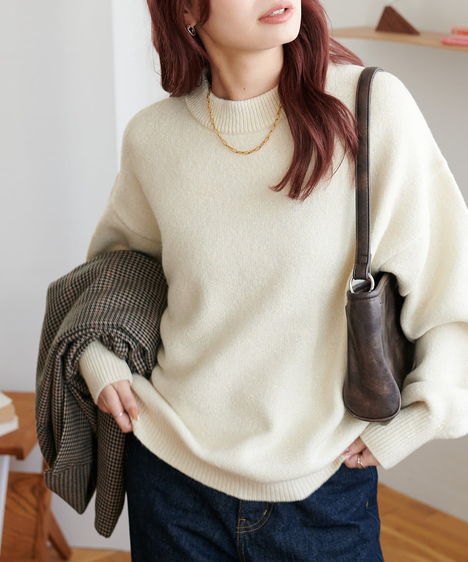 【柔らかニット/着映えアイテム/7色展開】モヘヤタッチラメニット《WEB限定》